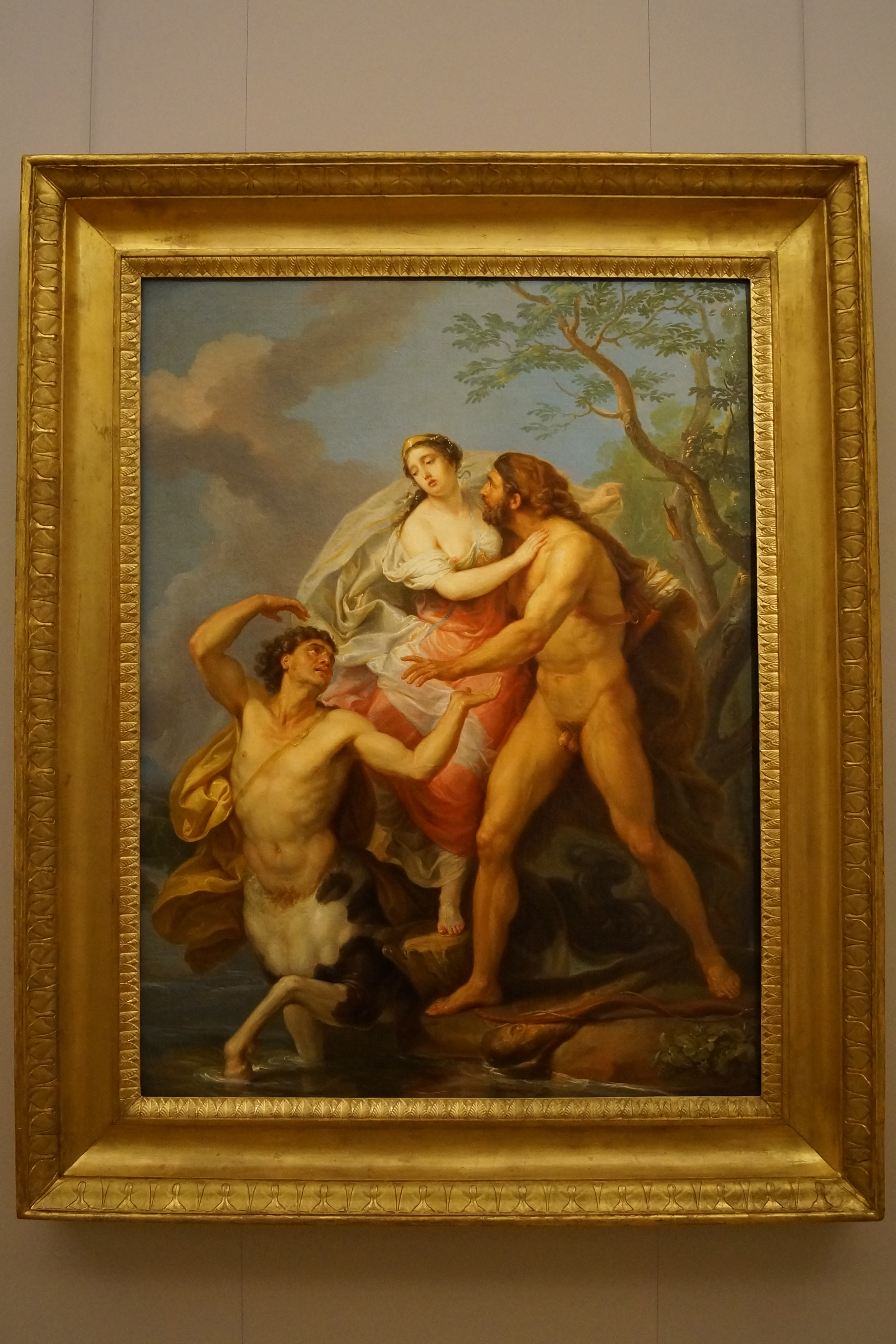 Картина была заказана французскому художнику Пешё коллекционером Жаком-Лором Ле Тоннельером де Бретейлем в 1762 году. На ней изображен Геракл, вверяющий свою жену Дейаниру кентавру Нессу на берегах реки Эвенос. Работа экспонировалась дополнение к картине "Полифем и Галатея" Помпео Батони, которая сейчас находится в Стокгольмском Национальном музее. Холст был приобретён для Галереи Сабауда в 1986 году.