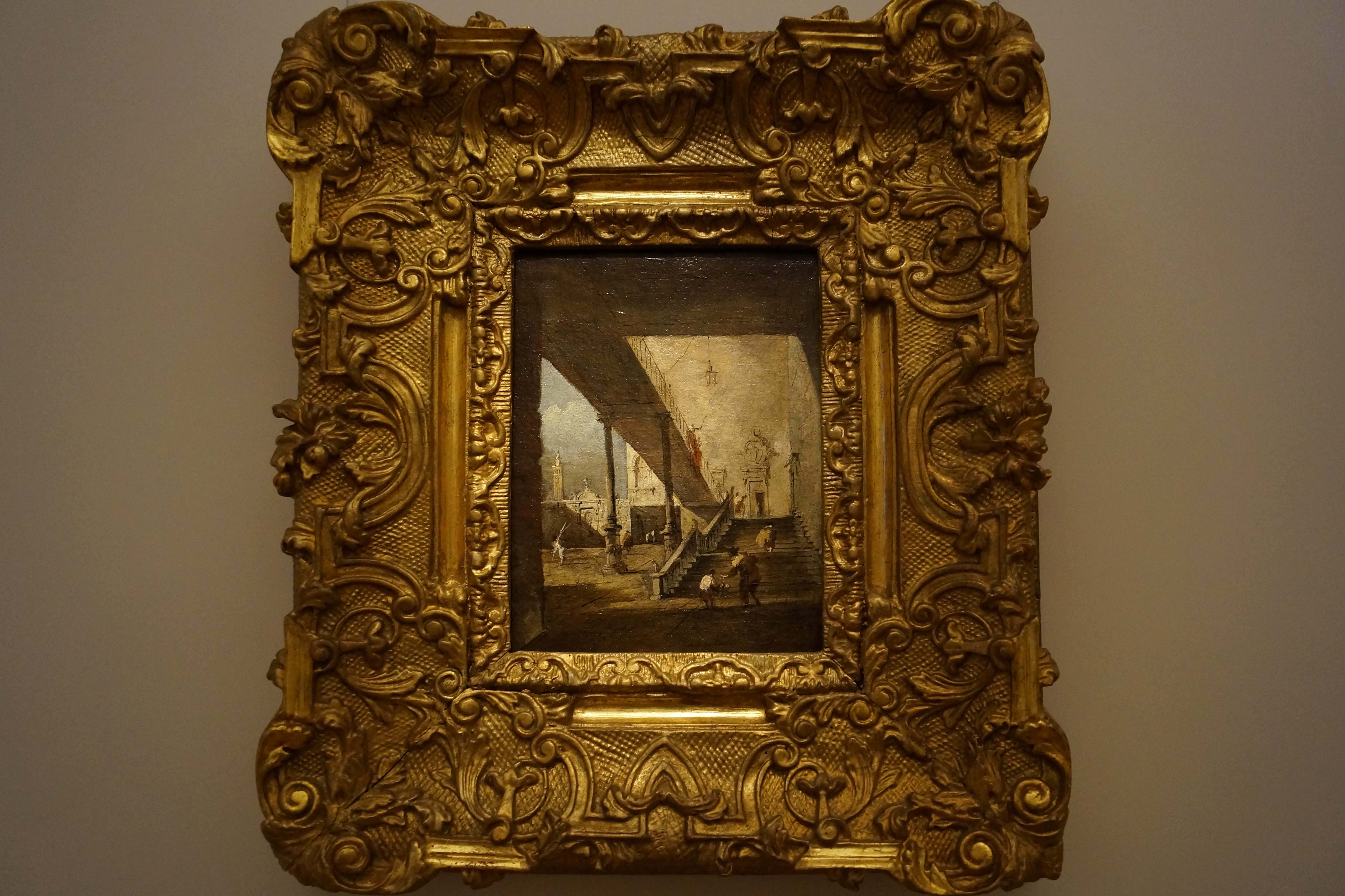 Критики соглашаются с приписыванием авторства этой картины Каналетто. Холст проясняет технический и творческий процесс, связанный с живописью пейзажев, основанный на использовании зеркала и оптической камеры. Художник рисует несколько эскизов, которые переделаны и объединены в оригинальную и реалистичную композицию. Картина была приобретена музеем в 1871 году.