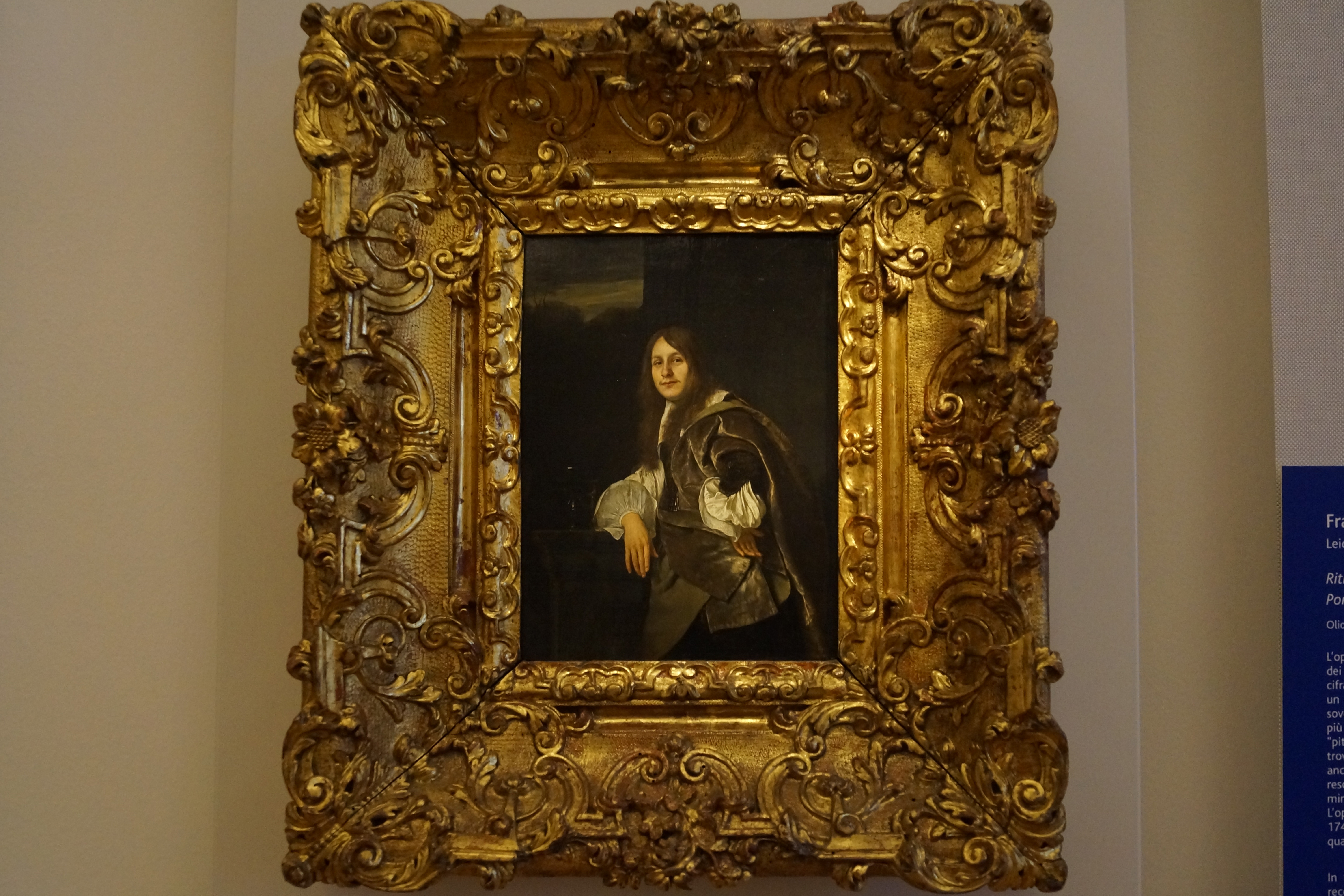 Шарль-Андре ван Лу, работавший с 1732 года при дворе Карла Эммануила III в Турине, написал это полотно в 1744. На нём изображен его друг и известный скульптор Франческо Ладатте, незадолго до создания им модели "Херувим играет с пеликаном", которая датируется 1745 годом. Портрет был приобретен в 1889 году у Кавальера С. Барбера.
