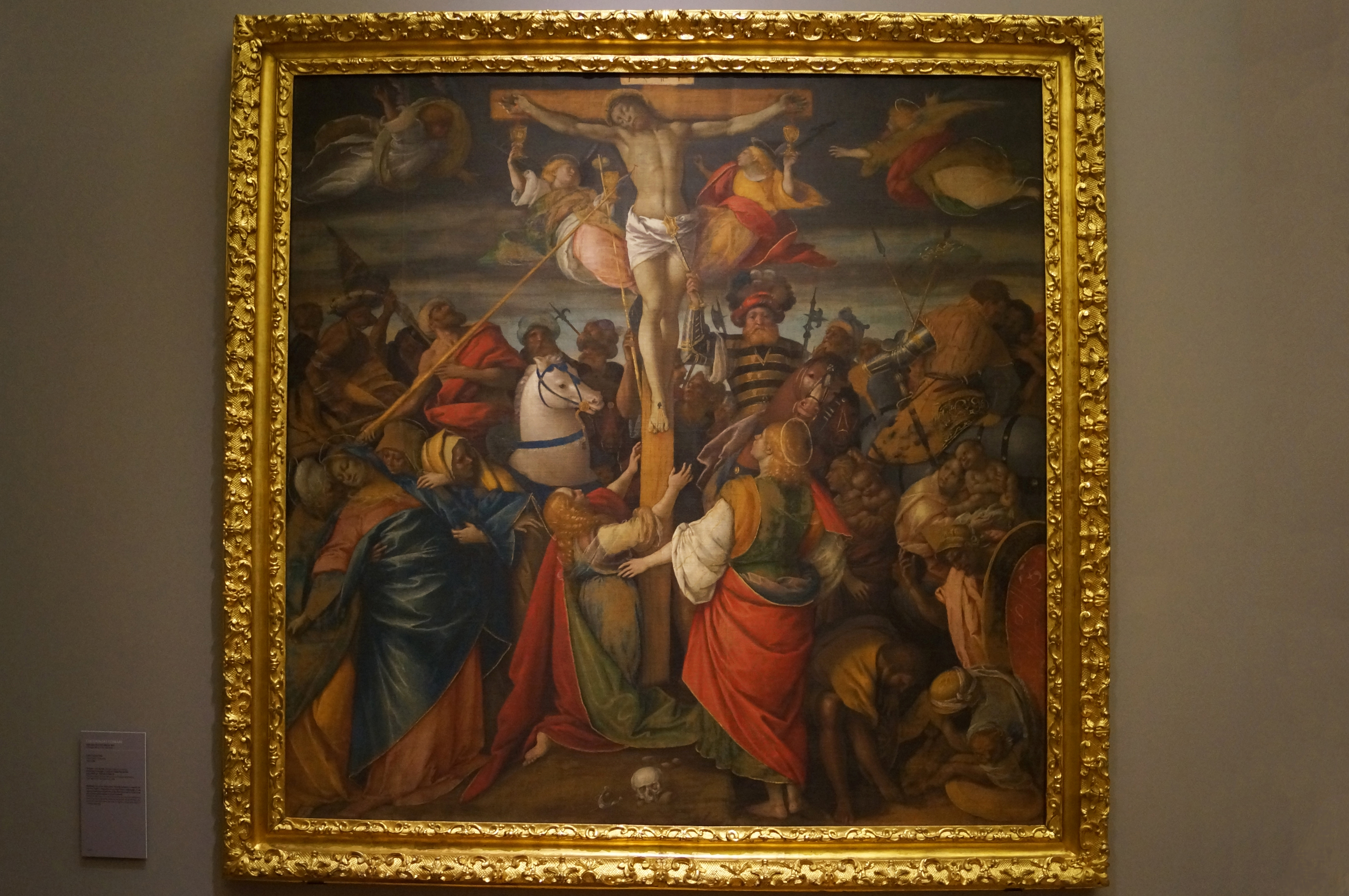 Написанное Гауденцио Феррари (итал. Gaudenzio Ferrari) Распятие во время его полной зрелости (1530-1540), работа характеризуется ярким, мучительным светом, охватывающим фигуры и пейзаж с волнением и драмой, которой было суждено вдохновить целое поколение ломбардских художников. Ранее картина принадлежала семье Крессья (итал. Crescia) из Казале-Монферрато. В 1839 году приобретена у Де Бьянки (итал. De Bianchi).