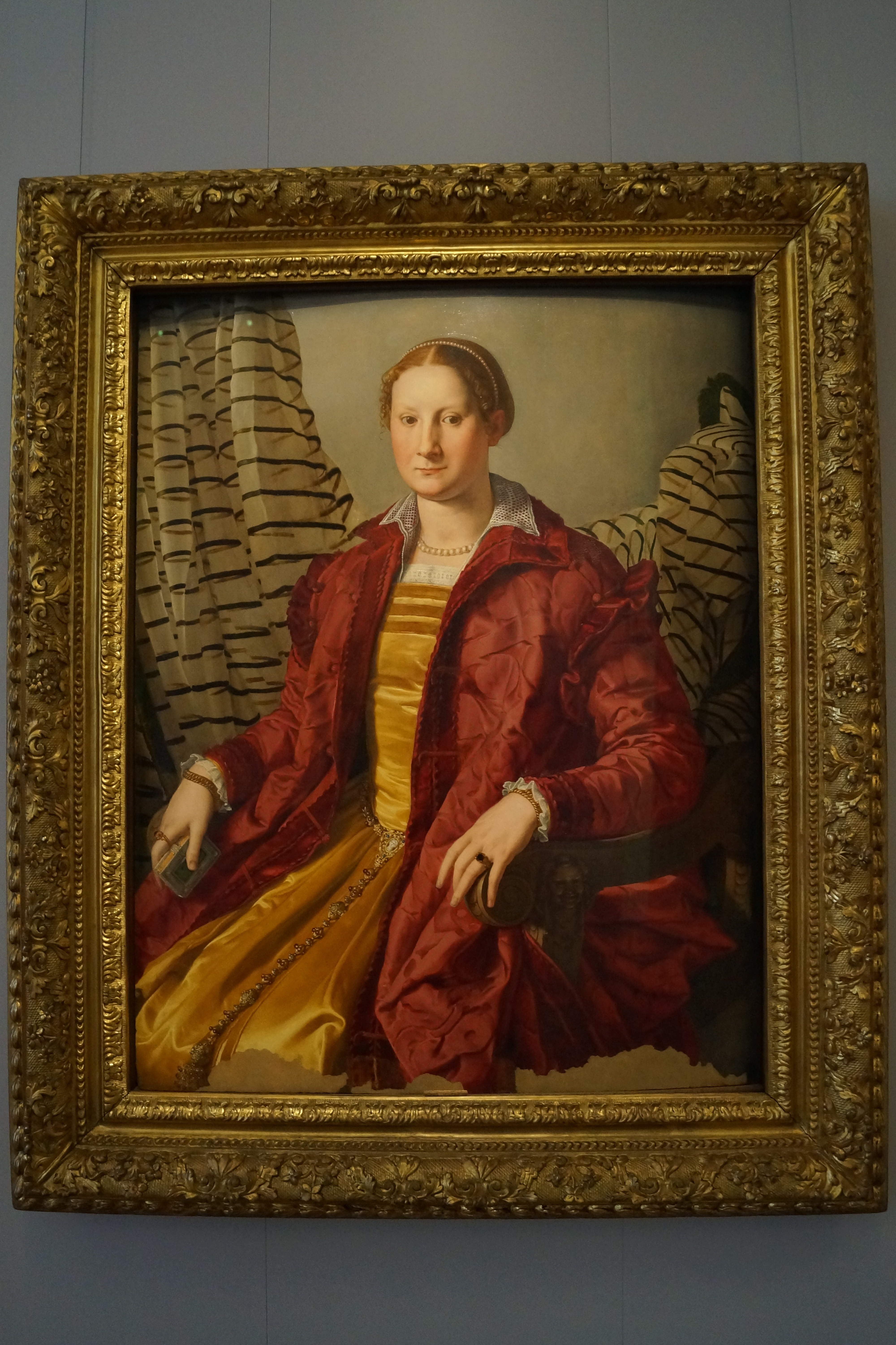 Работа, датируемая 1550–1555 годами, была частью коллекции маркиза Дураццо (итал. Marquis Durazzo), приобретенной Карлом Феликсом (итал. Carlo Felice) в 1824 году. Портрет, который когда-то считался Элеонорой Толедской (итал. Eleonora of Toledo), недавно был идентифицирован как Кассандра Бандини (итал. Cassandra Bandini), жена известного флорентийского банкира Пиерантонио (итал. Pierantonio).