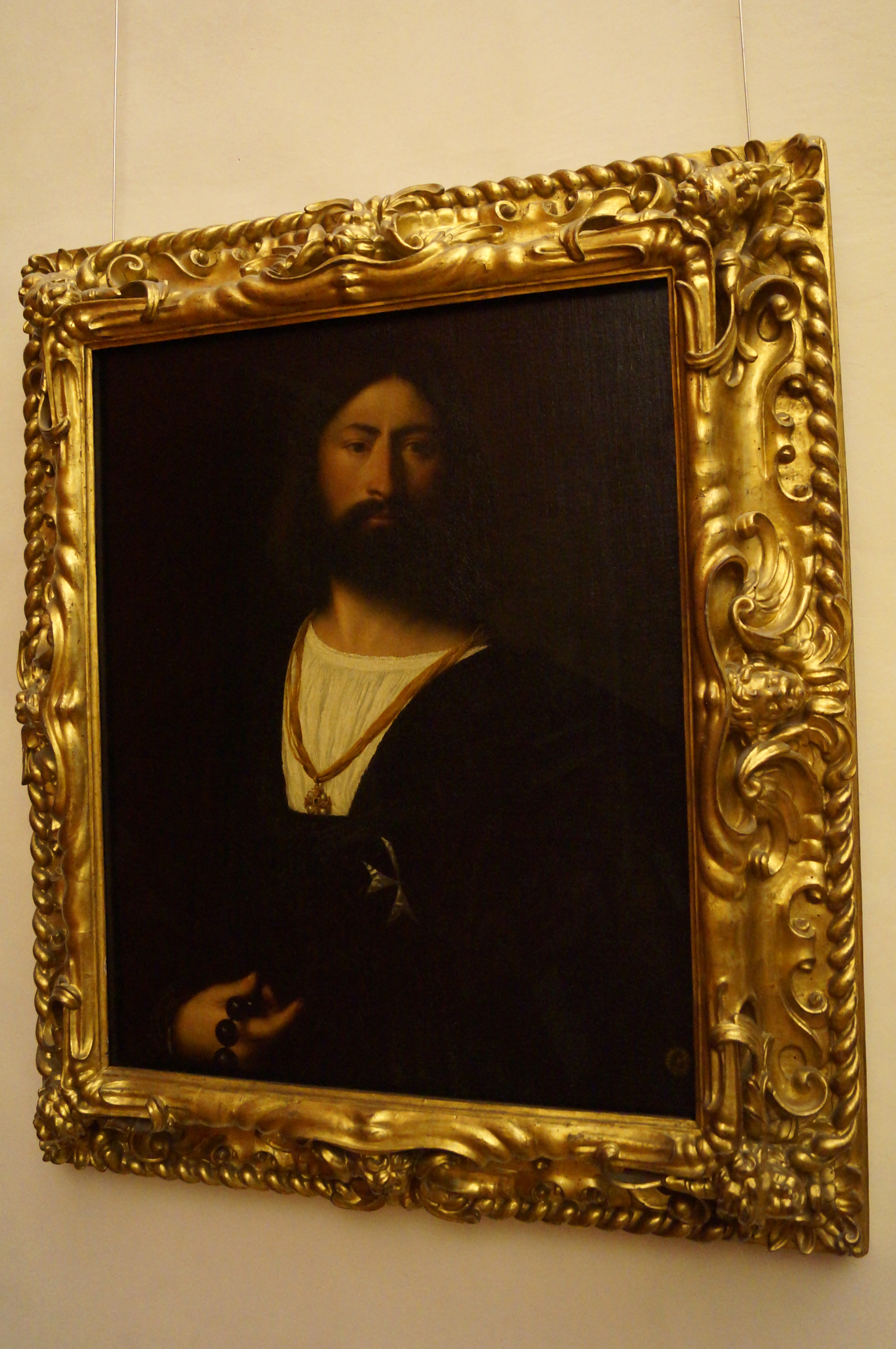 Тициан был в равной степени знатоком портретов и пейзажей, жанров, которые впервые принесли ему славу, но также мифологическими и религиозными сюжетами. Он учился в молодом возрасте у Себастьяна Цуккато, затем у братьев Беллини, Джентиле и Джованни, сыновей Якопо Беллини. Беллини были известной семьей художников из Венеции и познакомили Титана со многими другими выдающимися художниками. Это включало в себя знаменитого Джорджоне, чья картина "Спящая Венера", очевидно, повлияла на Тициана "Венера Урбино" и "Венера и Купидон", которые сейчас находятся в галерее Уффици. Этот портрет неизвестного рыцаря Мальты, купленный кардиналом Леопольдо де Медичи (1617 – 1675) в Венеции в 1654 году, был написан Тициано Вечеллио (1488 – 1576) в 1510 году и вошёл в Уффици в 1677 году. Задумчивая меланхолия в выражении рыцаря и изощренные сочетания цветов заставили критиков отнести его к Джорджоне (Giorgione). Однако после недавней реставрации, придавшей большей ясности картине, большинство ученых теперь считают, что она была написана молодым Тицианом, когда он всё ещё находился под сильным влиянием своего мастера Джорджоне.