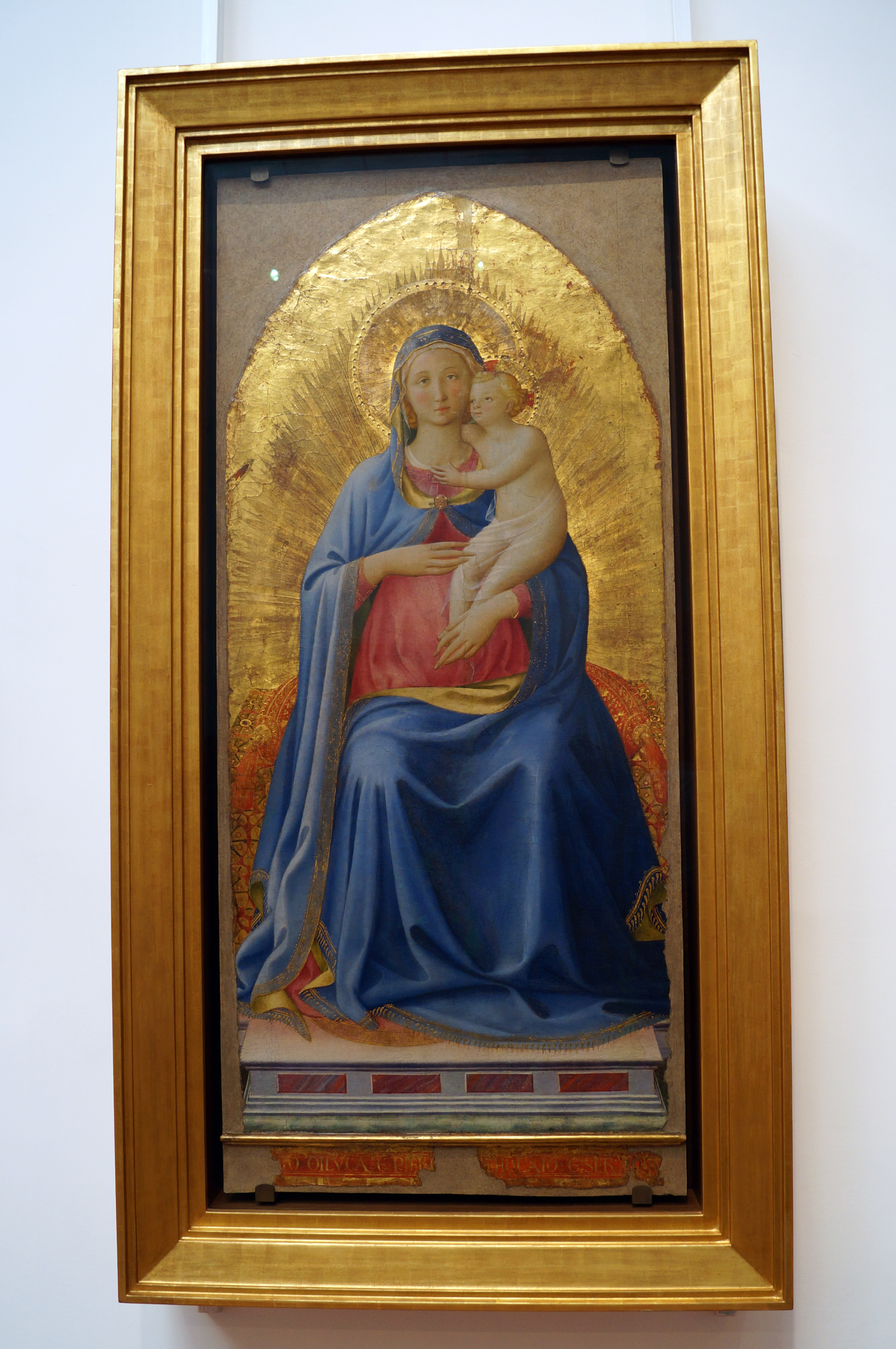 Фра Джованни да Фьезоле (1400 – 1455), прозванный Беато Анджелико (Beato Angelico, букв. "брат Блаженный Ангельский") написал картину "Мадонна с Младенцем на престоле" в 1435 году. Раньше эта картина находилась в церкви Святого Михаила Архангела в Понтасьеве. Дева изображена изящно и торжественно, что является двумя отличительными чертами искусства Фра Анджелико. Ясный, яркий свет следует образу фигур и усиливает блеск ткани и блеск цветов.