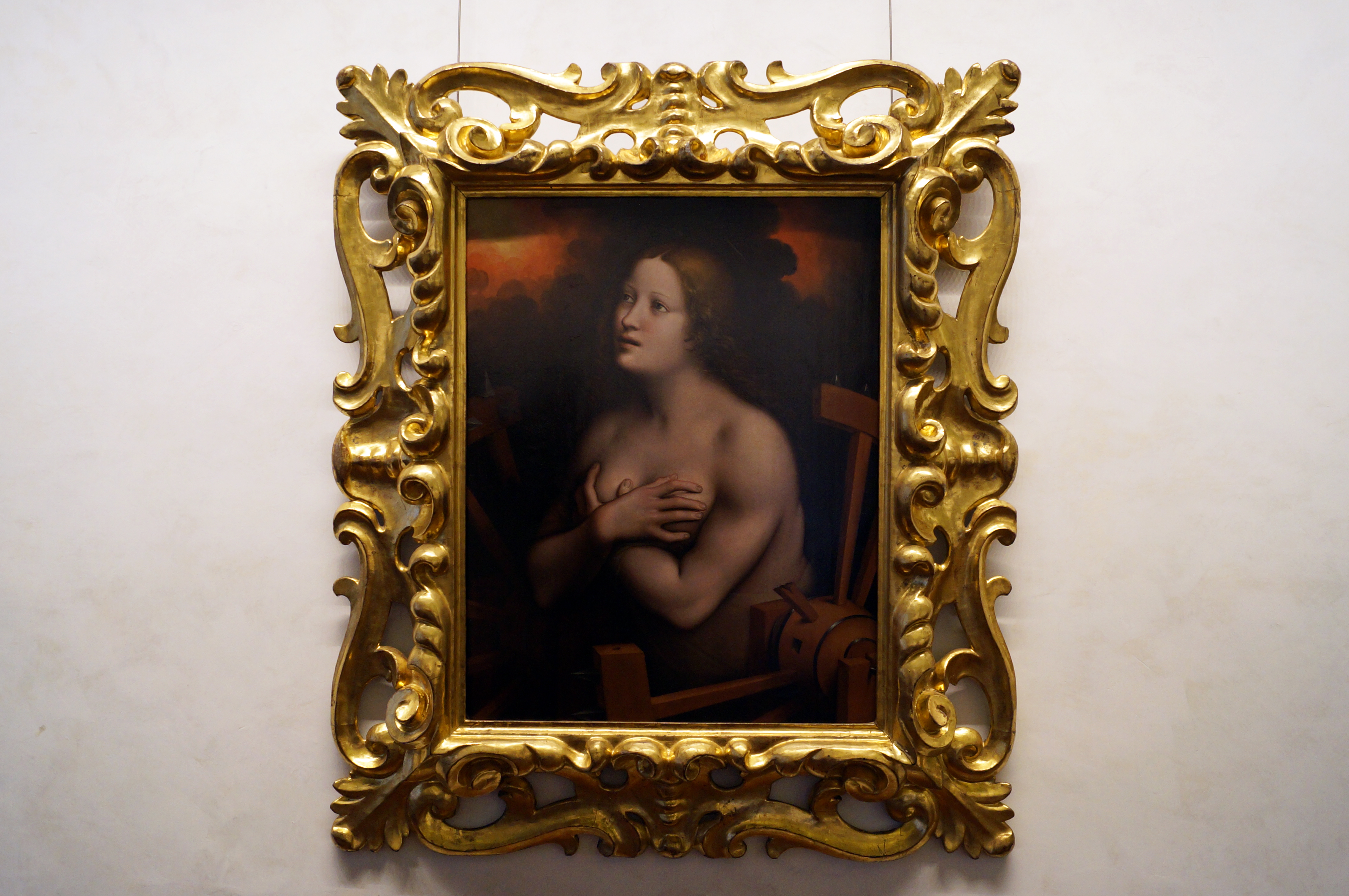 Мария Магдалина. 1530 Масло, дерево. Это одна из серии пышно одетых дам в пояс, написанных Баккьяккой в 1530-х годах. Нимб и атрибуты – красное платье и кувшин с миром – идентифицируют фигуру как Марию Магдалину, но это не традиционный образ кающегося святого. Загадочное выражение лица, роскошный меховой воротник и прекрасный алебастровый кувшин позволяют предположить, что это портрет женщины в образе святой. Некоторые ученые утверждают, что очаровательной моделью, часто появляющейся на картинах Баккьякки, была его любовница, куртизанка Пентесилея.