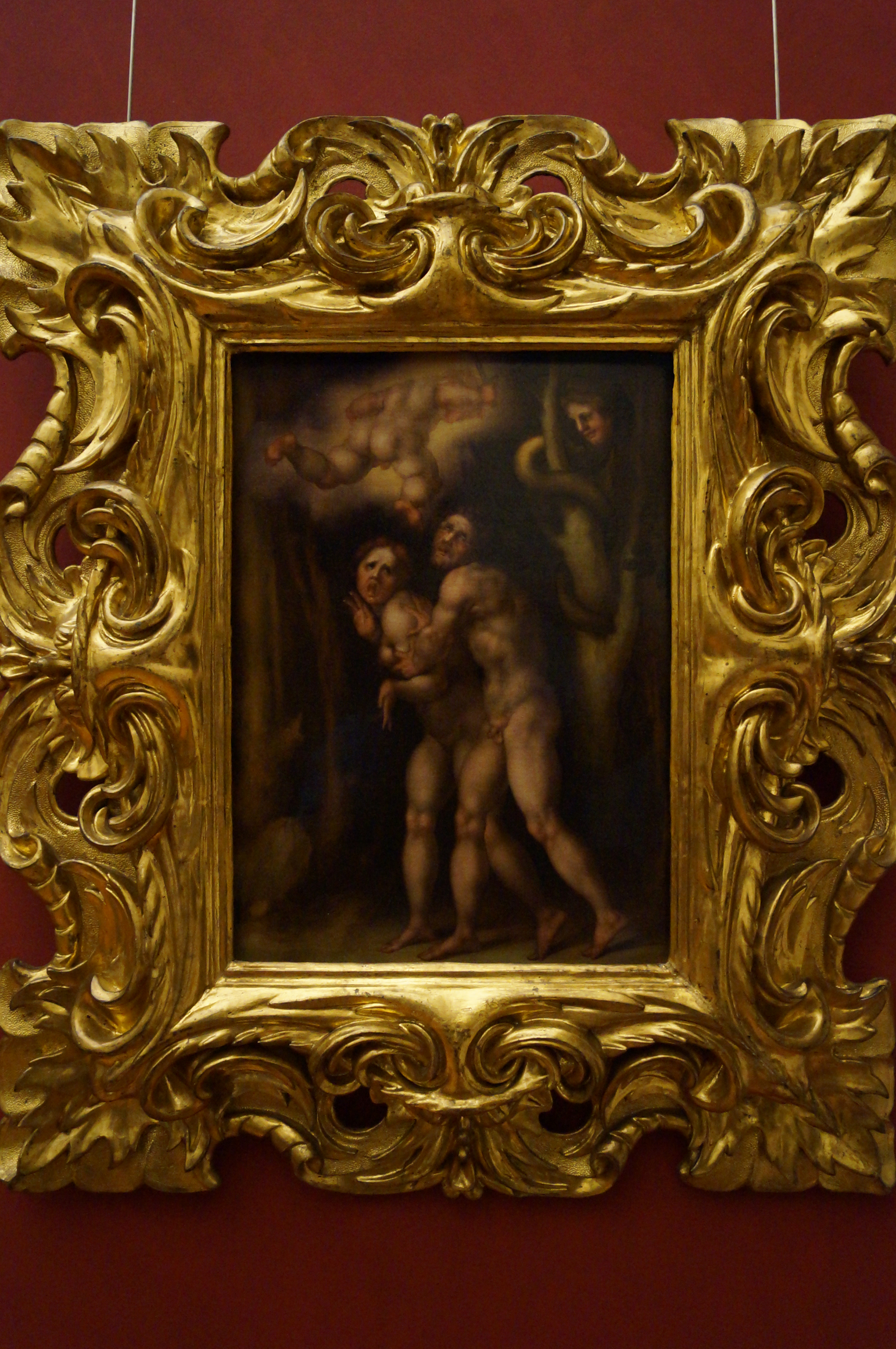 Картина Якопо Каруччи "Ужин в Эммаусе" показывает, как во время скудной трапезы, в которой монахи, заказывшие это полотно, изображаются как слуги, а два ученика признают воскресшего Христа (Лука, 24). Натуралистические детали предвещают жанровые сцены живописи 17 века. После консилиума в Тренте (1545 – 1563 гг.) Глаз Божий над головой Иисуса Христа заменил трехликую голову Троицы. Написанная в 1525 году для пансиона картезианского монастыря в Галлуццо, работа была перенесена в Академию изящных искусств во Флоренции в 1810 году после подавления Наполеона, а затем в галерею Уффици в 1948 году. Во Флоренции Якопо Каруччи работал в семье Медичи, занимая видную роль в своих первых работах. По словам Джорджо Вазари, этот памятный портрет Козимо Старшего, создателя династии Медичи, был написан Понтормо ок. 1519 – 1520 гг. для Горо Гери (Goro Gheri), секретаря Лоренцо де Медичи, герцога Урбинского. Портрет хранился в коллекции Оттавиано Медичи (Ottaviano de'Medici) и в коллекции герцогов до середины 1500-х годов. В 1624 году картину разместили в зале Трибуна. Лавровая ветвь является традиционной эмблемой Медичи. Стих Энеиды Виргиллия на свитке указывает на династический аспект семьи Медичи.
