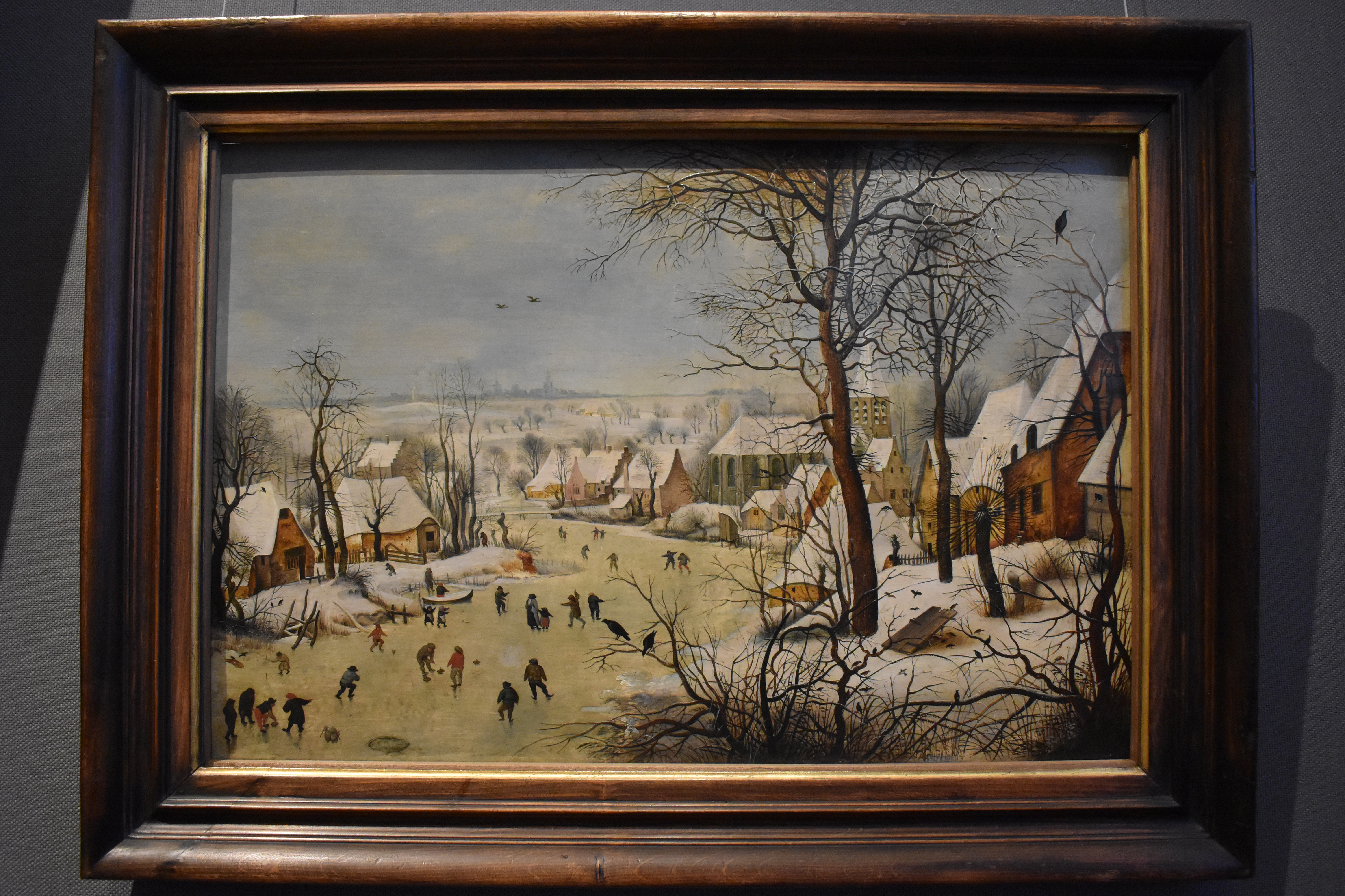 Около 100 экземпляров подтверждают необычайную популярность этого произведения после Питера Брюгеля Старшего. Предполагалось, что суровая зима 1564–1565 годов могла стать катализатором для двух картин Брюгеля, посвященных теме зимнего пейзажа. И ловушке для птиц (справа), и фигуристам было придано более глубокое пресловутое или морализаторское значение (предупреждение о бдительности, скользкость жизненного пути), хотя убедительных доказательств этому нет. Этот экземпляр считается одним из старейших и лучших существующих образцов.