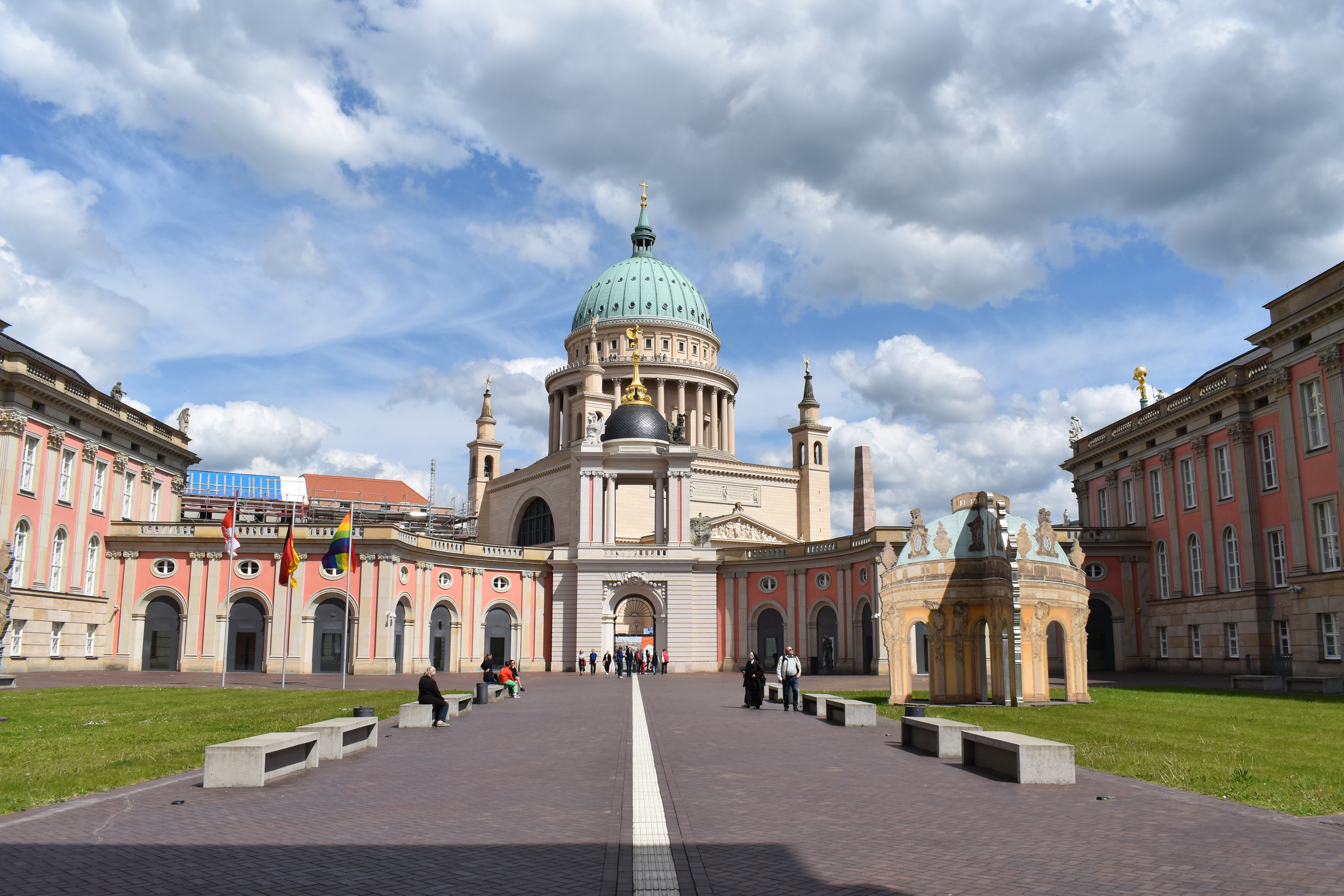 Более 250 лет назад Фридрих Великий построил в 1771-72 годах дворец Барберини на старой рыночной площади Альтер Маркт (Alter Markt) в историческом центре Потсдама. Здание в стиле барокко, которое жители Потсдама называли "дворцом" вплоть до двадцатого века, имело богатую событиями историю: спроектированный архитекторами Георгом Кристианом Унгером и Карлом фон Гонтардом, дворец был построен по образцу барочного дворца Барберини в Риме. Здание было изменено и перестроено в середине XIX века при короле Фридрихе Вильгельме IV. Два крыла на задней стороне создали новые жилые помещения, а на обоих верхних этажах разместились величественные комнаты, предназначенные для культурных учреждений Потсдама. С середины девятнадцатого века дворец Барберини на берегу реки Хавель стал центральным местом проживания жителей Потсдама, а также сценой для общественной жизни, искусства и культуры. Помимо многочисленных выставок, художественных лотерей и чтений, здесь давали концерты такие великие артисты, как Клара Шуман, Антон Рубинштейн и Вильгельм Фуртвенглер. Позже здесь даже показывали фильмы в первом городском кинотеатре Clou Potsdams. Вплоть до начала Второй мировой войны здесь находилась библиотека, а также молодежное общежитие и бюро регистрации гражданских браков.