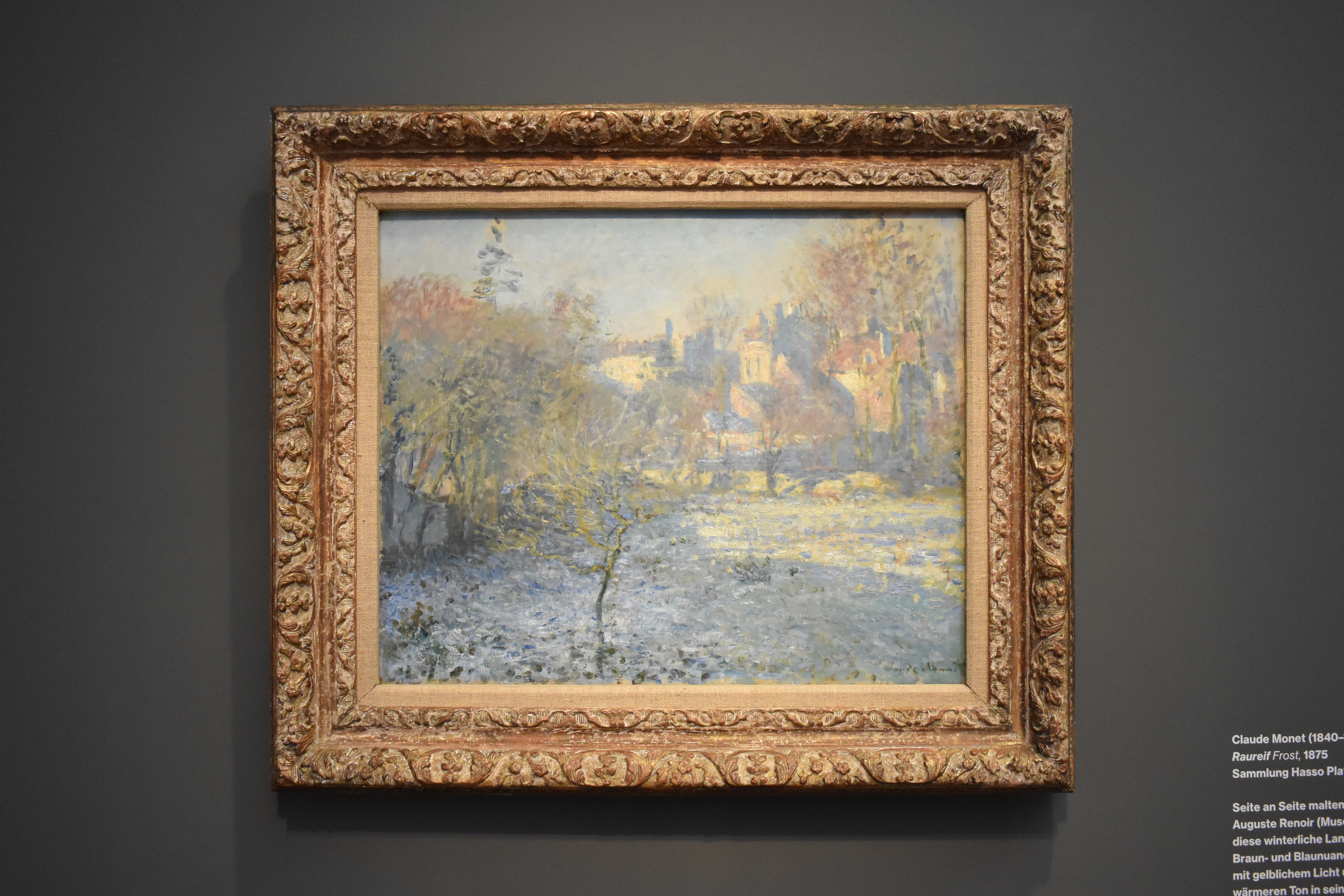 Клод Моне и Пьер-Огюст Ренуар, стоя бок о бок, написали один и тот же вид этого сада зимой. Оба использовали тонко нюансированные оттенки коричневого и синего, хотя Моне добавил элемент тепла в свой вид с помощью желтоватого света и оттенка красного. Он выполнил ветви сильными мазками, в то время как у Ренуара кусты изображены более филигранно (Музей Оранжереи, Париж).