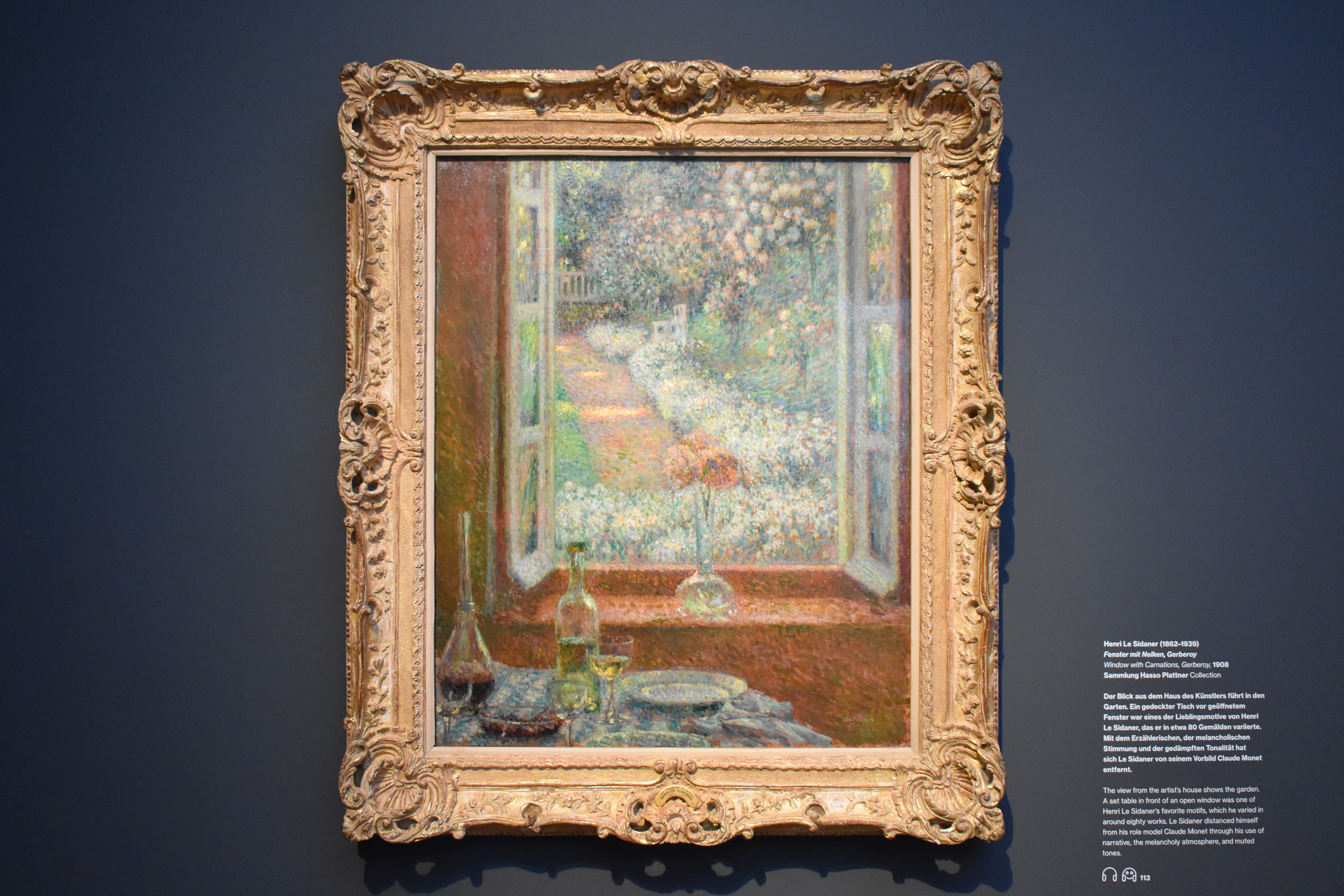 Анри Ле Сиданэ (Henri Le Sidaner/1862-1939). Окно с гвоздиками. Жерберуа. 1908. Вид из дома художника ведет в сад. Накрытый стол перед открытым окном был одним из любимых мотивов Анри Ле Сиданэ, который он изображал примерно в 80 картинах. Своим повествованием, меланхоличным настроением и приглушенной тональностью Ле Сиданэ дистанцировался от своего образца для подражания Клода Моне.