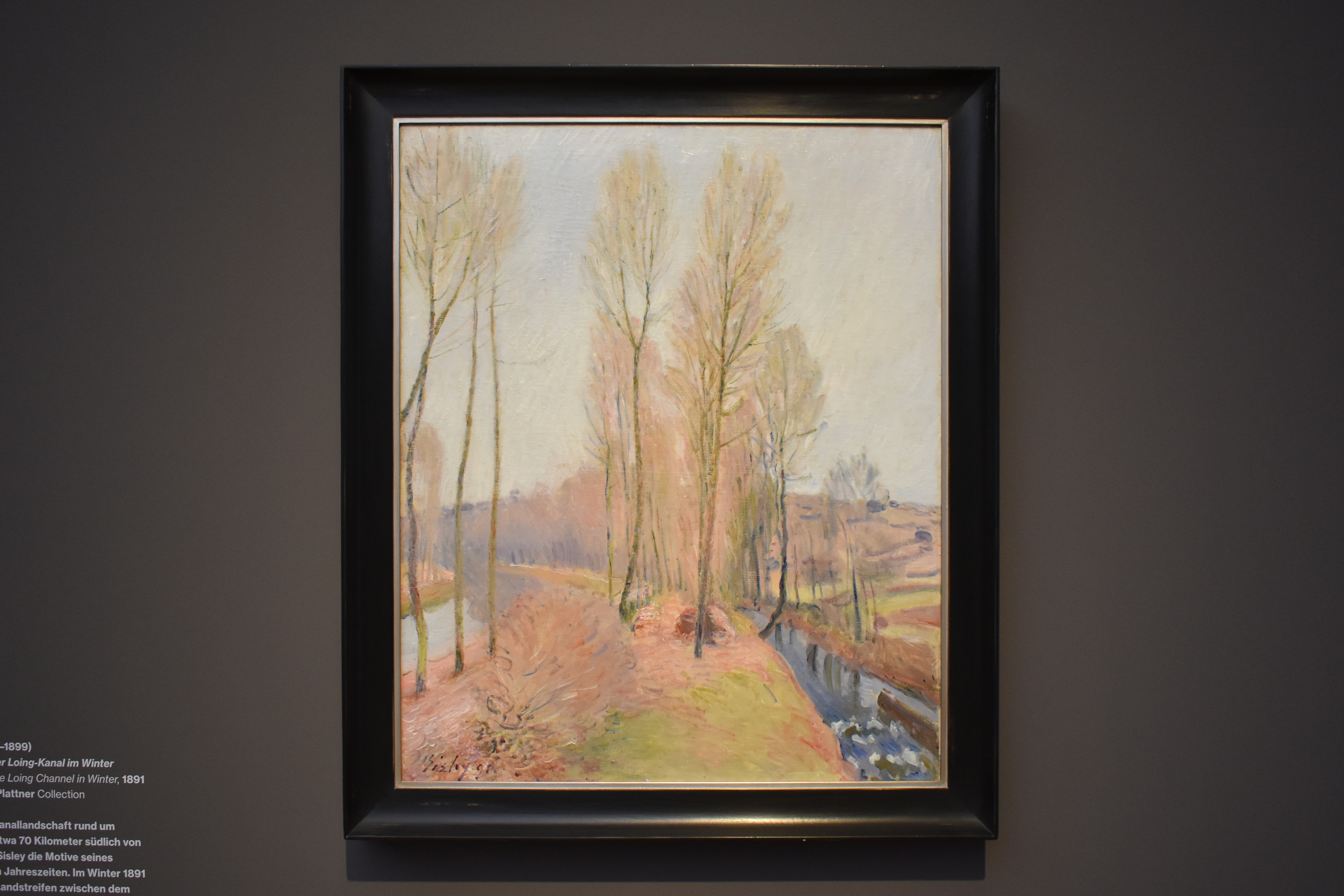 Альфред Сислей (Alfred Sisley/1839-1899). Орванна и канал Лоинг зимой. 1891. Пейзаж рек и каналов вокруг Морет-сюр-Луан, примерно в семидесяти километрах к югу от Парижа, и его сезонные изменения дали Альфреду Сислею мотивы его позднего творчества. Зимой 1891 года он стоял на полосе земли между судоходным каналом дю Луан слева и рекой с порогами справа. В этой работе вертикального формата, необычной для импрессионизма, Сислей проводит параллели между двумя полосами воды, текущей рядом, и высокими тополями.