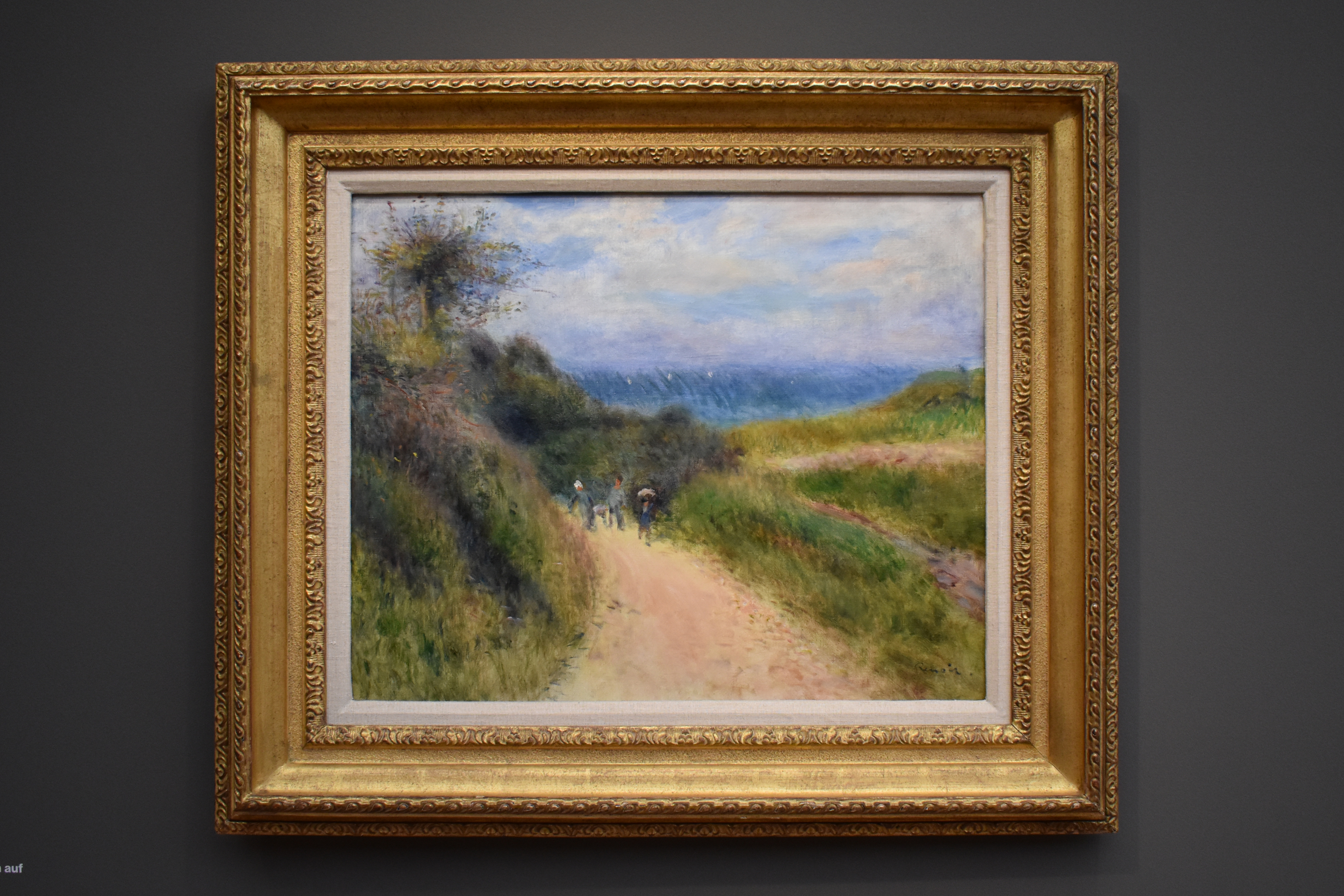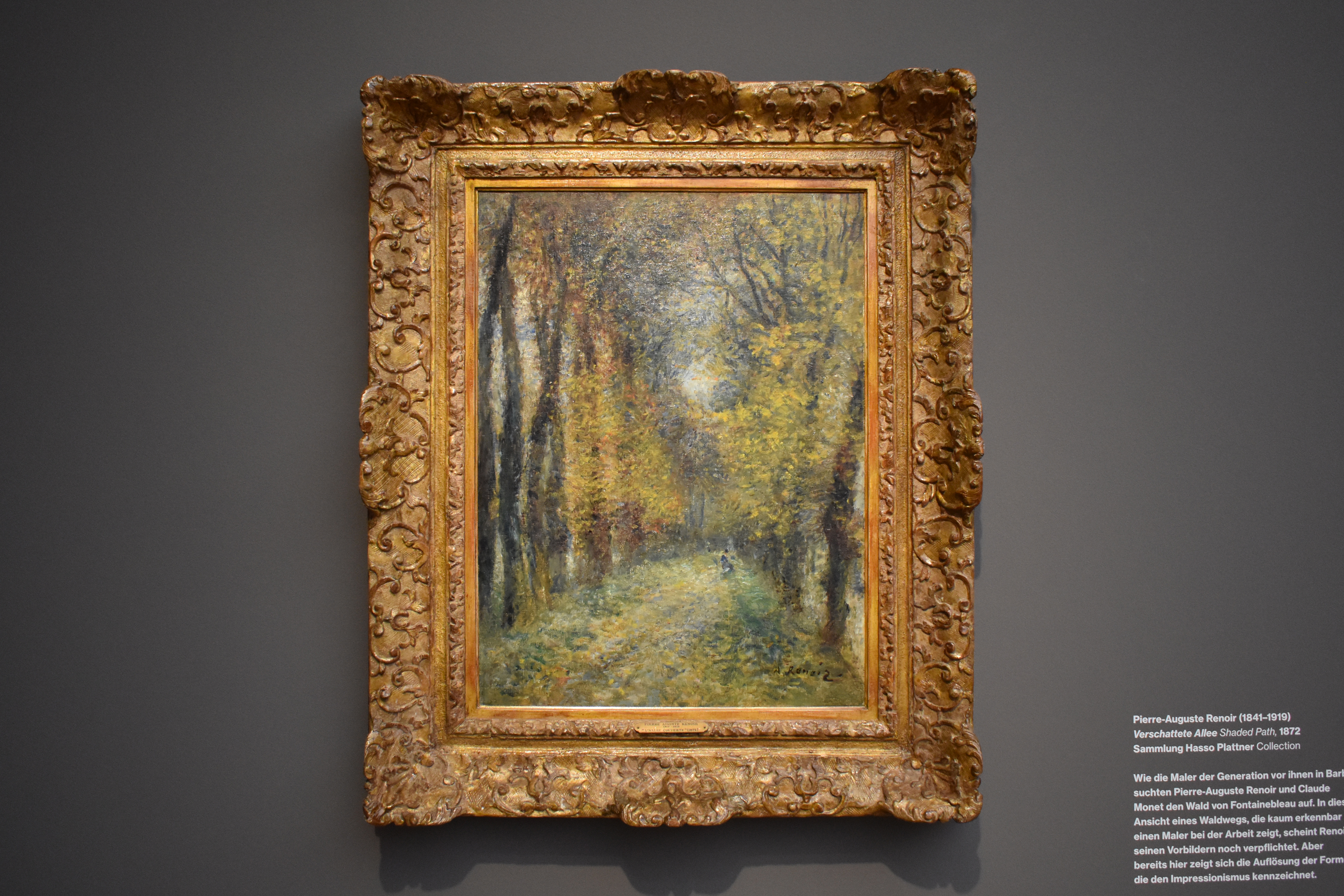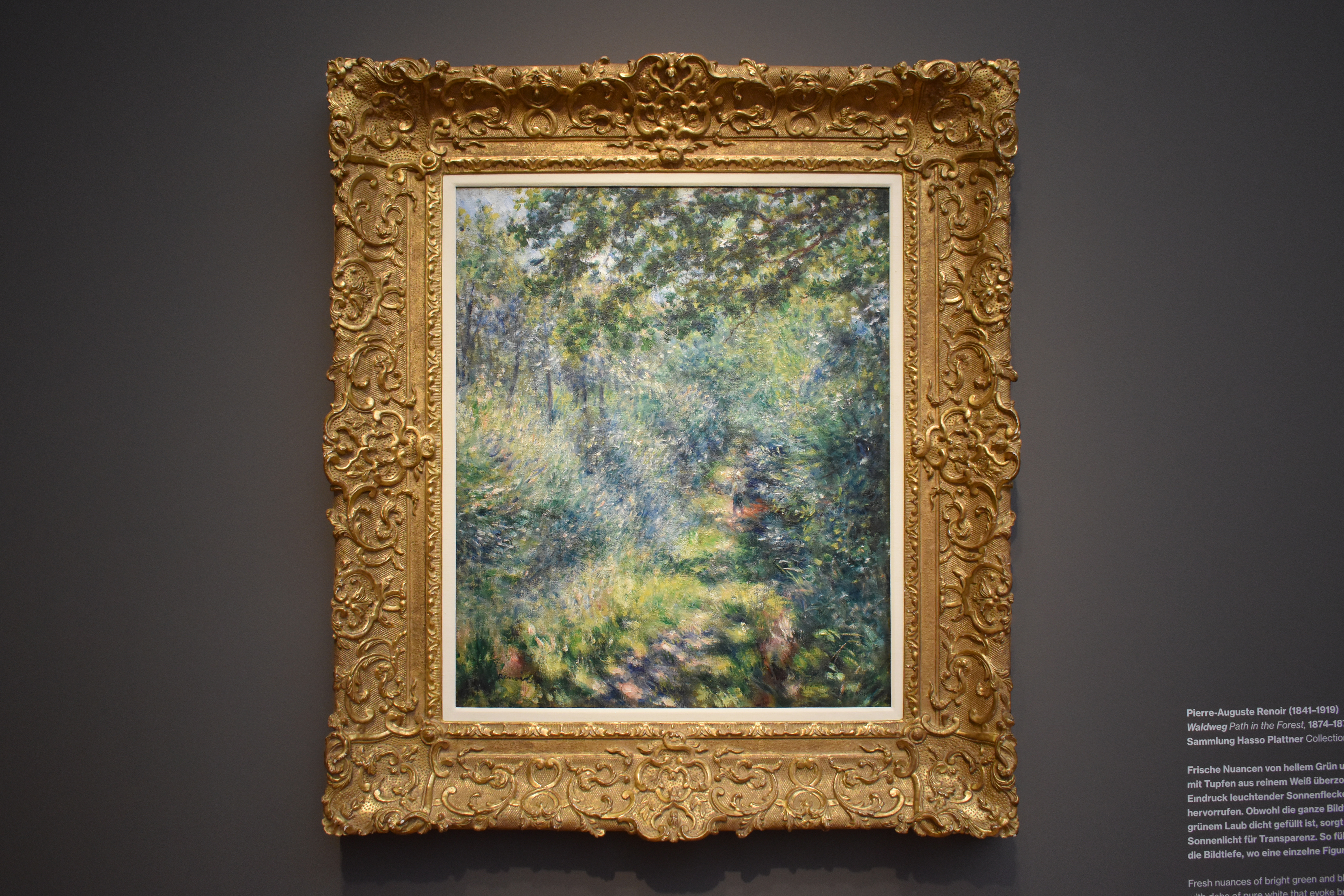 Пьер-Огюст Ренуар (Pierre-Auguste Renoir/1841-1919). Тропинка в лесу. 1874-1877. Свежие оттенки ярко-зеленого и голубого накладываются на пятна чистого белого, которые напоминают яркие блики солнечного света в подлеске. Хотя вся поверхность покрыта зелёными листьями, туманный солнечный свет создает ощущение прозрачности. Таким образом, тропинка ведёт в глубину пространства картины, где стоит одинокая фигура.