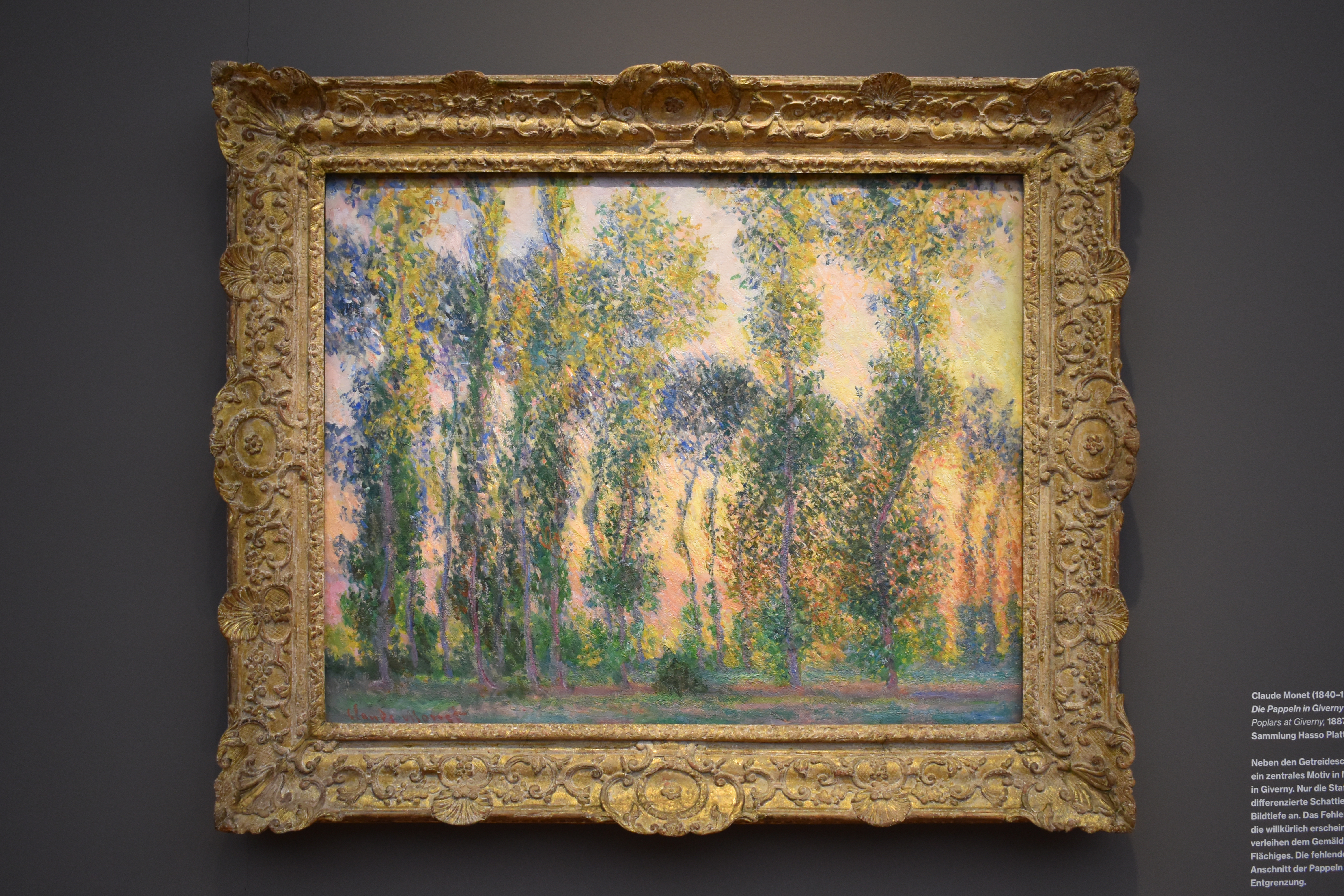 Помимо специальных выставок, в музее Барберини постоянно демонстрируется обширная коллекция импрессионистских и постимпрессионистских картин основателя музея Хассо Платтнера, включая шедевры Клода Моне, Пьера-Огюста Ренуара, Берты Моризо, Гюстава Кайлеботта и Поля Синьяка. Более ста работ двадцати художников представляют историю французского импрессионизма – от его зарождения в девятнадцатом веке до его дальнейшего развития через пуантилистов и фовеев в начале двадцатого века. Тридцать восемь картин Клода Моне – больше работ этого художника не представлено ни в одном выставочном центре Европы за пределами Парижа. Это делает Потсдам одним из самых известных центров импрессионизма в мире.