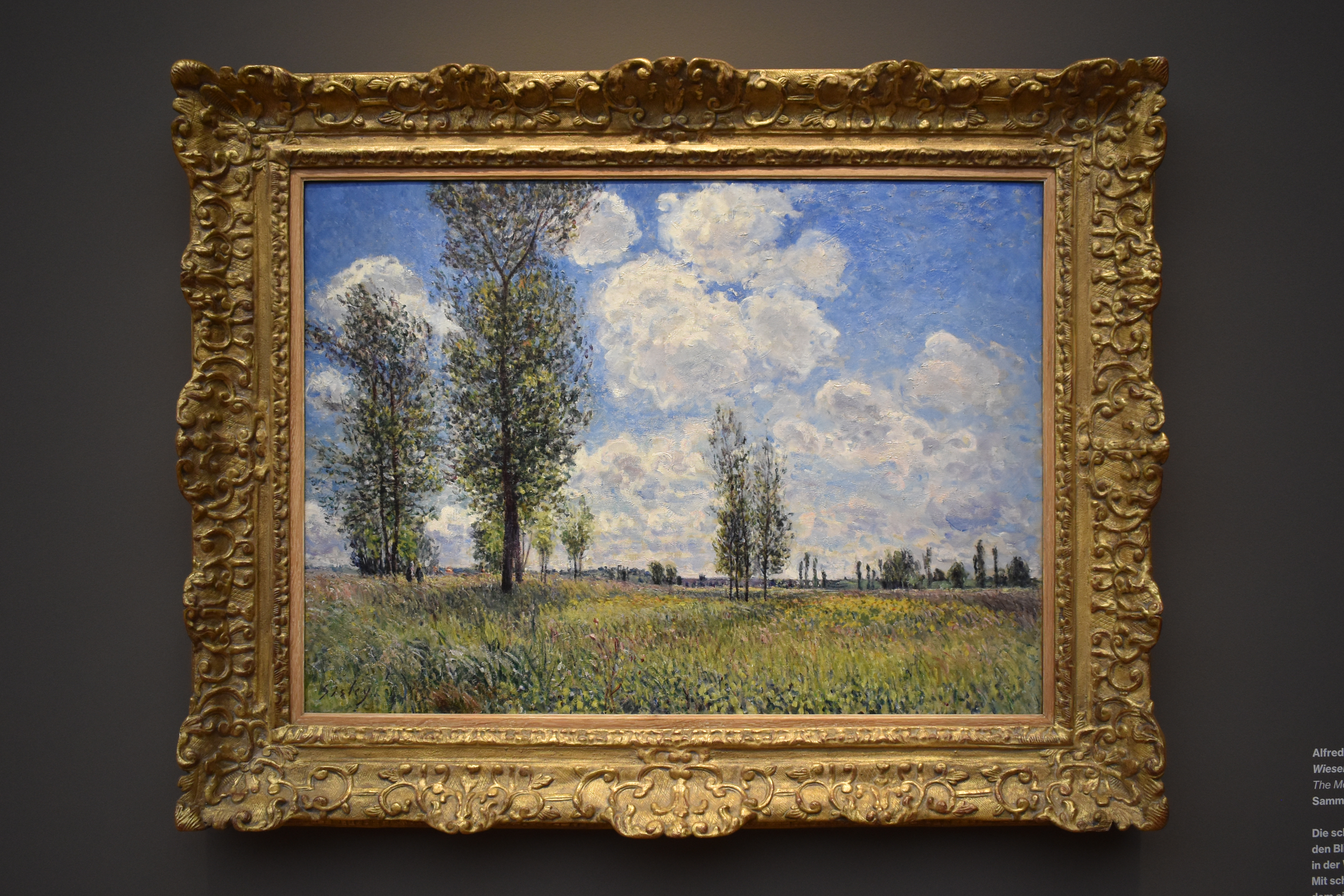 Альфред Сислей (Alfred Sisley/1839-1899). Луг в Венё-Надоне. 1881. Стройные тополя с нежными листьями уводят взгляд в глубину картинного пространства и придают ему устойчивость в этом широком летнем пейзаже. С помощью сопоставления мерцающих цветовых полей и сокращения мотивов Альфред Сислей придает переливчатую жизненную силу и напряжение, казалось бы, однообразной теме. Сислей показал эту картину на Седьмой выставке импрессионистов в 1882 году, на которой группа сосредоточилась на пейзажах.