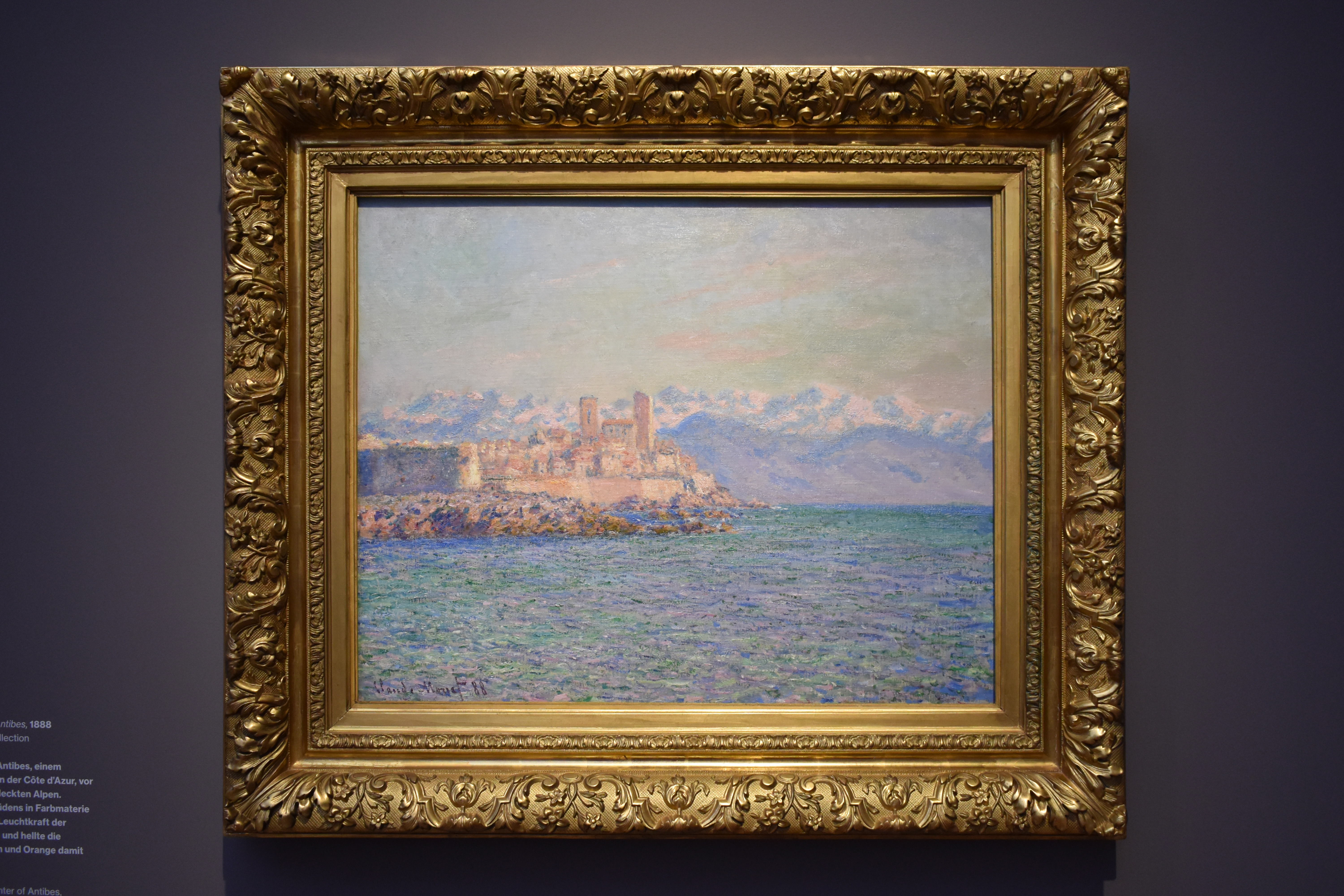 Клод Моне (Claude Monet). Форт. 1888. Моне изобразил исторический центр Антиба, растущего туристического центра на Лазурном берегу, на фоне силуэта заснеженных Альп. Он увеличил яркость цветов, чтобы передать в красках интенсивный южный свет. Начав с белого и добавляя другие цвета, он осветлил тональные значения, чтобы получить синие, красные, зеленые и оранжевые оттенки.