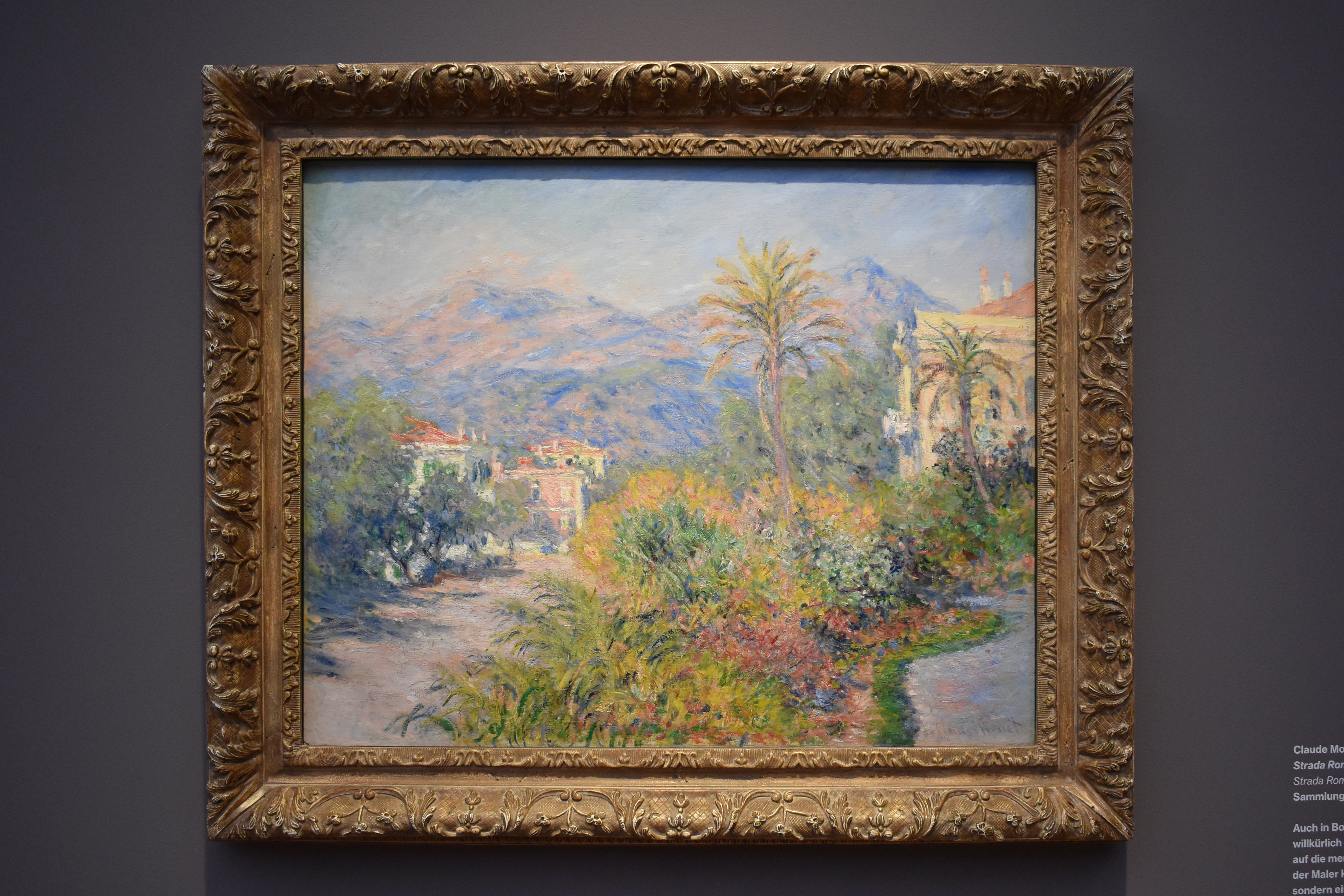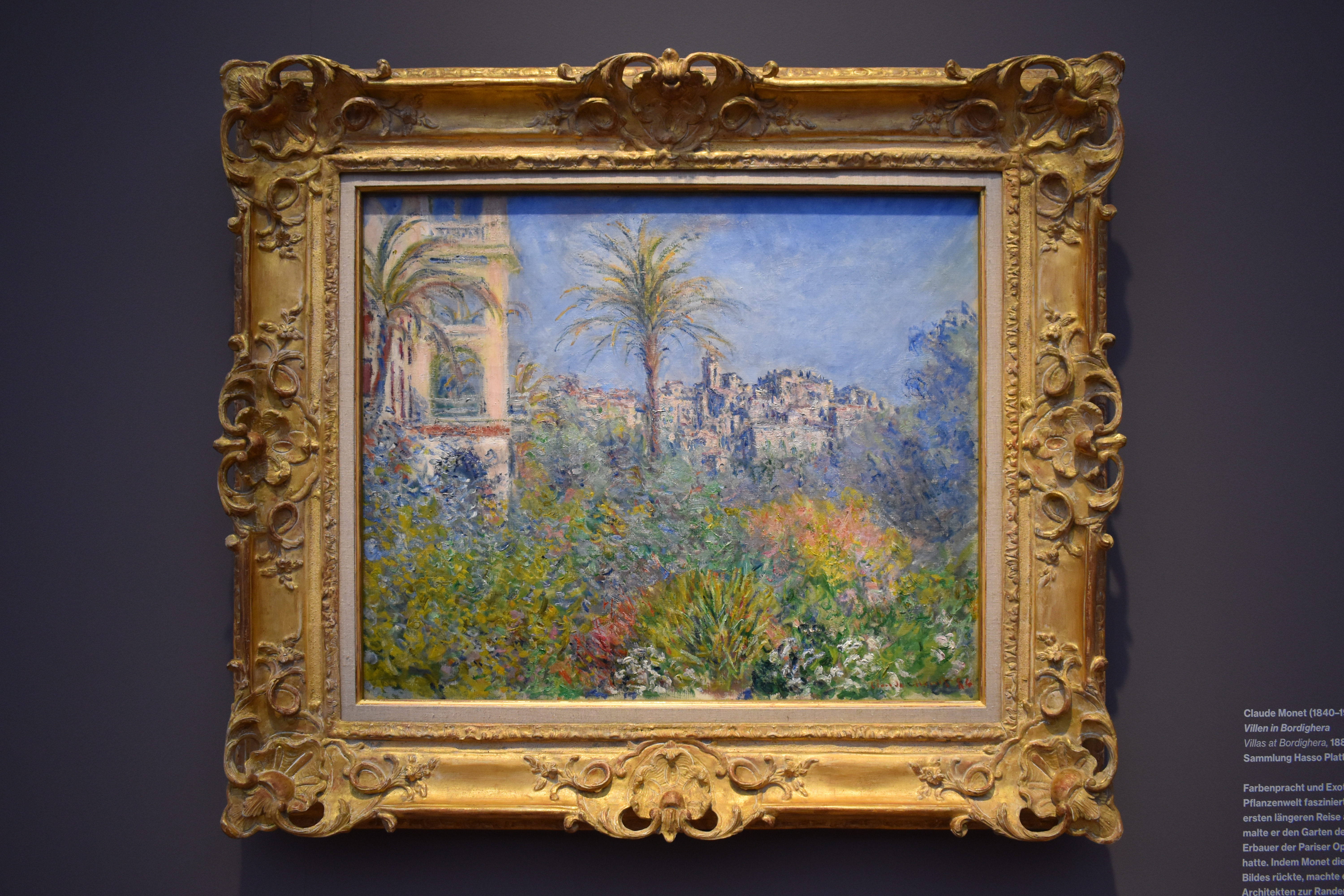 Клод Моне. Виллы в Бордигере. 1884. Во время своего первого длительного визита на Ривьеру Клод Моне был очарован великолепными цветами и экзотикой средиземноморских растений. В Бордигере он написал сад виллы Гарнье, которую архитектор Парижской оперы построил здесь для себя. Переместив пальму в центр картины, он преуменьшил значение работы знаменитого архитектора.