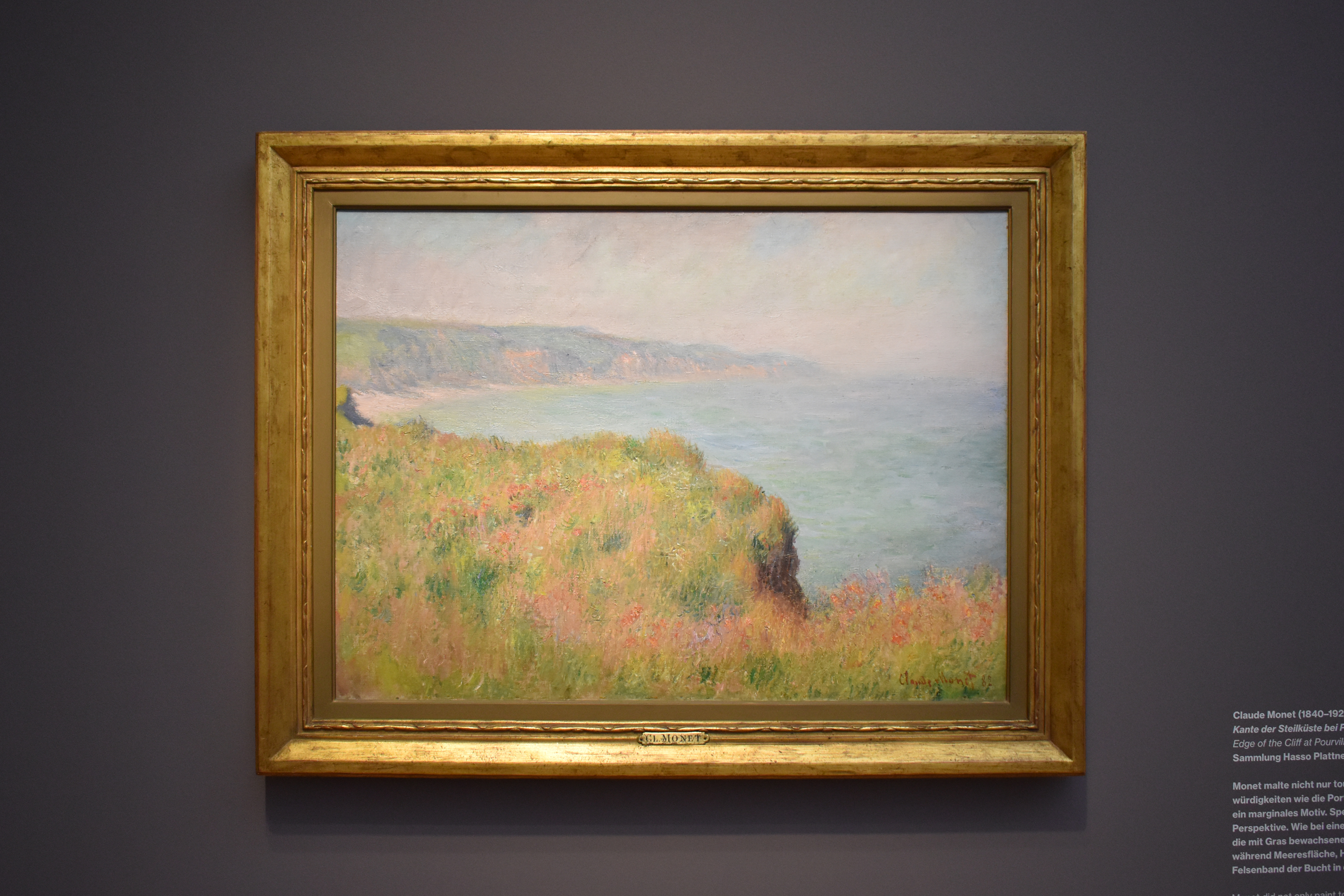Клод Моне (Claude Monet/1840-1926). Край обрыва в Пурвиле. 1882. Моне писал не только туристические места, такие как Порт д'Аваль. Здесь он выбрал маргинальный мотив и сделал его эффектным с помощью перспективы. Как на фотографии, травянистый край утеса находится в резком фокусе, в то время как поверхность моря, небо и скалы залива вдали размыты.