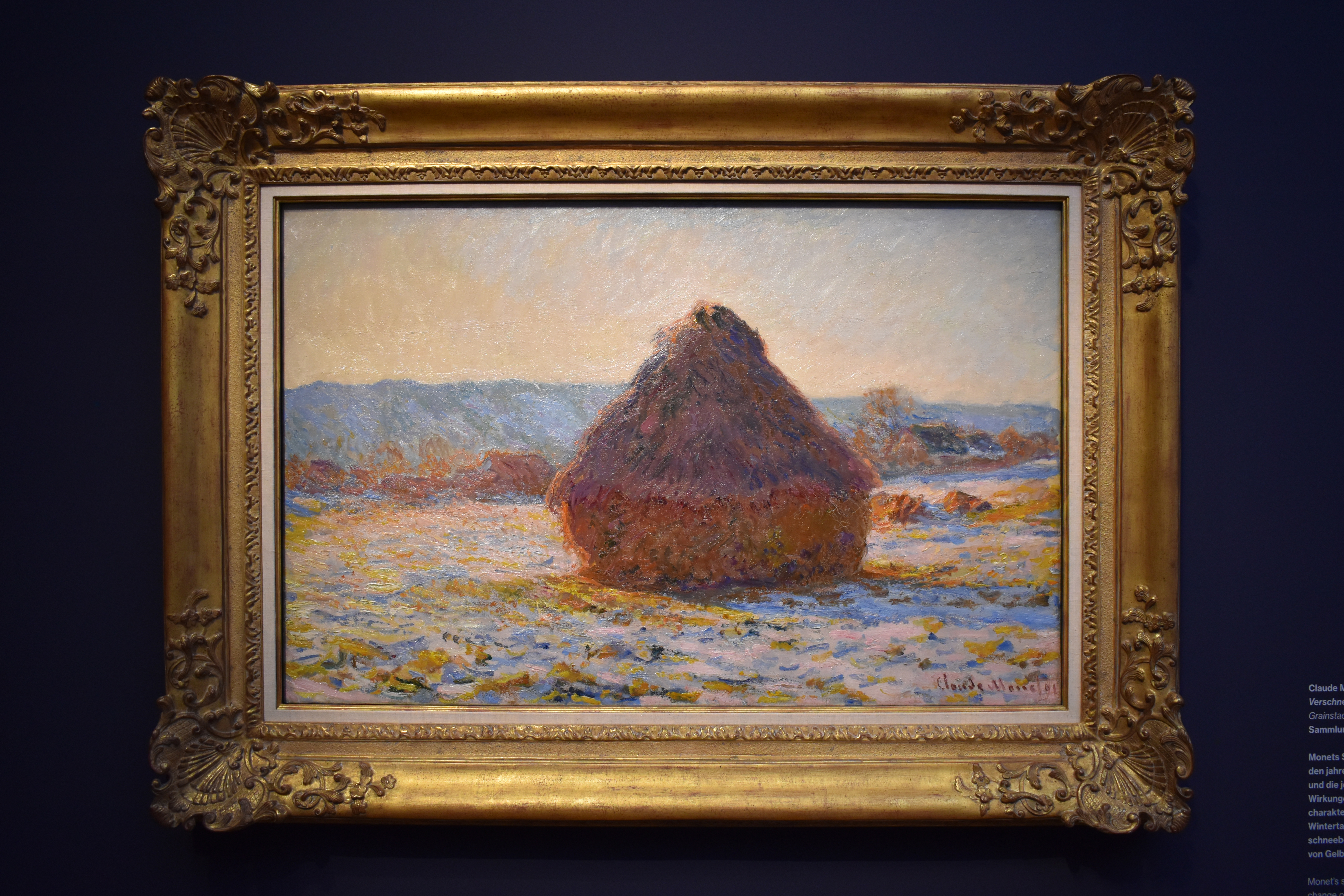 Клод Моне (Claude Monet/1840-1926). Стог соломы при солнечном свете, снег. 1891. В серии "Стога соломы" Моне рассматривает сезонные изменения пейзажа и меняющееся влияние солнечного света в зависимости от времени суток. Моне запечатлел характерное настроение света в холодный зимний день и описал отражения на заснеженном поле в нежных тонах желтого и оранжевого.