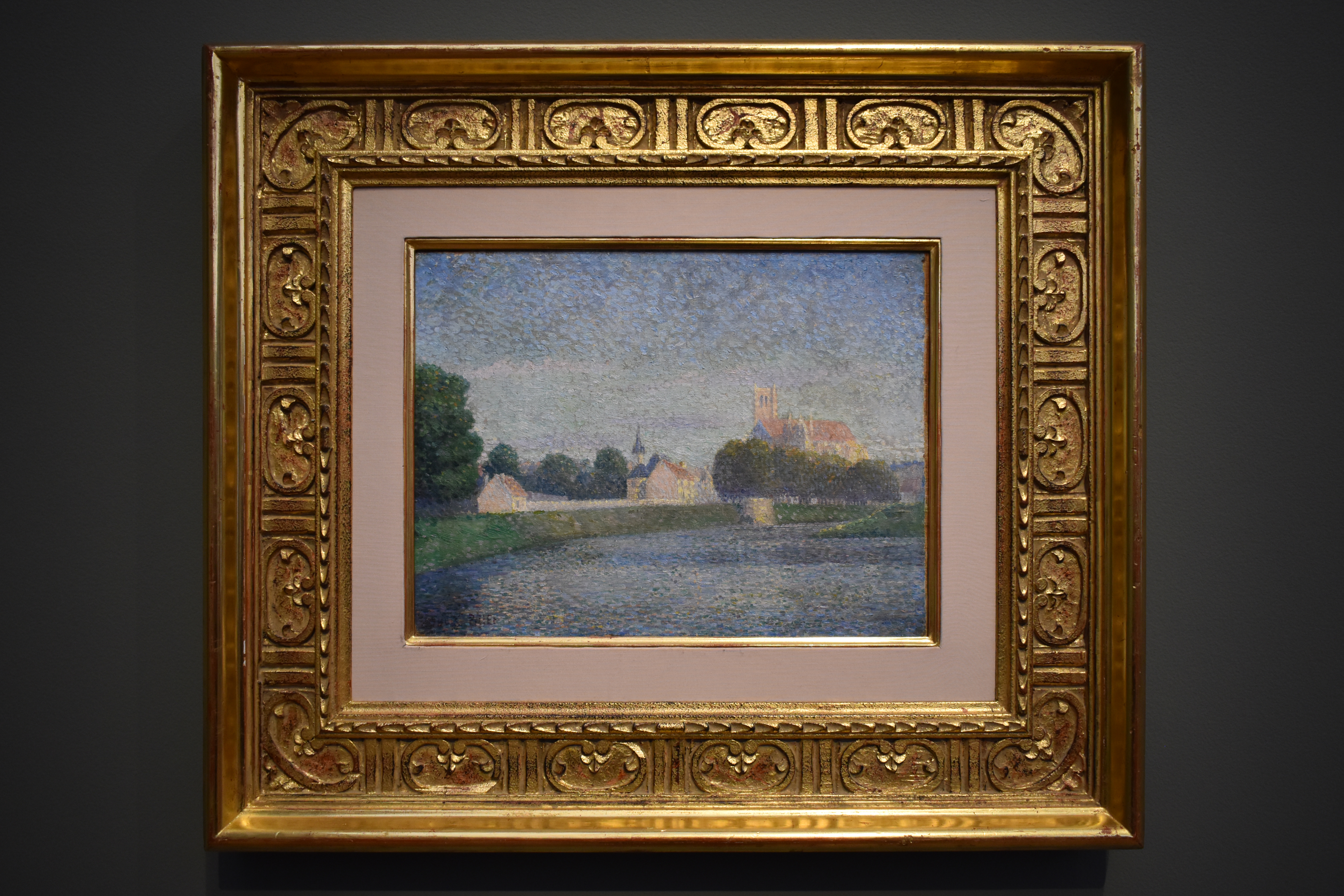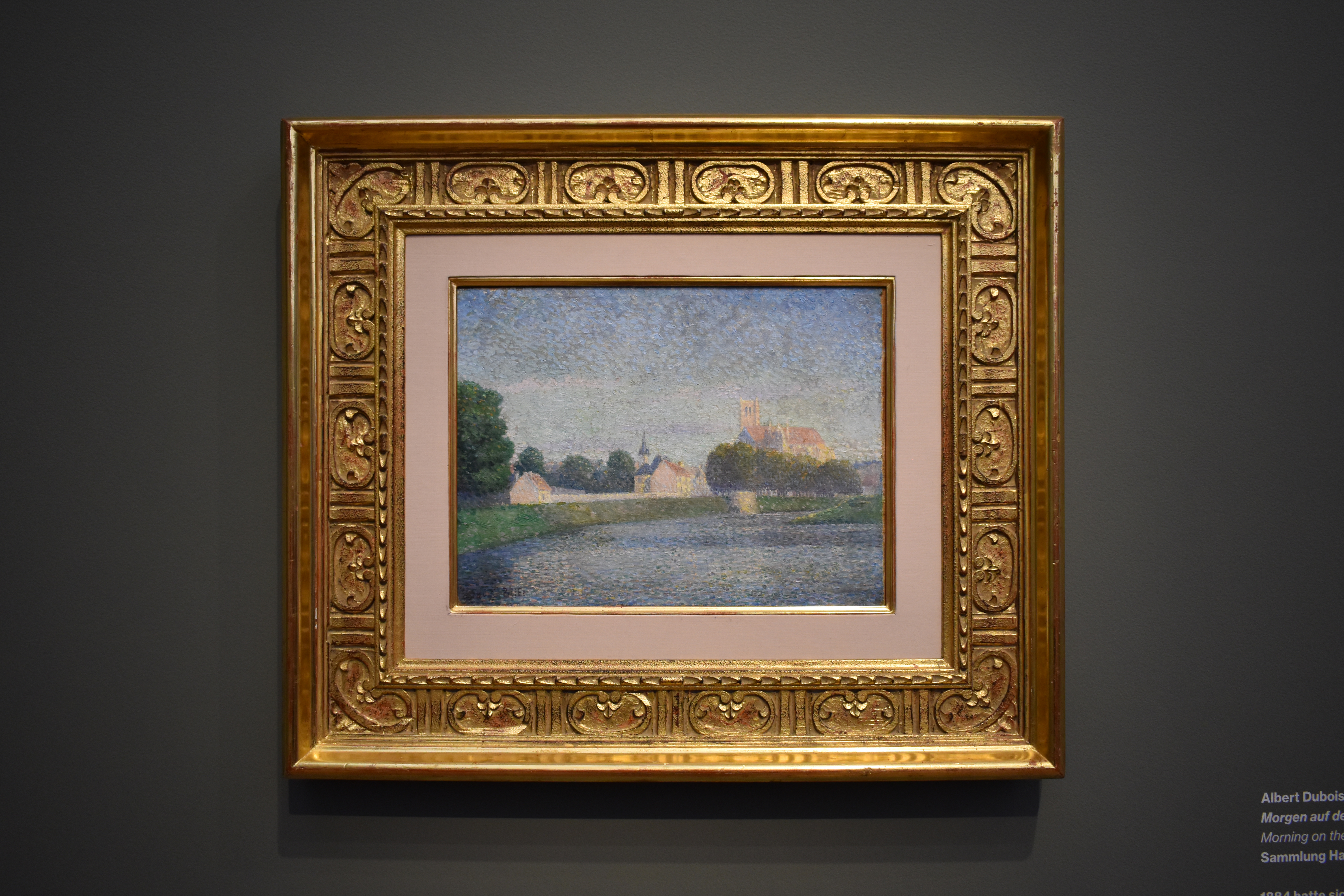 Альберт Дюбуа-Пилле (Albert Dubois-Pillet/1846-1890). Утро на Марне у города Мо. 1886. В 1884 году Альбер Дюбуа-Пилле отличился при основании Общества независимых художников в Париже – прогрессивной группы художников, выступавшей против консервативной эстетики Салона. Здесь он передает атмосферу весеннего утра, используя плотные мазки кисти. Выбор мотива, цветов и композиции соответствует концепции пейзажа импрессионистов, а манера живописи следует за развивающимся стилем пуантилистов.