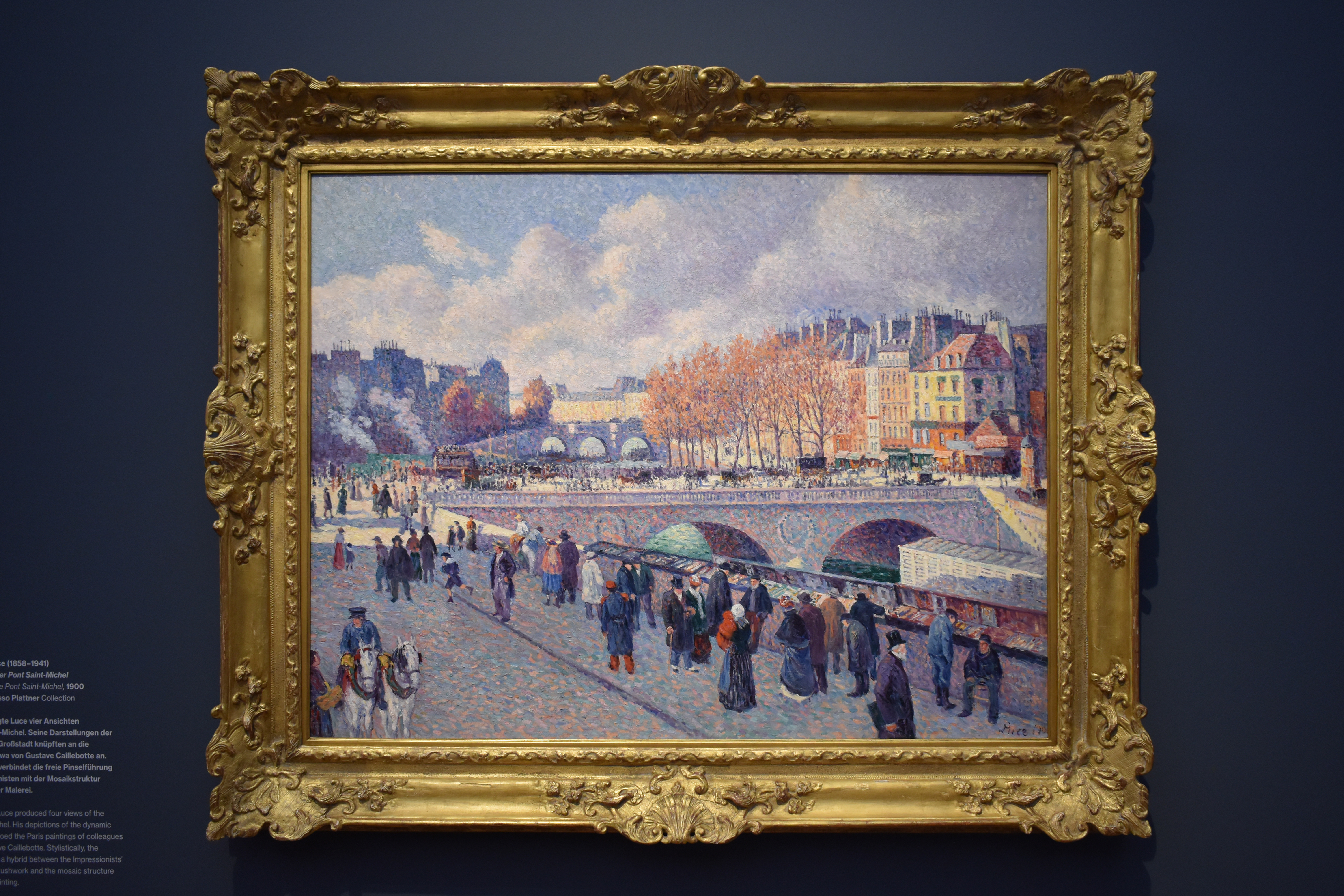 Максимильен Люс (Maximilien Luce). Сена у моста Сен-Мишель. 1900. Около 1900 года Люс создал четыре вида Пон-Сен-Мишеля. Его изображения динамичного мегаполиса перекликаются с парижскими картинами таких коллег, как Гюстав Кайлеботт. Стилистически композиция представляет собой гибрид между свободной бравурной кистью импрессионистов и мозаичной структурой пуантилистской живописи.