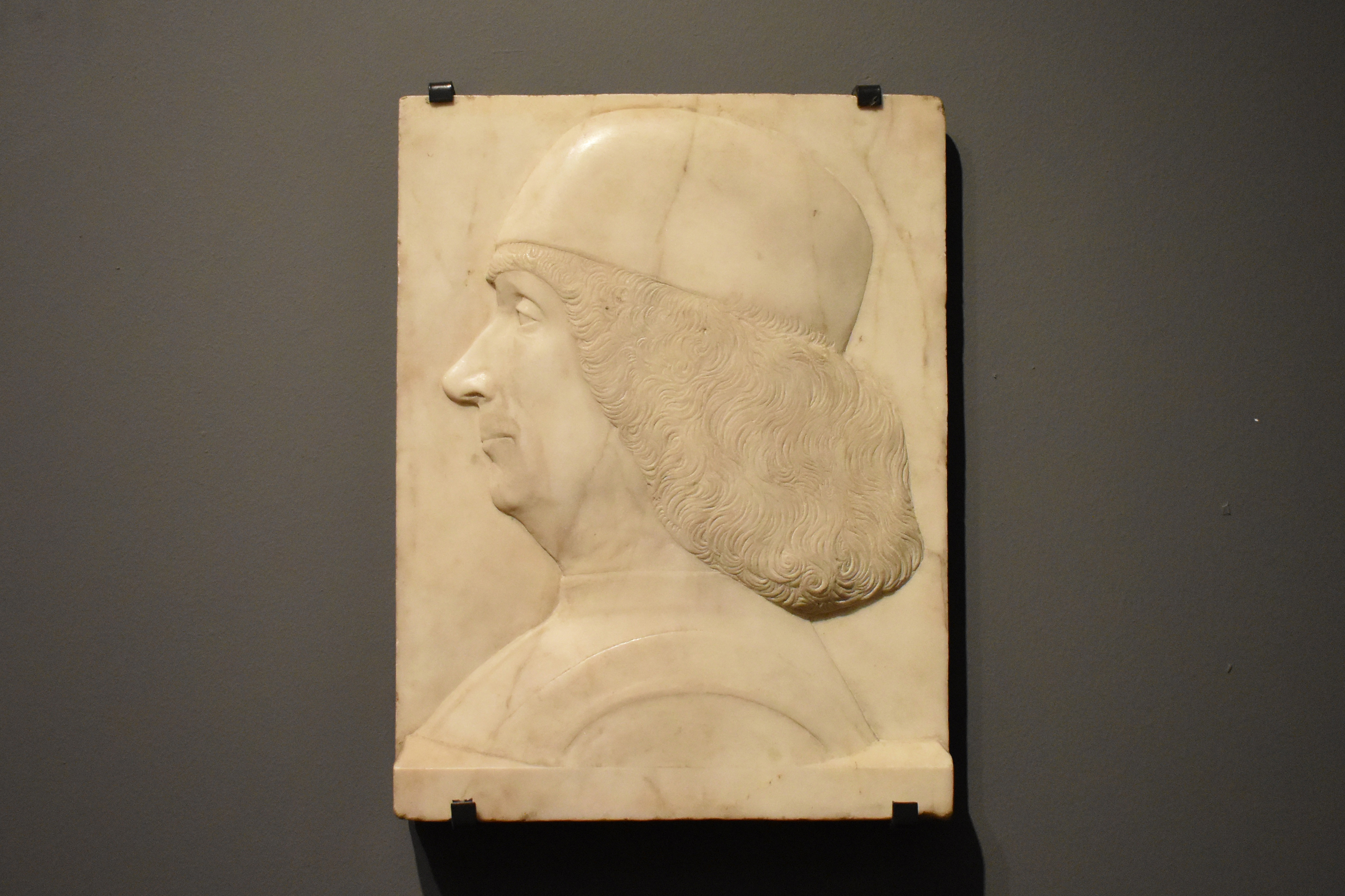 Используя несколько резко очерченных плоскостей без фона, скульптор эффективно воспроизвел резкий профиль этого пожилого человека. Натурщик – венецианский художник Джентиле Беллини. Даже точно описанные пряди волос кажутся лежащими на одной плоскости. Скульптор использовал один из собственных эскизов Беллини.