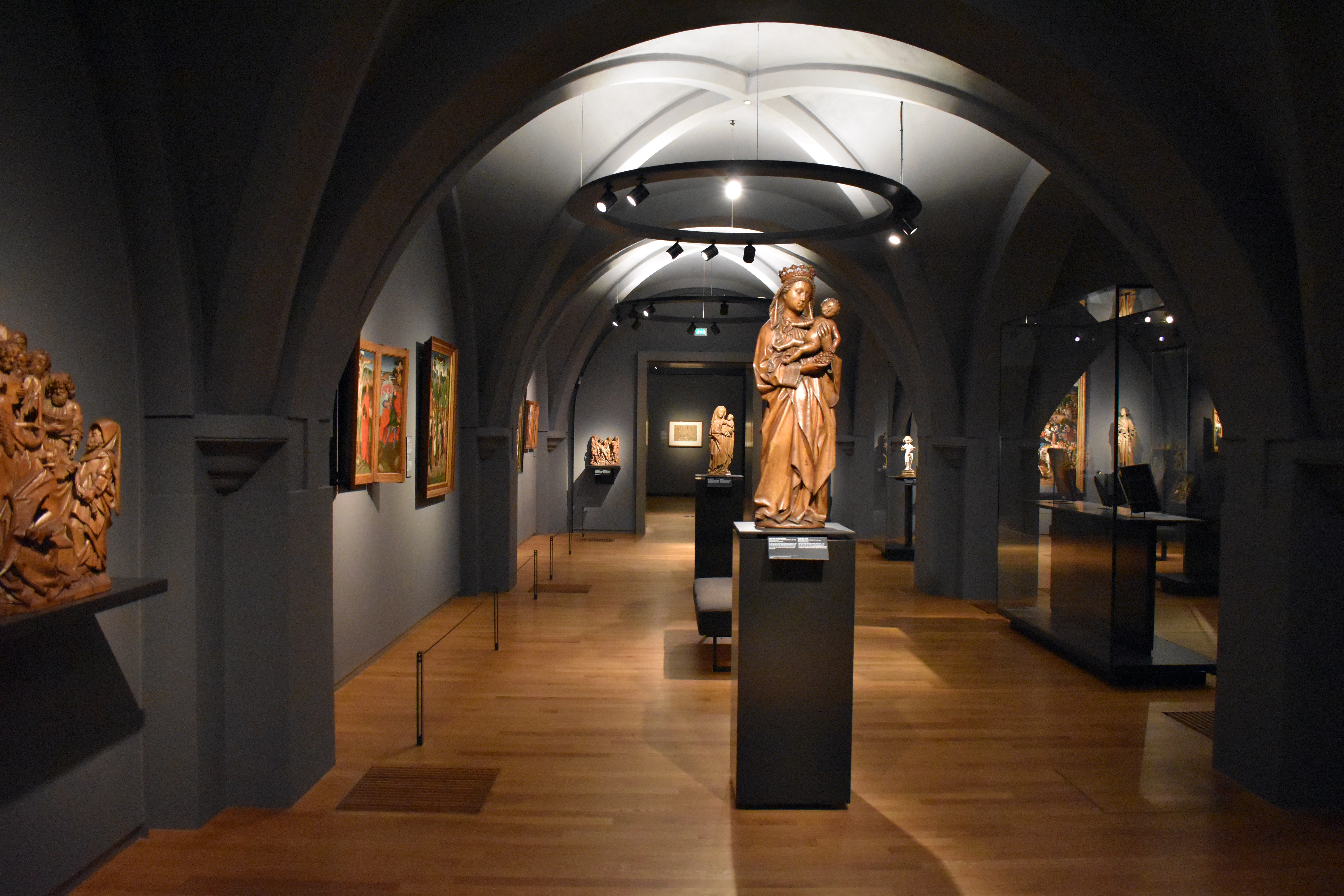 В начале XVI века неизвестный мастер вырезал из древесины дуба фигуру Христофора, несущего на своих плечах мальчика. Легенда гласит, что великан Кристофер перенёс Младенца Христа через реку, но вес стал для него почти непосильным: это произошло потому, что ребенок нёс все грехи мира. В средние века Кристофер был покровителем путешественников, поэтому колоссальные статуи Христофора часто стояли у дверей церквей. В стеклянном шкафу справа установлен реликварий, украшенный Христом, святыми и ангелами, изготовленный неизвестным мастером в начале XIII века. Под ним реликварий-бюст из позолоченного серебра и эмали, изображающий святую Феклу. Волосы разделены на две косы сзади. Вокруг шеи по краю халата колье с красной эмалью, а спереди – герб. Карие глаза с эмалью на фоне прозрачного серебряного глазного яблока. Рядом стоит сделанная в виде голубя гостия – от латинского "hostia", что означает "жертва". Гостию наполняли плоскими круглыми ломтиками пресного пшеничного хлеба и подвешивали на цепи как символ Святого Духа.