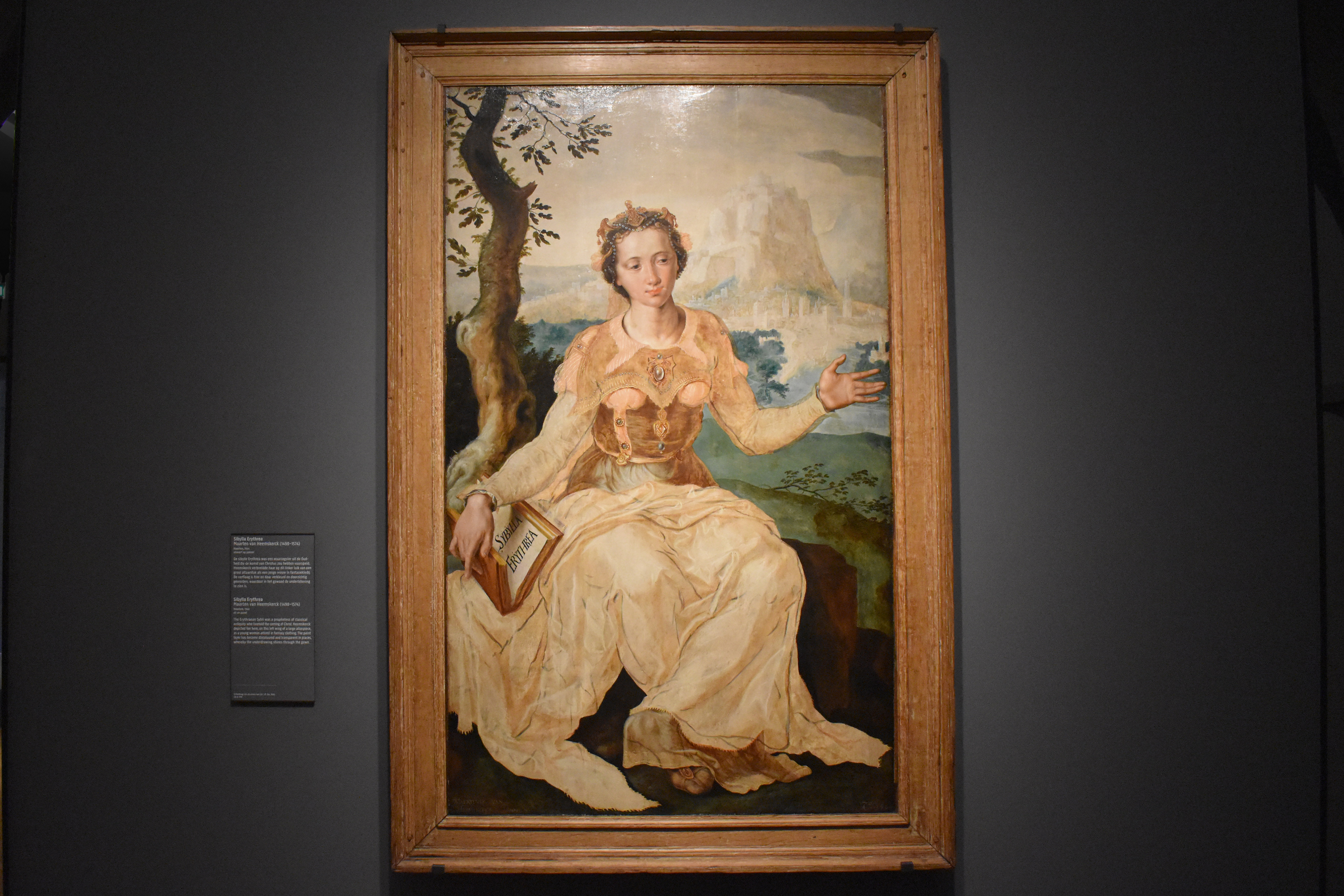 Эритрейская Сибилла была пророчицей классической древности, предсказавшей пришествие Христа. Хеемскерк изобразил ее здесь, в этом левом крыле большого алтаря, молодой женщиной в фантастической одежде. Слой краски стал бесцветным и местами стал прозрачным, в результате чего рисунок просвечивает сквозь платье.