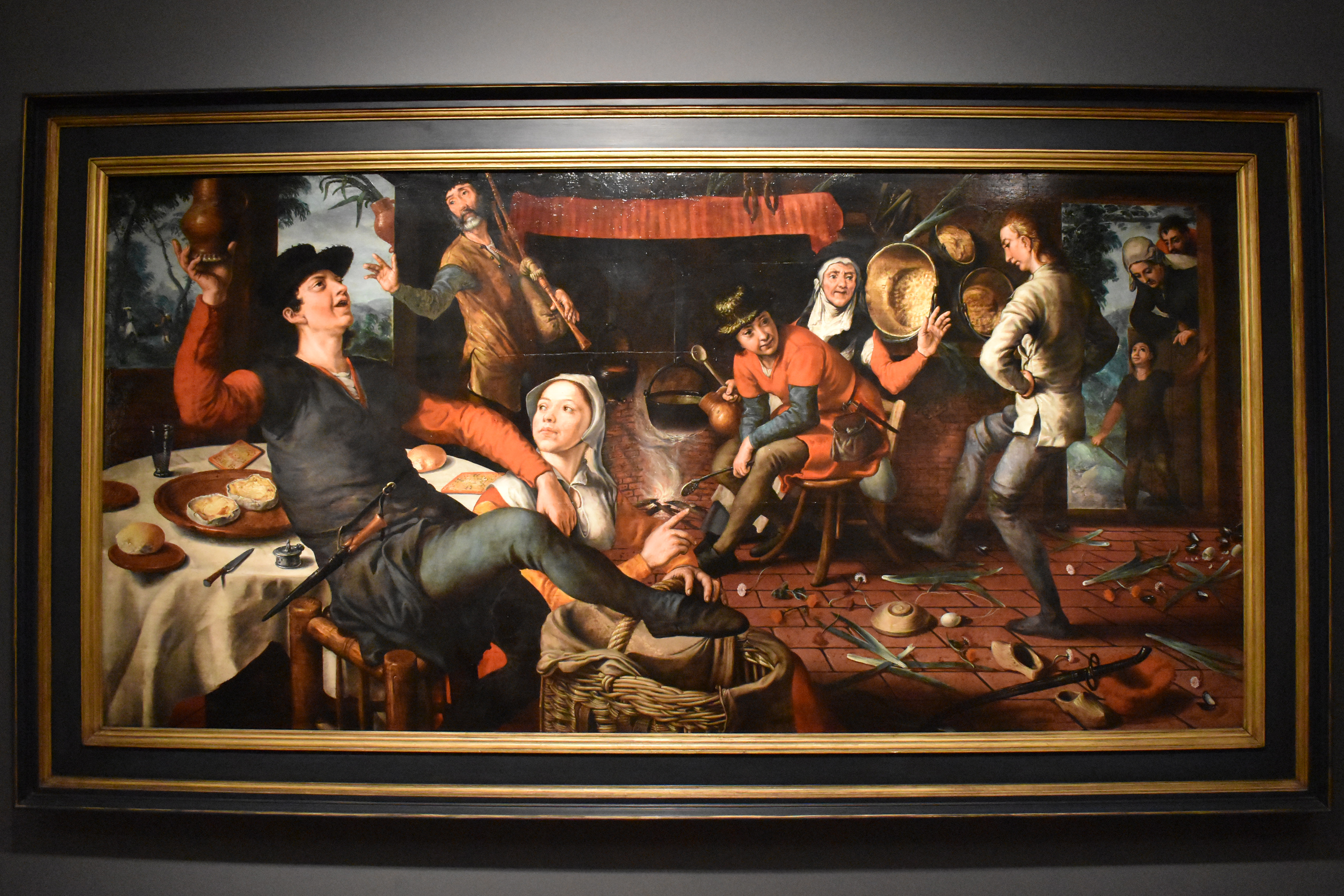 Публика XVII века пришла бы в восторг от этого забавного зрелища. В то же время зрители знали бы о его скрытом послании: жизнь на земле – это нечто большее, чем еда, питье и веселье. Характерной особенностью является прикованная обезьяна: она символизирует грешного человека, который позволяет сковывать себя своими низменными инстинктами.