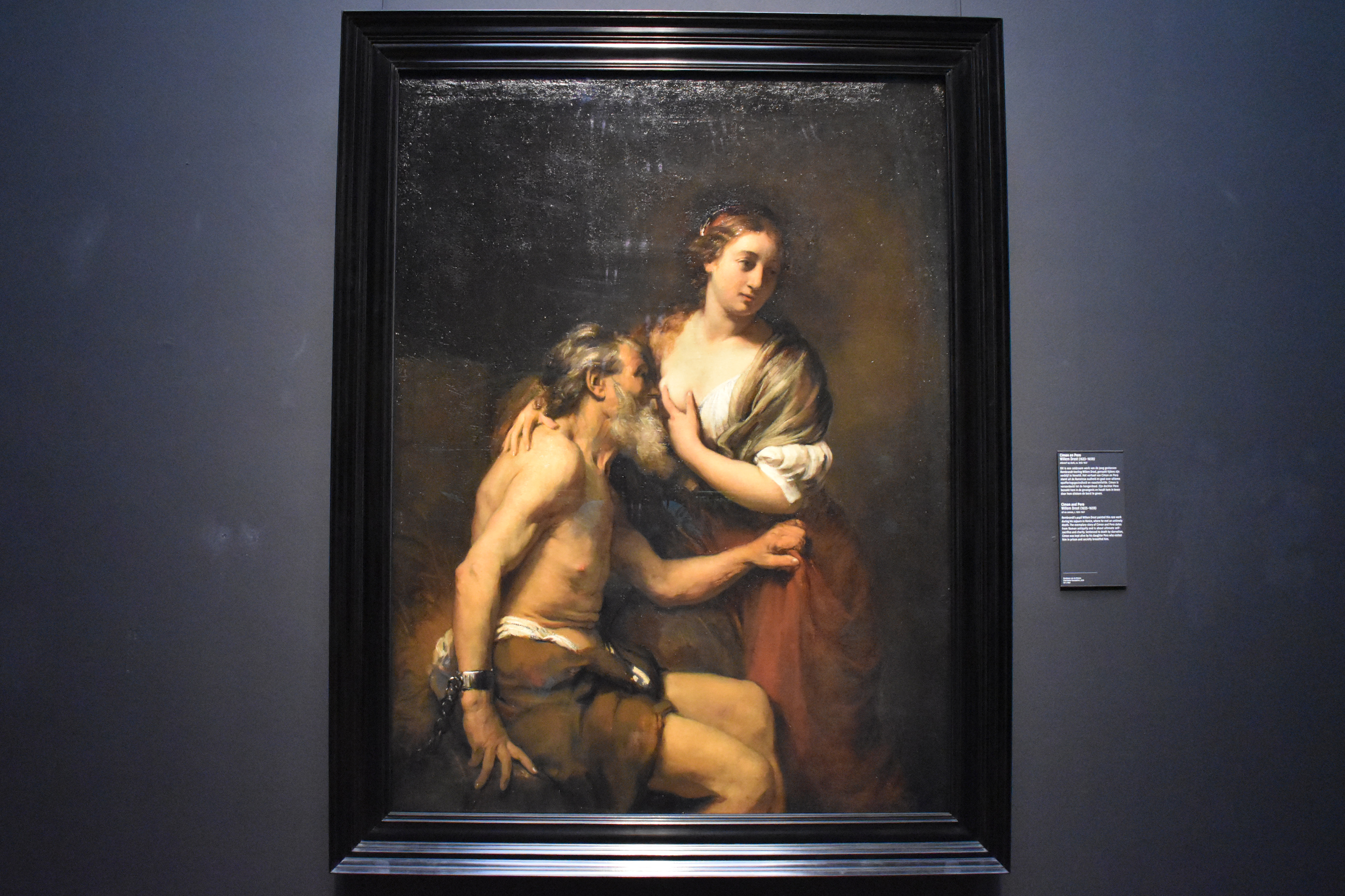 Бог решил разрушить грешный город Содом, пощадив только праведного Лота и его семью. Поскольку дочери Лота боялись остаться бездетными – все мужчины погибли – они напоили отца и соблазнили его. Гольциус создает разительный контраст между загорелой кожей пожилого Лота и гладкой кожей двух его дочерей.