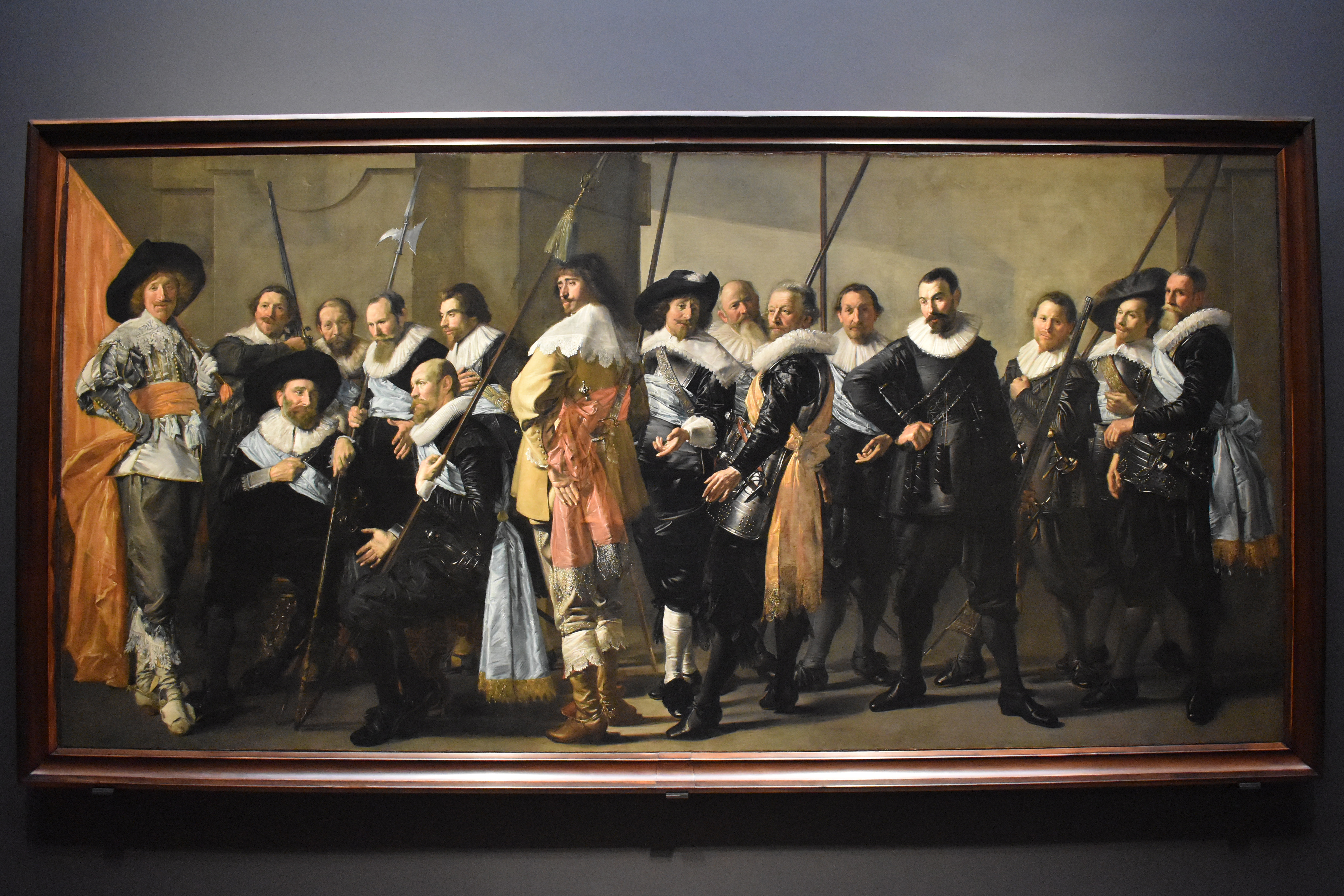 18 июня 1648 года: банкет в гильдии арбалетчиков Амстердама. Поводом стало подписание Мюнстерского мирного договора, положившего конец войне с Испанией. Капитаны роты гражданской гвардии пожимают друг другу руки в знак мира и разносят рожки для питья. Поэма на барабане провозглашает радость вооруженных ополченцев Амстердама тем, что отныне их оружие может быть похоронено.