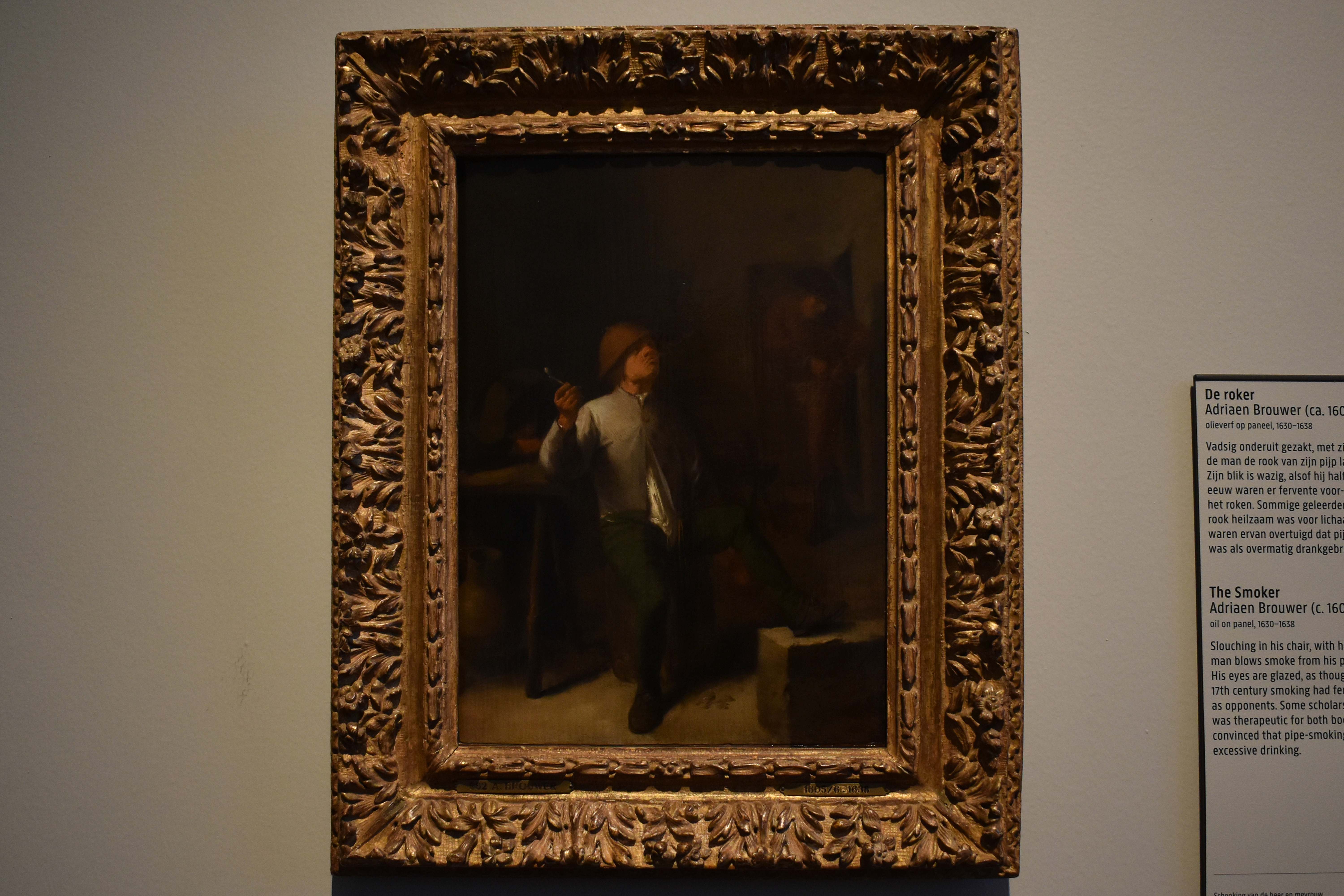Ссутулившись в кресле, с расстегнутыми штанами, мужчина выпускает дым из трубки через нос. Его глаза остекленели, как будто он в ступоре. В XVII веке у курения были как горячие сторонники, так и противники. Некоторые ученые считали, что табачный дым оказывает лечебное действие как на тело, так и на дух; другие были убеждены, что курение трубки так же вредно, как и чрезмерное употребление алкоголя.