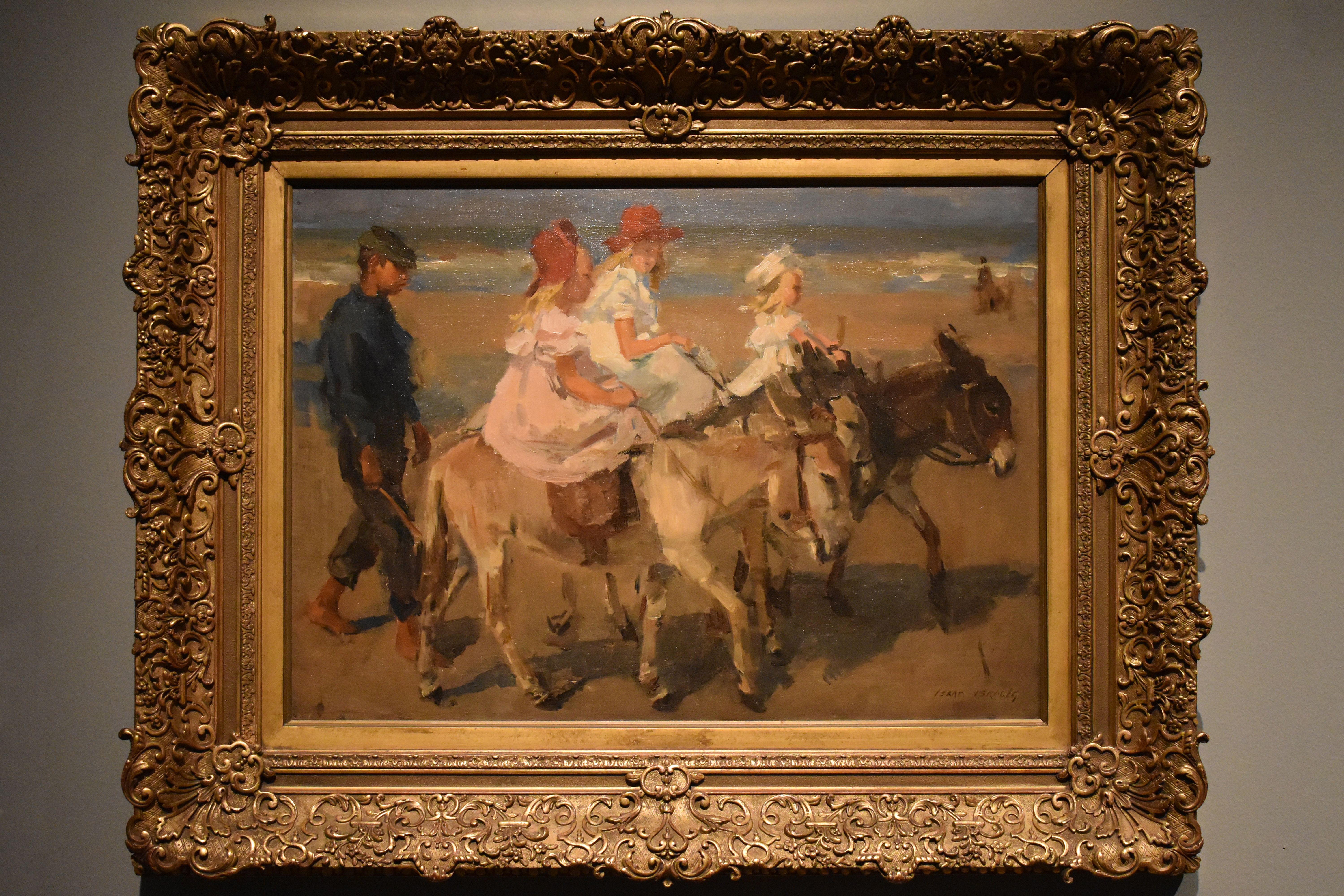 В отличие от художников Гаагской школы, Исаак Исраэлс изобразил беззаботный туристический аспект морского курорта Схевенинген. Он часто использовал модели для этих сцен – в данном случае его знакомые Сьюз Понт, Агата Поу и ее младшая сестра. Иcраэлc работал быстро: "Никогда не работайте слишком много, не более двух часов подряд, не суетитесь слишком долго, иначе вы потеряете свежесть".