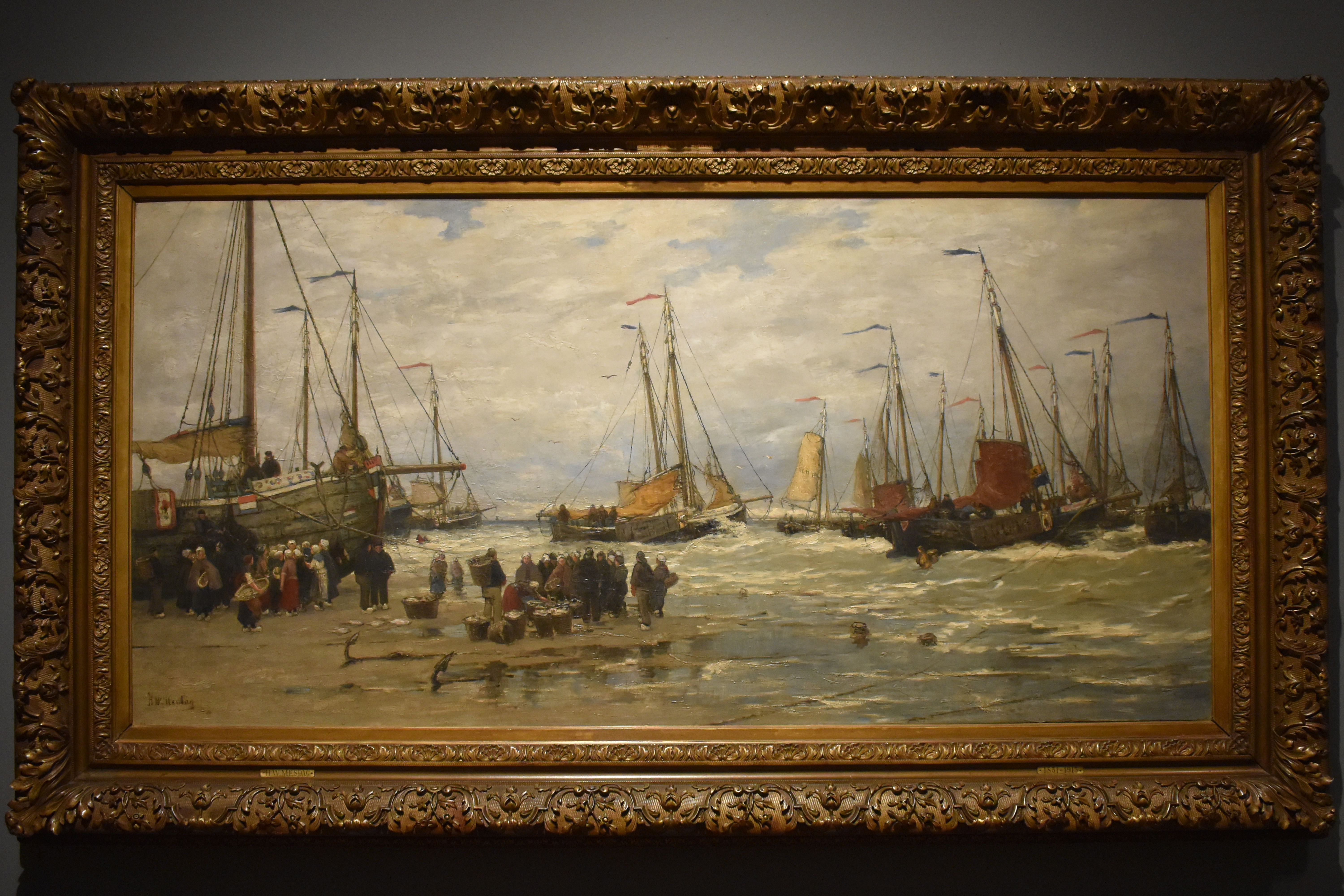 Художников Гаагской школы привлекала суровая жизнь бедных рыбаков, вроде тех, что жили в соседнем Схевенингене. Однако здесь Антон Мауве (Anton Mauve) изобразил другую сторону этой рыбацкой деревушки: солнечный мир зажиточной буржуазии. Три всадника спускаются на пляж, где для купания готовы купальные кабинки. Светло-голубая цветовая гамма эффективно передает солёную атмосферу летнего дня на берегу моря.