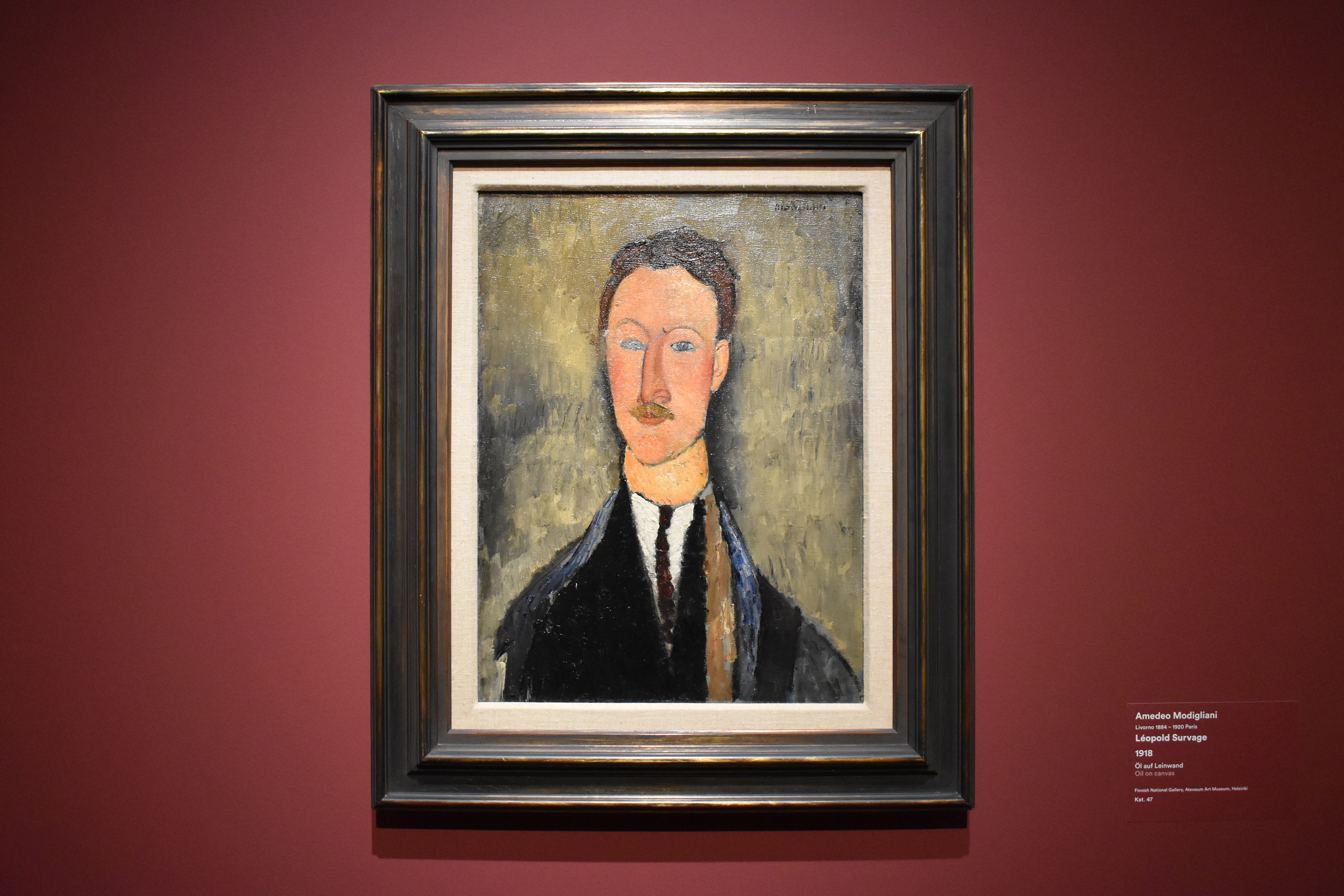 Портрет художника Леопольда Сюрважа относится к самому творческому периоду Амедео Модильяни во время его пребывания в Ницце в 1918 году. Натурщик Леопольд Сюрваж (1879-1968) посещал художественную школу в Москве и переехал в Париж около 1908 года. Он познакомился с Модильяни в кафе "Ротонда" в 1911 году. Фамилия Сюрважа первоначально была Штурцваге. Его дед переехал в Москву из Лаппеенранты в 1842 году, но семья сохранила связь с Финляндией. Модильяни был вынужден попросить Сюрважа вернуть портрет, поскольку он должен был отправлять четыре картины в месяц своему арт-дилеру Леопольду Зборовскому, а у него на тот момент не было достаточно картин для отправки. Портрет попал в Атенеум в результате покупки в Швейцарии в 1955 году.