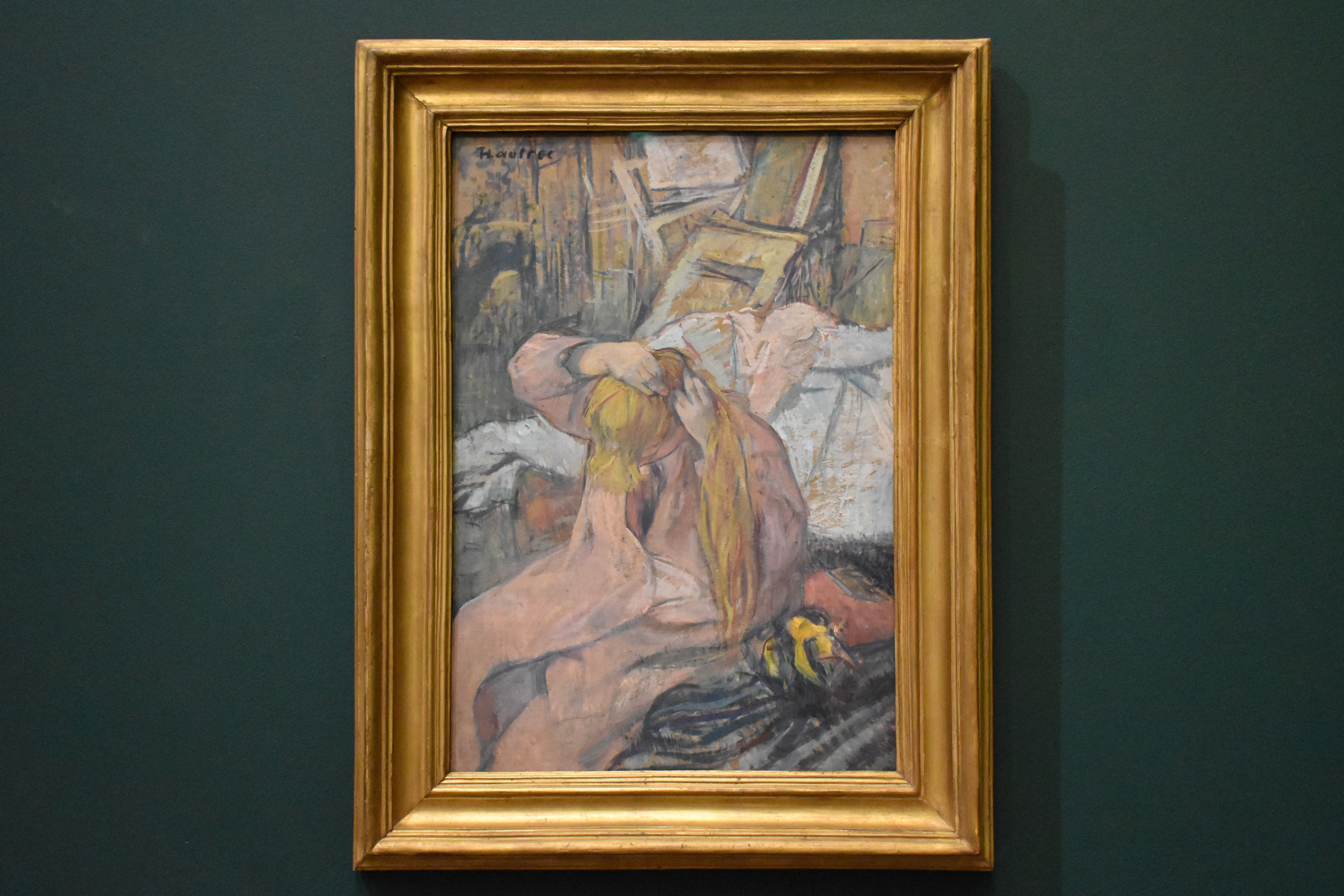 Начиная с 1886 года, Лотрек часто изображал женщин, "пишущих письма, расчесывающих волосы, наносящих макияж или просто сидящих без всякого выражения в ожидании чего-то". Однако следует помнить, что эти композиции не всегда основывались на спонтанной сцене, а были искусственно созданы Лотреком в его студии. Лотрек не делал простых композиций и нейтральных портретов, он работал в двух направлениях: экспериментировал с новинками момента и исследовал соцреализм и искусственность студийных композиций. На этом этапе Лотрек проявляет интерес к самому процессу художественного исполнения, что оправдывает его тенденцию с тех пор оставлять незавершенные работы и пустые участки. Следует помнить, что датировка и подпись часто происходили в тот момент, когда Лотрек дарил картину кому-то, а не во время ее исполнения. На картине "Расчесывание волос" ("Celle qui se peigne") 1891 года рыжеволосая девушка расчесывает волосы перед зеркалом, а теперь, подняв обе руки, завивает волосы, в момент, предшествующий укладке волос. В ночной рубашке рисунок более точный, с легкой штриховкой, проработанной в ткани. Контрастом по сравнению с другими работами является фон, на этот раз выполненный обилием белых мазков; по-прежнему без декора, без перспективы глубины, в центре внимания – интимные действия этой анонимной героини. Однако в этой работе присутствует контекст декорации: женщина сидит, а ракурс выше, как будто Лотрек стоит и наблюдает за ней. Можно легко определить окружающие её предметы, такие как простыни, мебель и картины, которые, кажется, изображены в одном и том же месте, что, учитывая год и контекст, позволяет считать, что это этюды одной и той же модели.