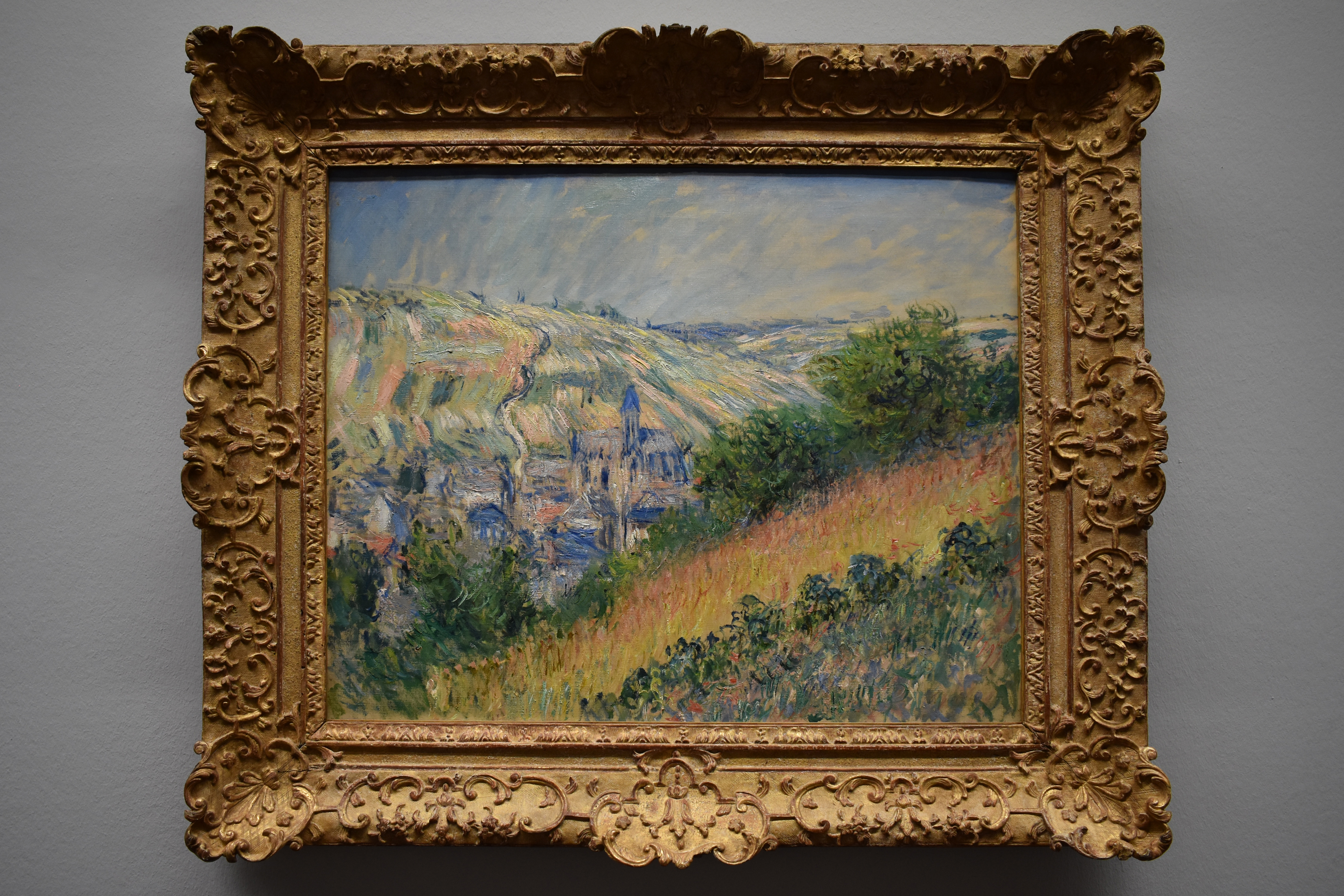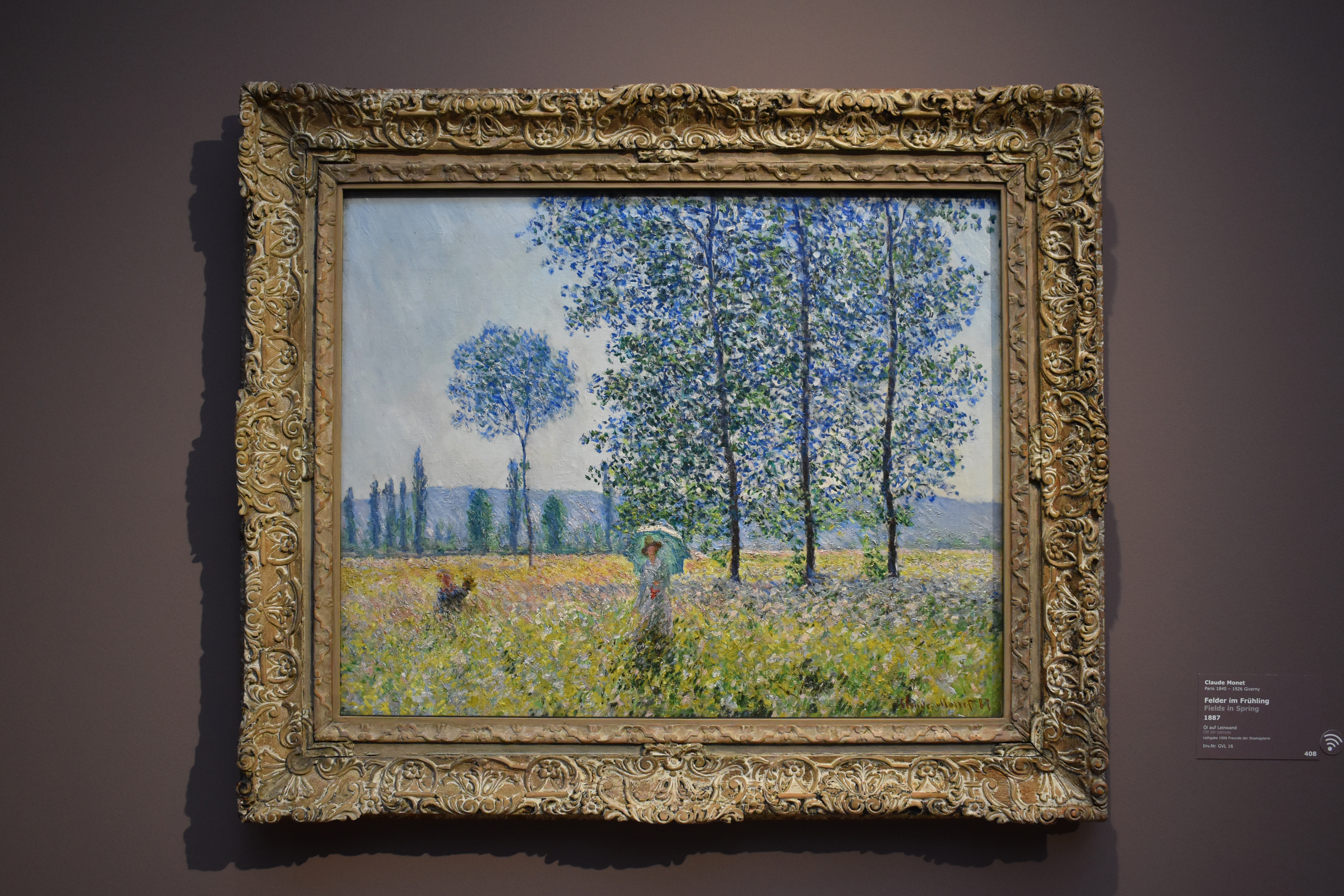 После того как в 1878 году Клод Моне переехал в небольшую деревушку Ветвей на Сене, расположенную примерно в 65 километрах к северу от Парижа, пышные поля и пастбища стали центром его творчества. На присутствие человека часто можно лишь косвенно намекнуть с помощью таких мотивов, как тропинки или смутно различимые здания вдали. Здесь, например, можно увидеть церковную башню Ветей, светящуюся белым светом за рядом деревьев.