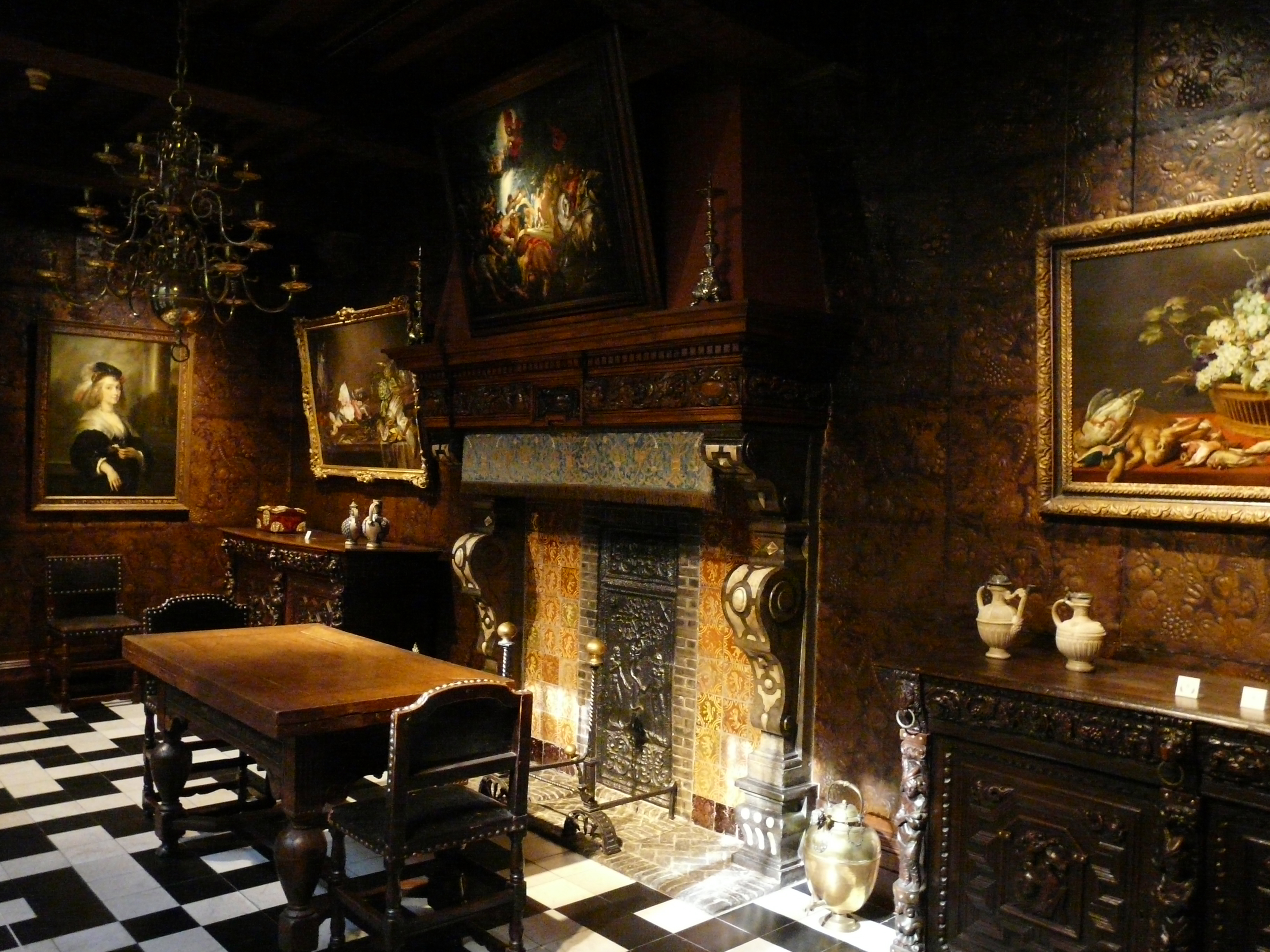 Античную коллекцию скульптуры он хранил в "ротонде". Как отмечал Беллори, Рубенс "у себя дома в Антверпене... построил круглую залу с единственным окном наверху, наподобие римской Ротонды, чтобы добиться совершенно ровного освещения; там он разместил свое собрание художественных произведений и всяческих чужеземных редкостей". В кабинете находится вырезанная из слоновой кости Йоргом Петелем по рисунку самого Рубенса в 1627 году скульптурная группа "Адам и Ева". На столе можно видеть альбом гравюр с фасадами и планами генуэзских дворцов и церквей, который был составлен Рубенсом и издан в Антверпене в 1622 году.