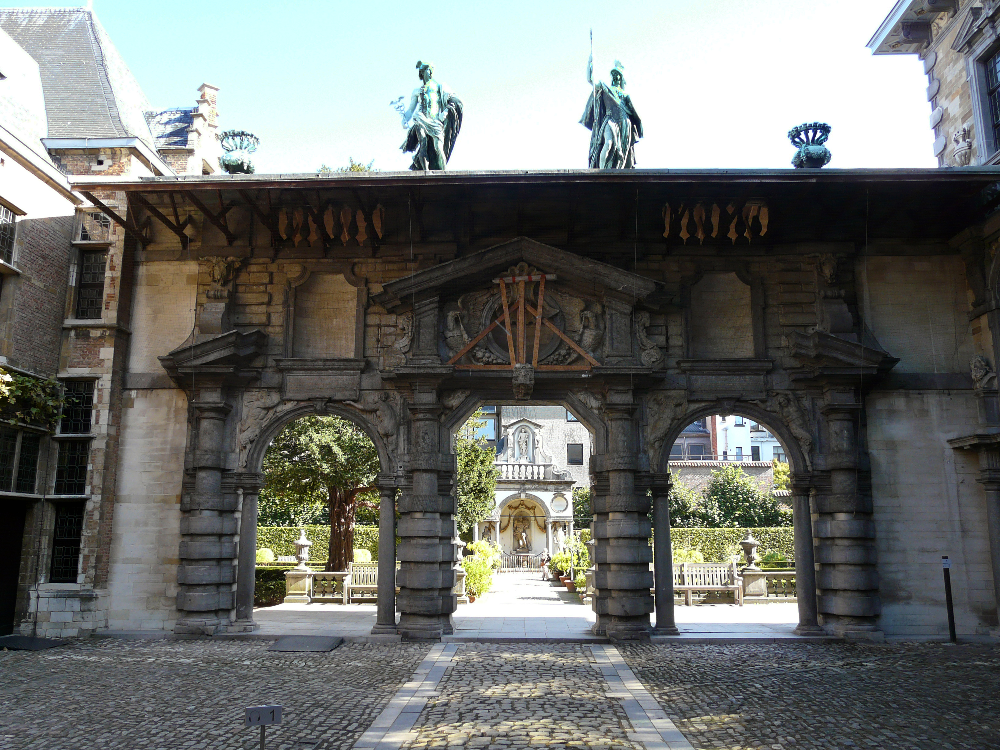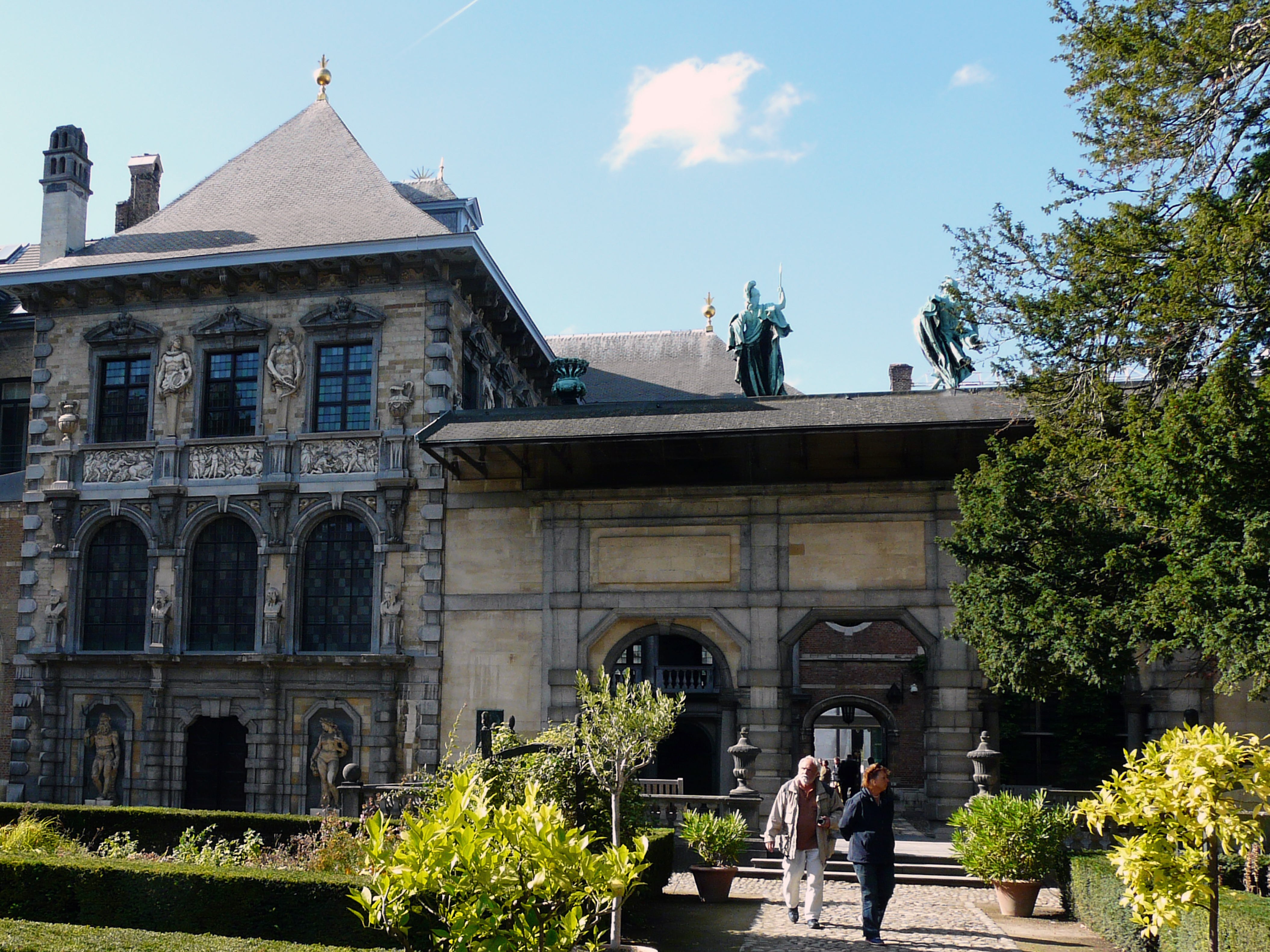В мастерской же им были созданы самые знаменитые полотна. Сюда приходили работать и учиться многие талантливые живописцы Антверпена. Дом Рубенса посетили такие знатные гости, как правительница Нидерландов эрцгерцогиня Изабелла, французская королева Мария Медичи, герцог Бекингем, маршал Спинола и другие. Дом Рубенса был гостеприимно открыт для ученых, художников, писателей. Его хозяин отличался необыкновенной любезностью и поражал всех широкой эрудицией. Внутренний дворик на удивление тих и спокоен. Летом в нём можно укрыться от солнца в тени, зимой от ветра и уличного шума. Двор замыкает с четвертой стороны портик с тремя арочными пролетами. Если дом с жилыми помещениями внешне выглядит скромно и выстроен в старофламандском духе, то мастерская, портик и павильон в саду выдержаны в стиле барокко и богато декорированы скульптурой.