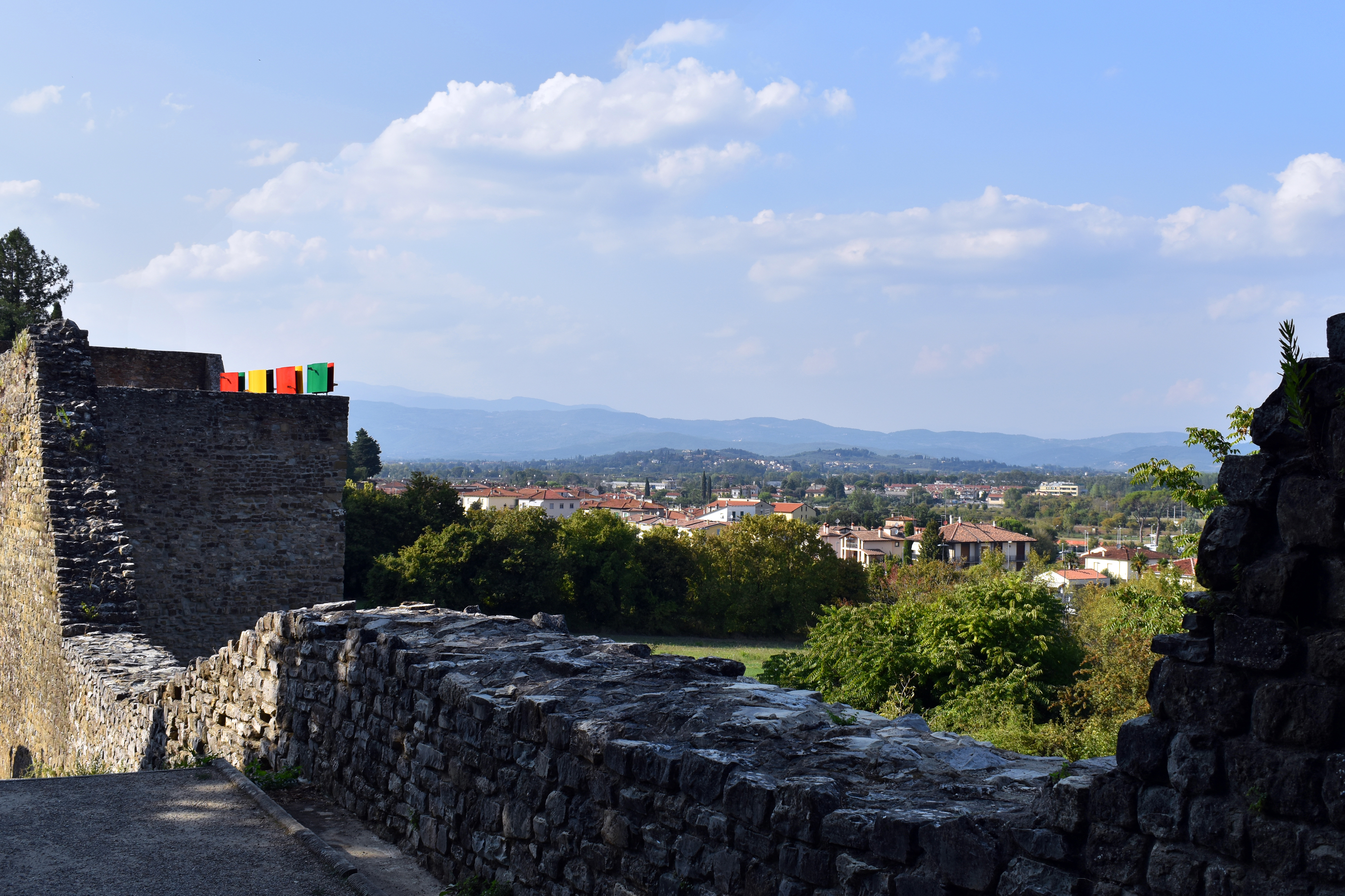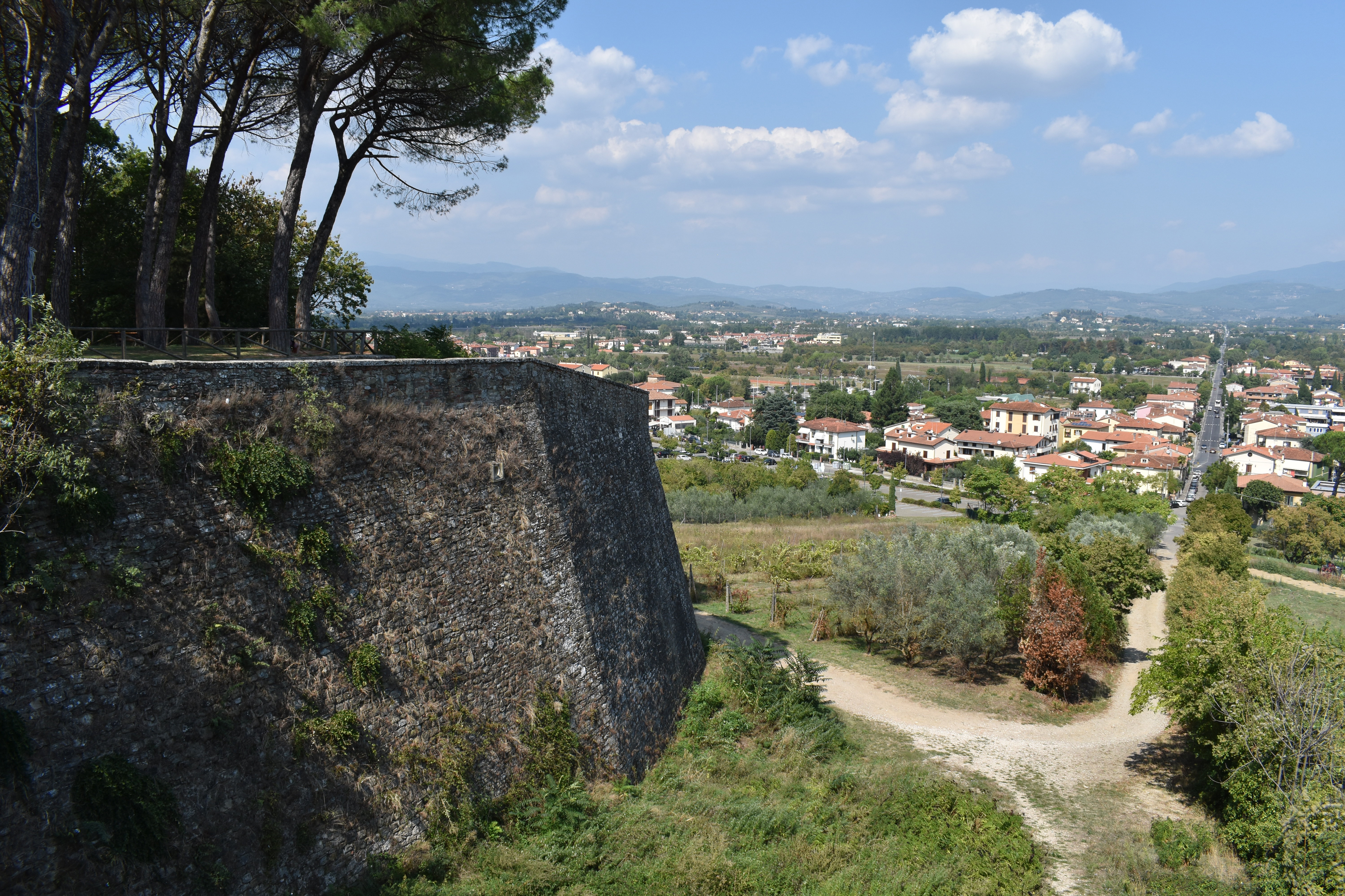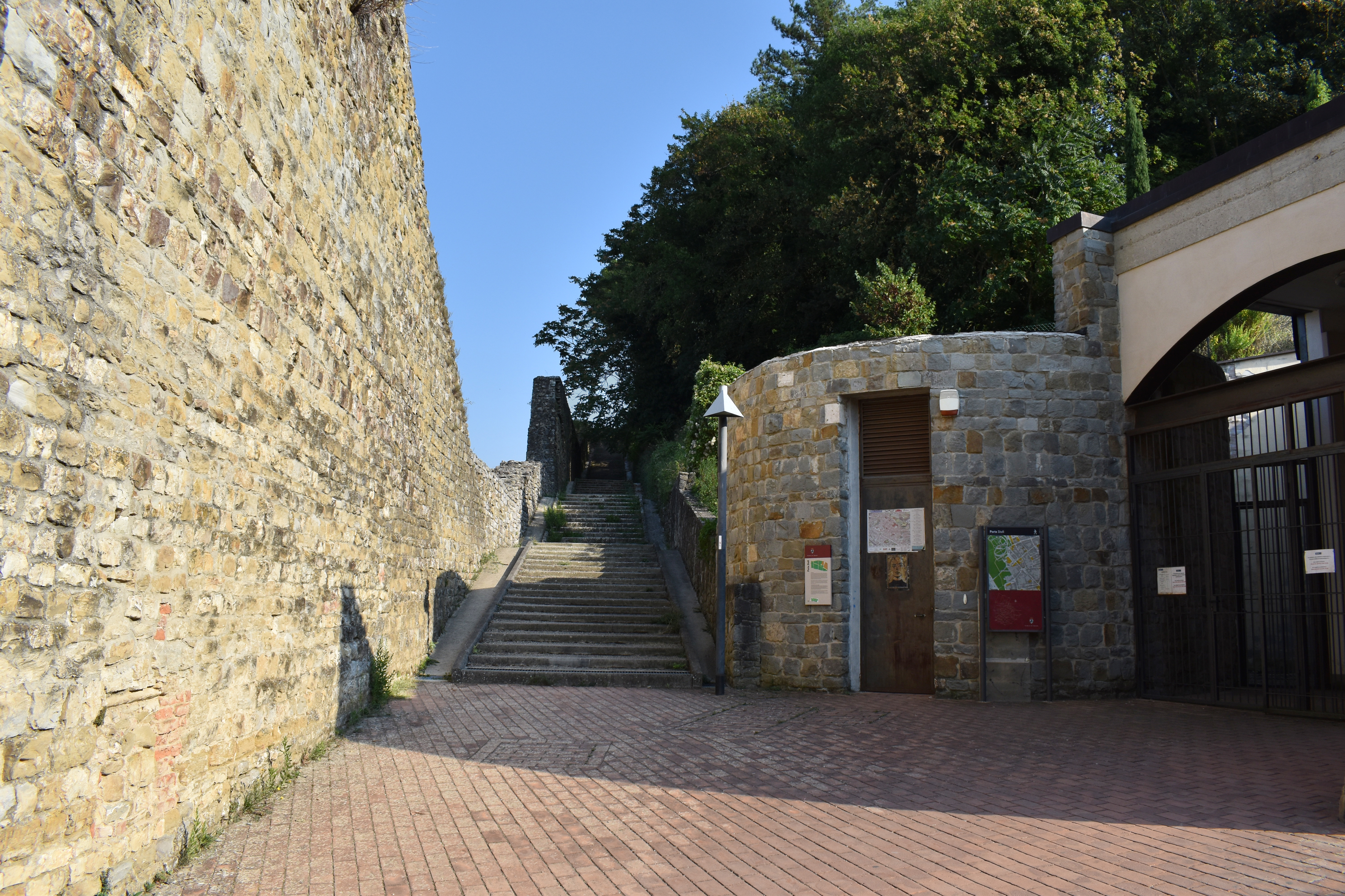 Для тех, кто оставляет машину на эскалаторной автостоянке Pietri, альтернативный и приятный способ добраться до Прато и крепости Медичи – это свернуть налево по лестнице сразу за крепостными воротами Porta Stufi. Маршрут пролегает вдоль внутренних стен города шестнадцатого века и временами открывает прекрасные панорамные виды на север. Примерно через 200 метров тропа ведет к Прато, откуда открывается вид на окрестности.