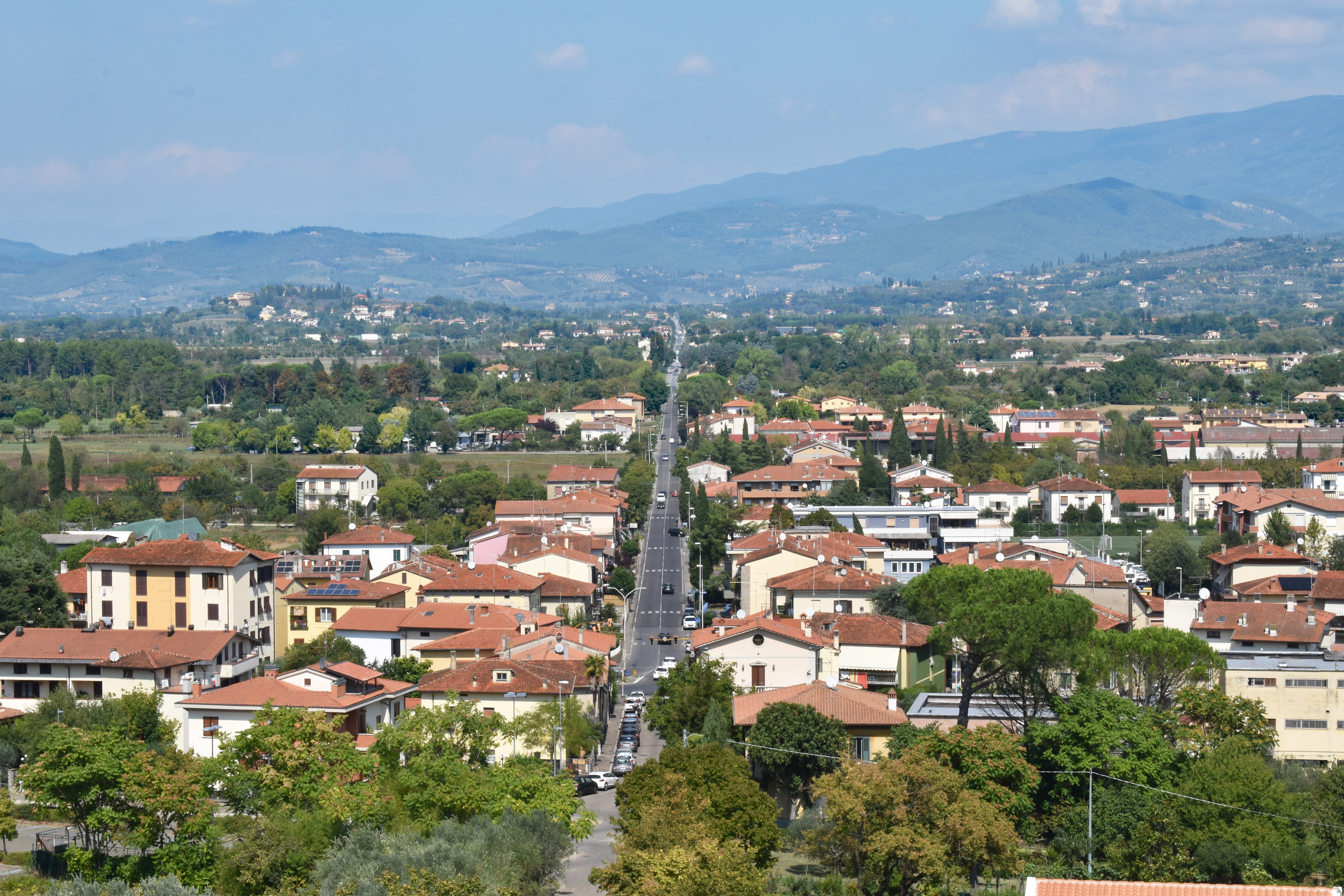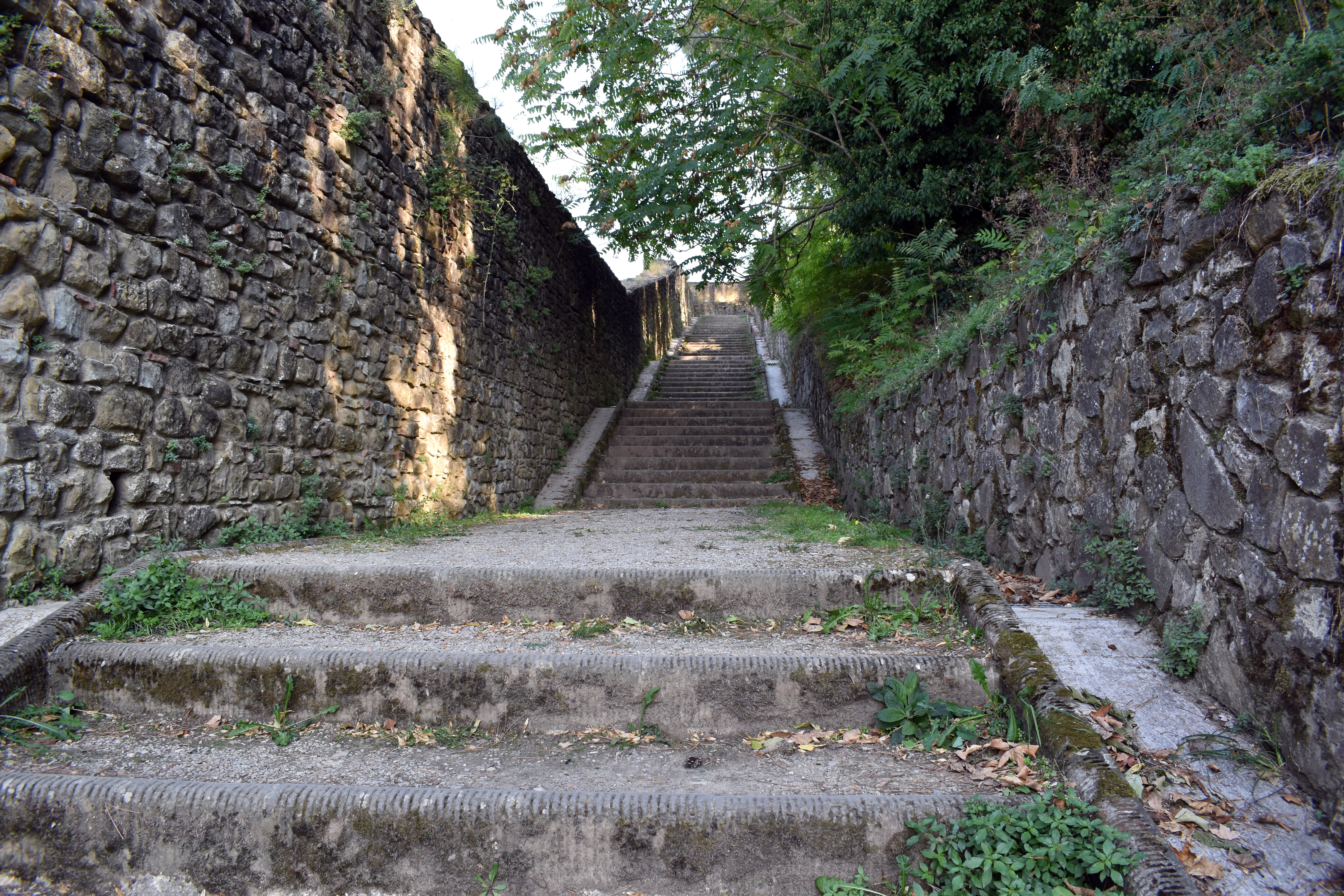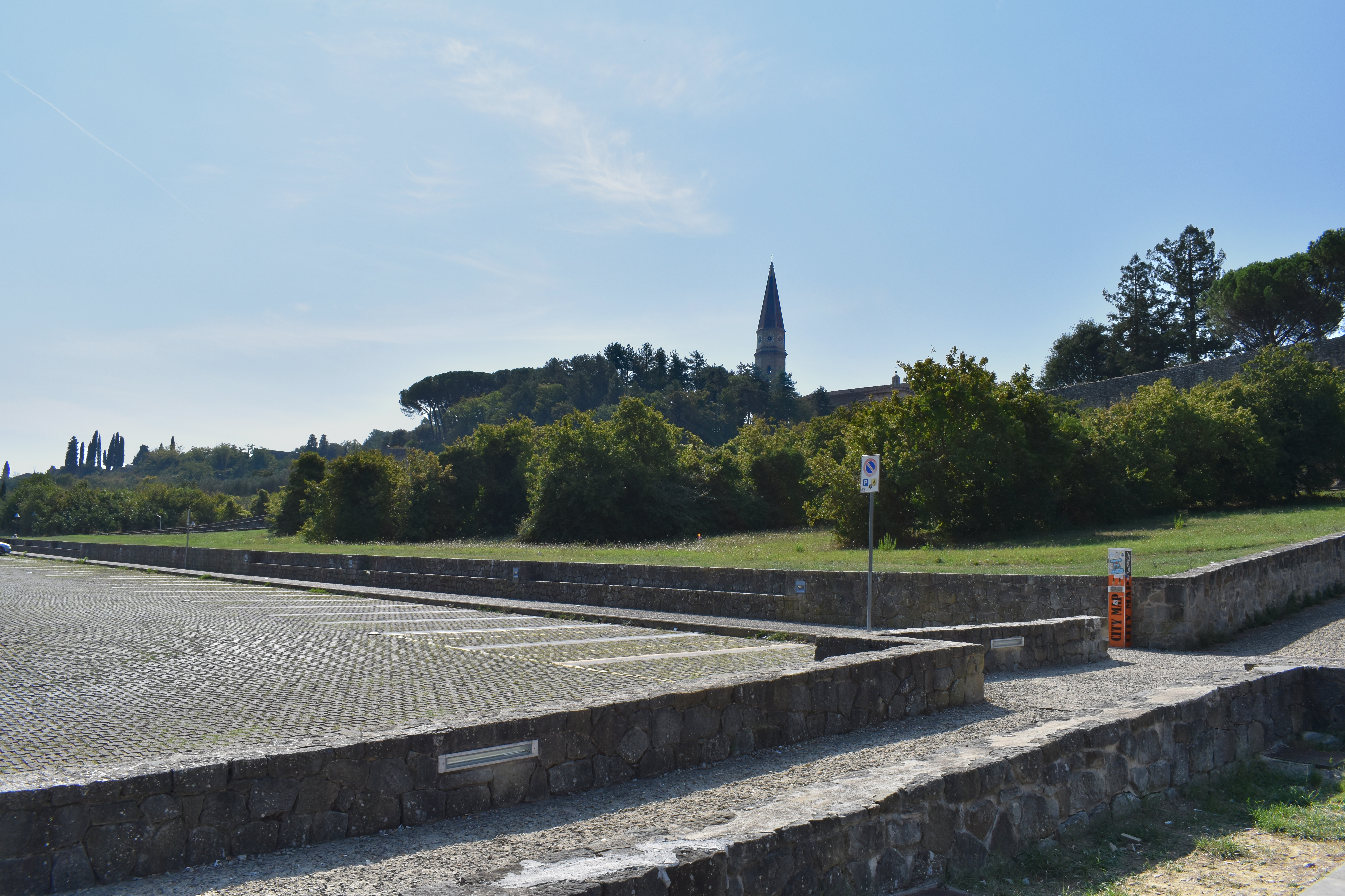 Для тех, кто оставляет машину на эскалаторной автостоянке Pietri, альтернативный и приятный способ добраться до Прато и крепости Медичи – это свернуть налево по лестнице сразу за крепостными воротами Porta Stufi. Маршрут пролегает вдоль внутренних стен города шестнадцатого века и временами открывает прекрасные панорамные виды на север. Примерно через 200 метров тропа ведет к Прато, откуда открывается вид на окрестности.