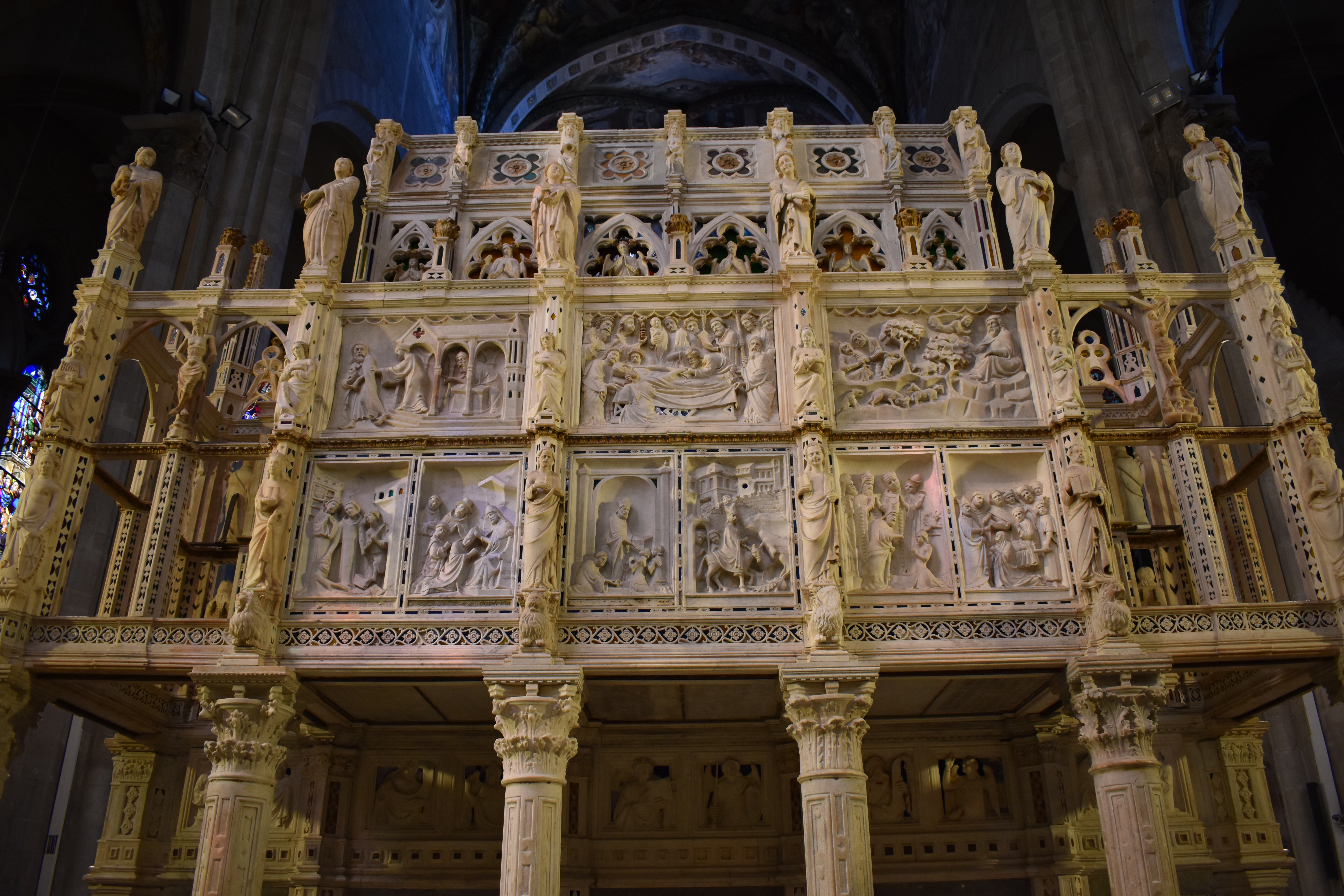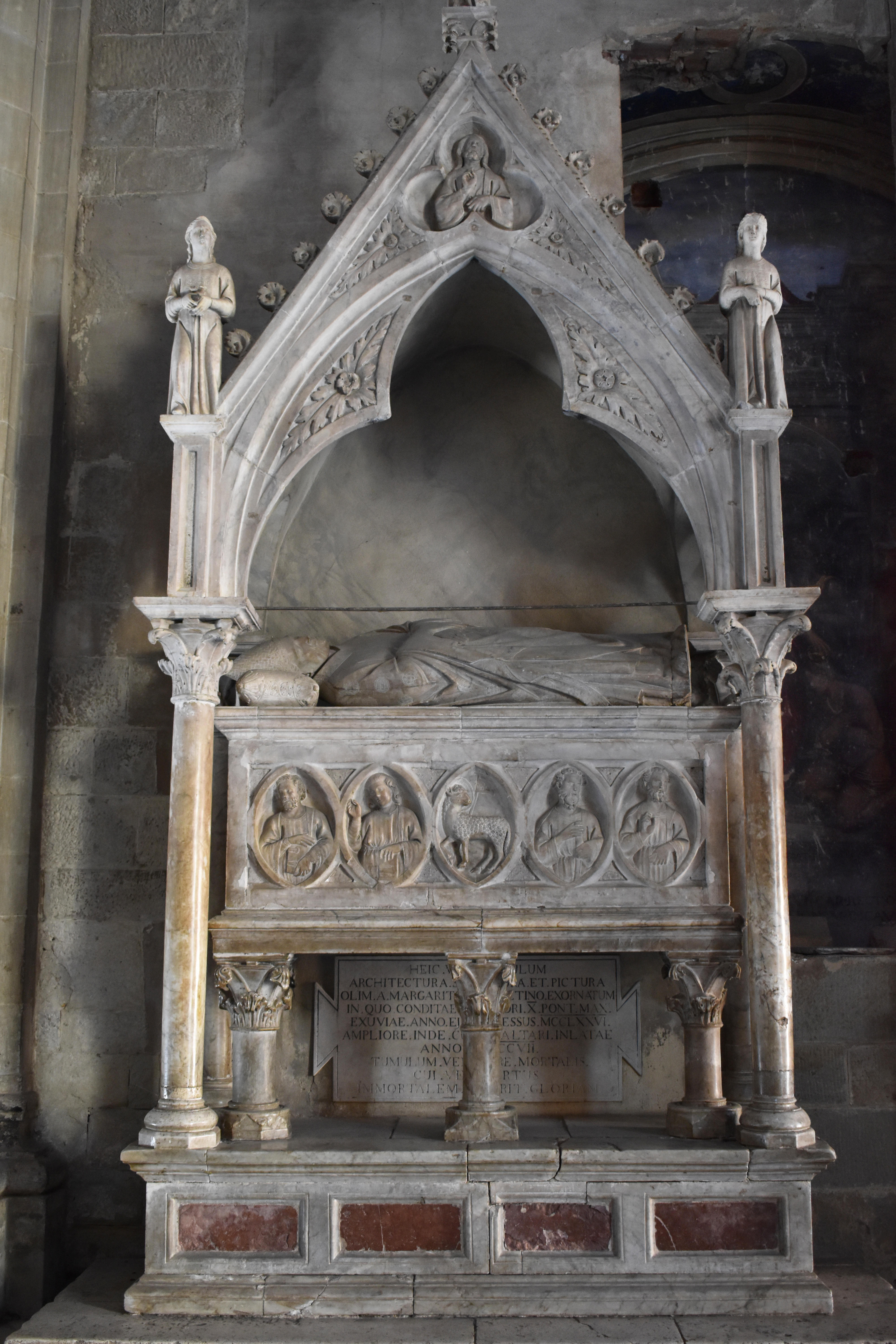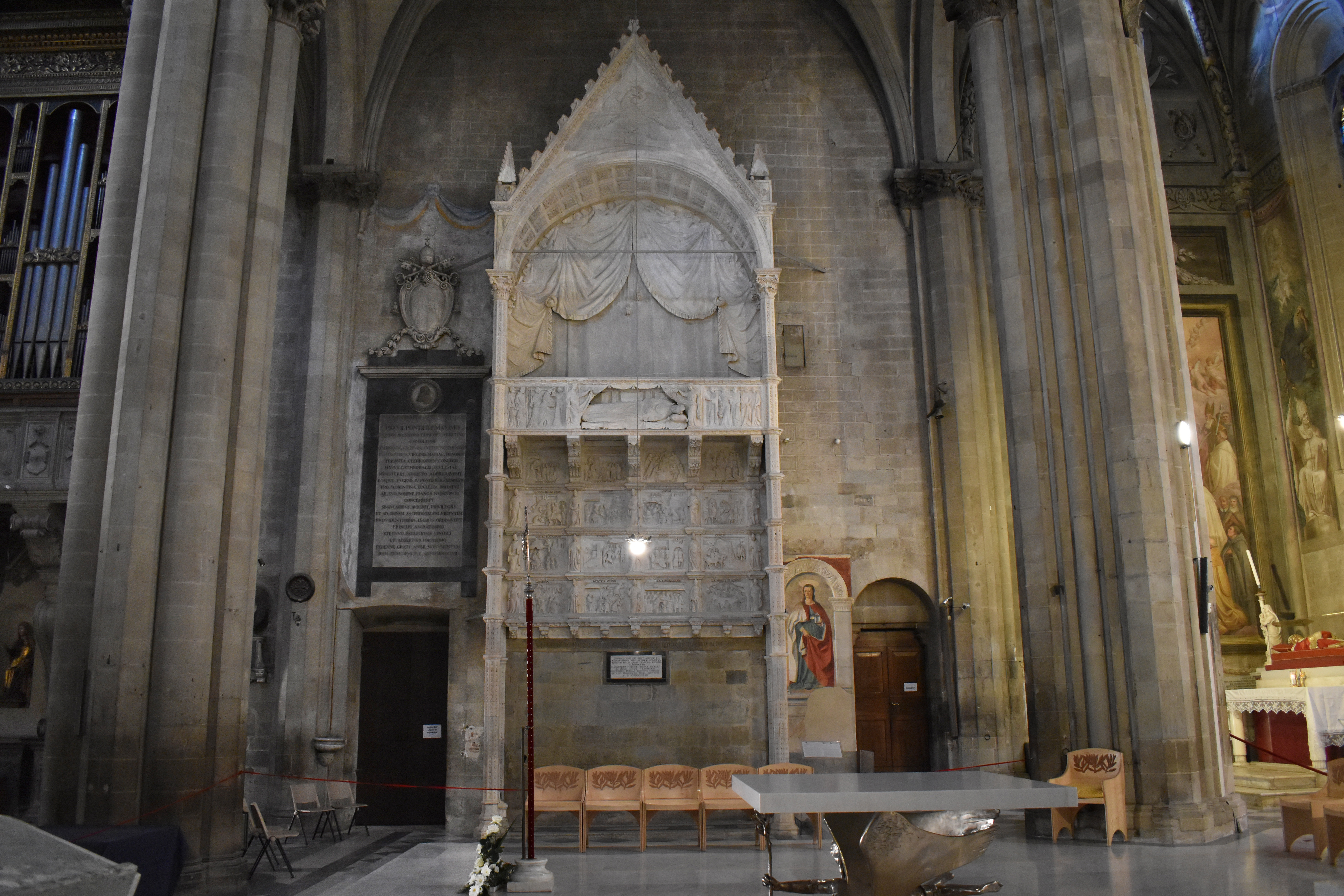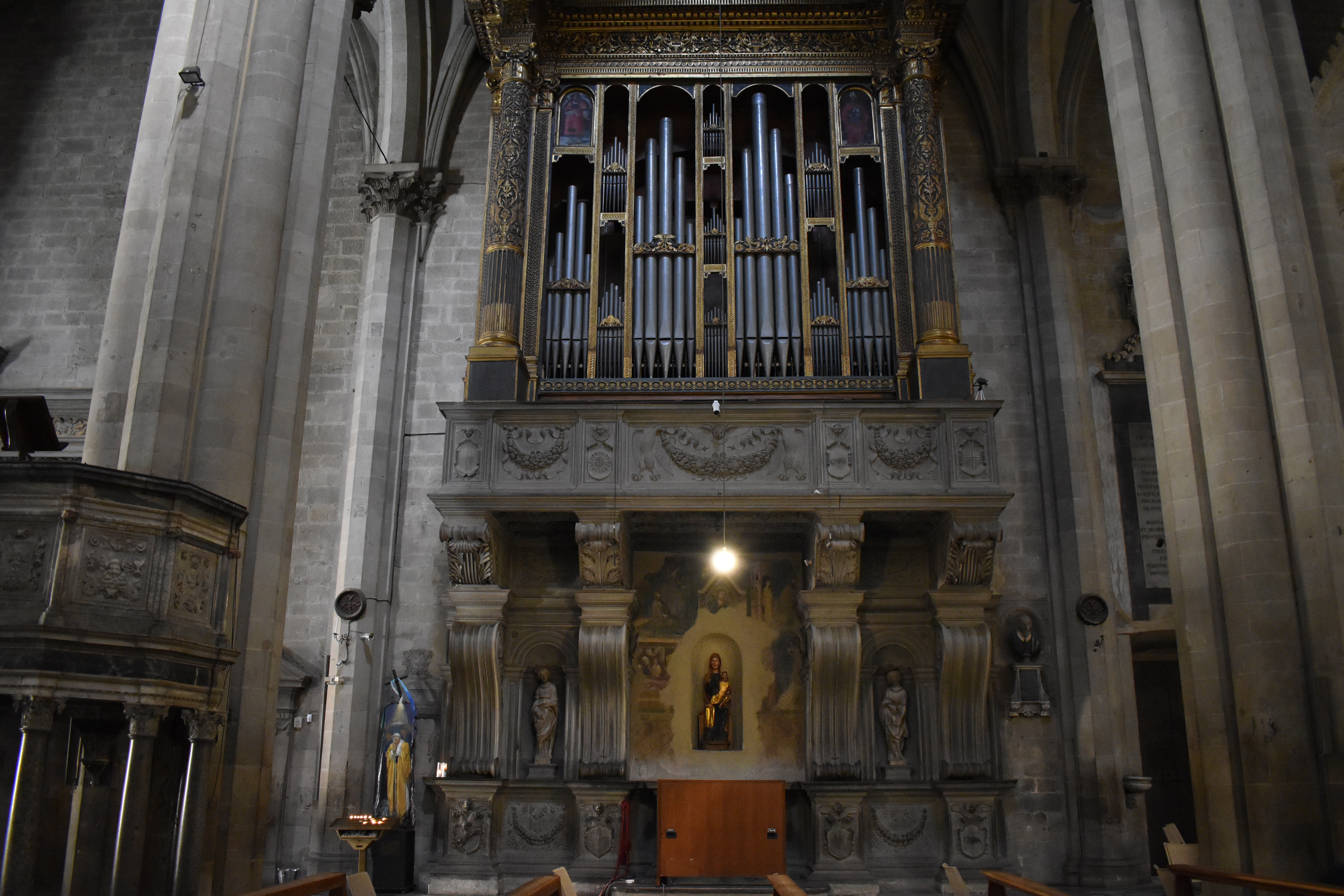 Рядом с кенотафом находится старый орган собора – подлинный шедевр благодаря качеству звука и очень драгоценной и элегантной фактуре. Его строительство восходит к 30-м годам шестнадцатого века, и в нём участвовали различные мастера, каждый из которых специализировался в определенных секторах. Орган является одним из старейших в Европе, находящихся в отличном состоянии и работающих. Под органом – ниша с известной полихромной деревянной скульптурой второй половины XIII века, воспроизводящей Богородицу с Младенцем. Автор неизвестен, но, безусловно, входит в круг художников Ареццо.