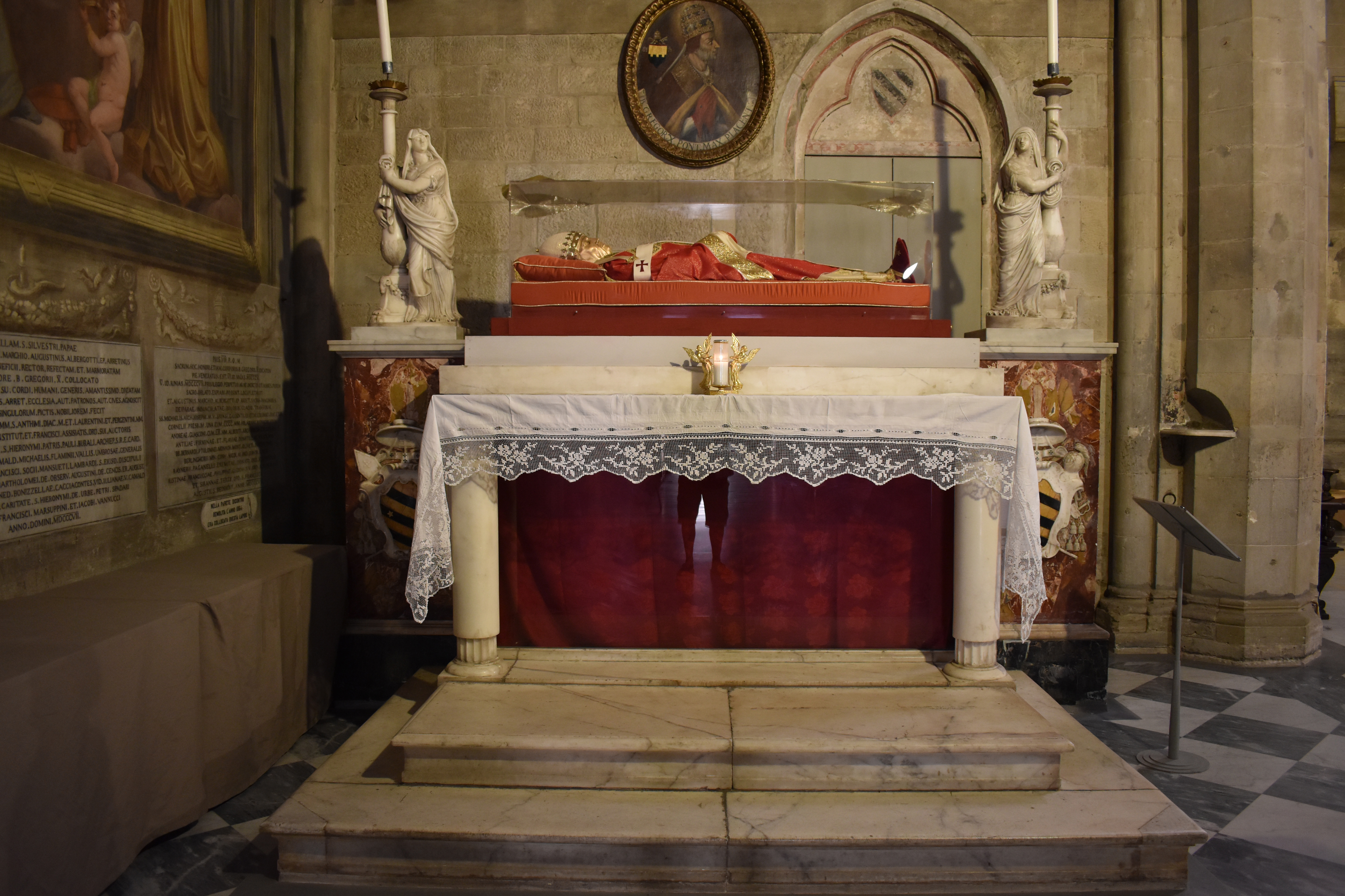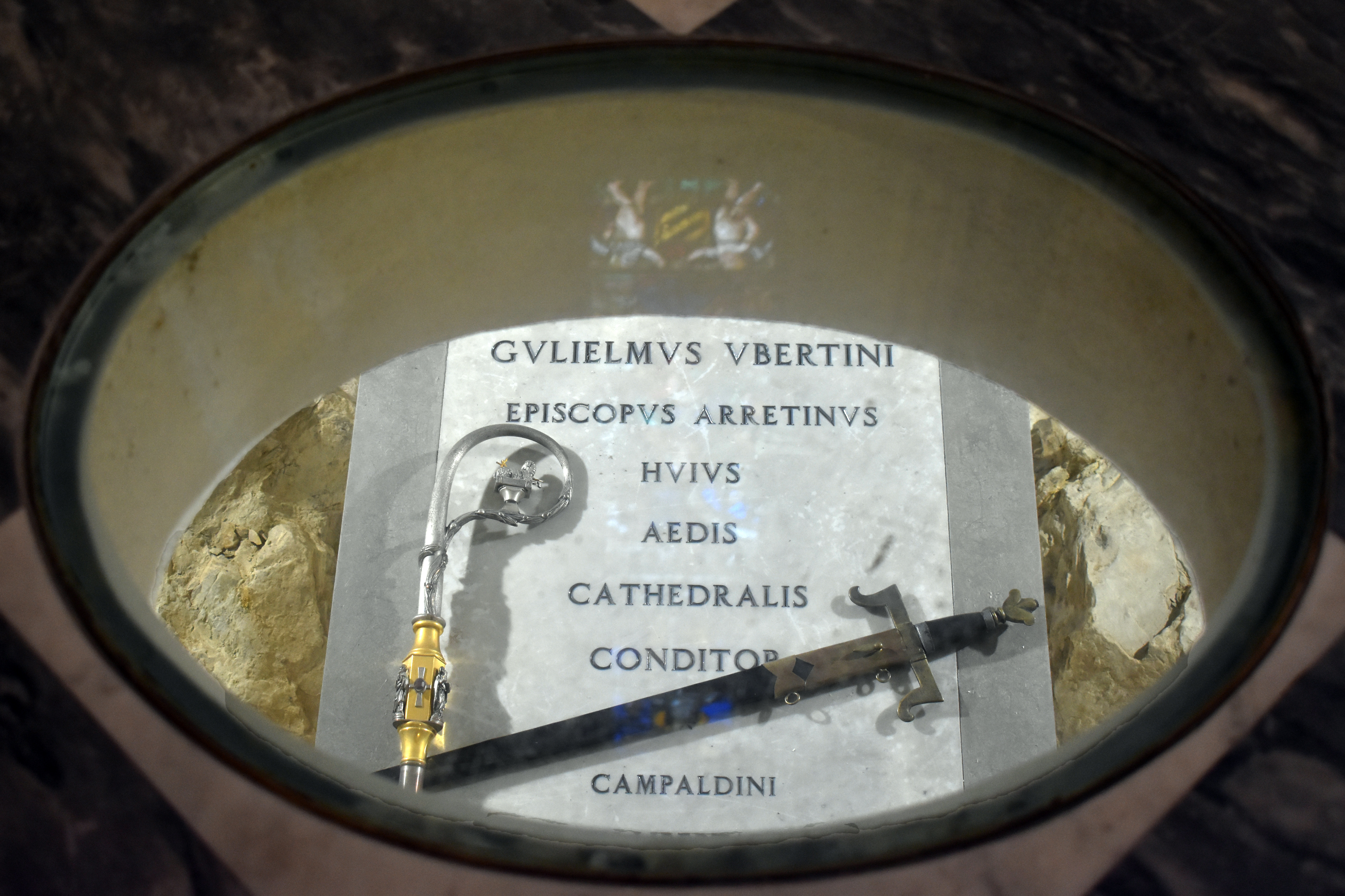 В конце левого нефа собора находится "современная" гробница, характеризующаяся большим круглым окном в полу. С 2008 года здесь хранились останки епископа Ареццо Гульельмо дельи Убертини, возможно, более известного как Гульельмино. Его тело и тело его племянника были похоронены в небольшой церкви Чертомондо, в двух шагах от холма Поппи и рядом с полем битвы, построенной примерно тридцатью годами ранее графами Гуиди в честь Франциска Ассизского, канонизированного в 1228 году. Мощи Гульельмино остались здесь более семи веков. 11 июня (дата выбрана не случайно) 2008 года они вернулись в "свой" собор в сопровождении большой и торжественной религиозной церемонии.