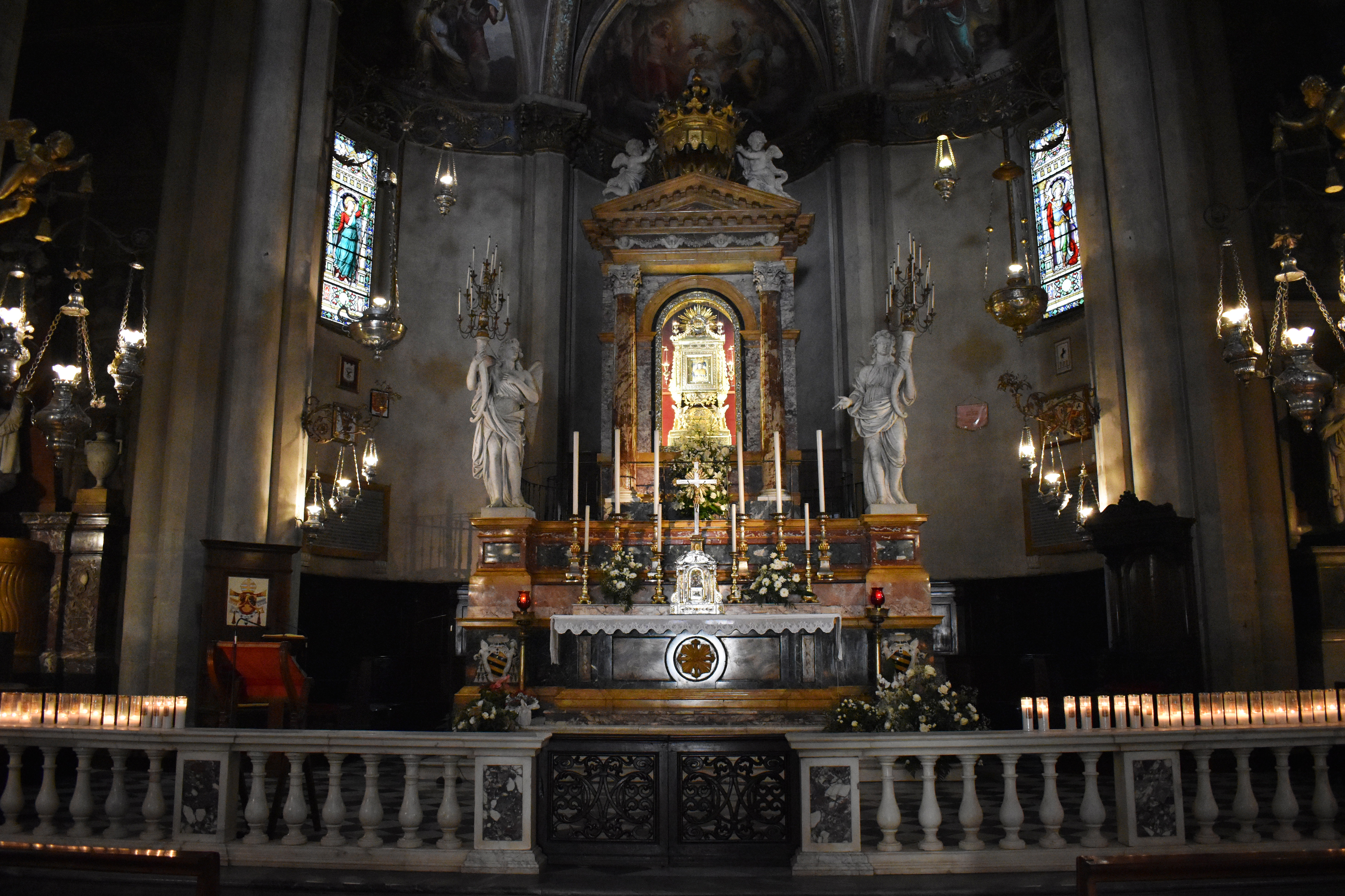 В центре церкви на левой стене открывается Часовня Святого Причастия, расписанная художником Луиджи Адемолло в начале XIX века.