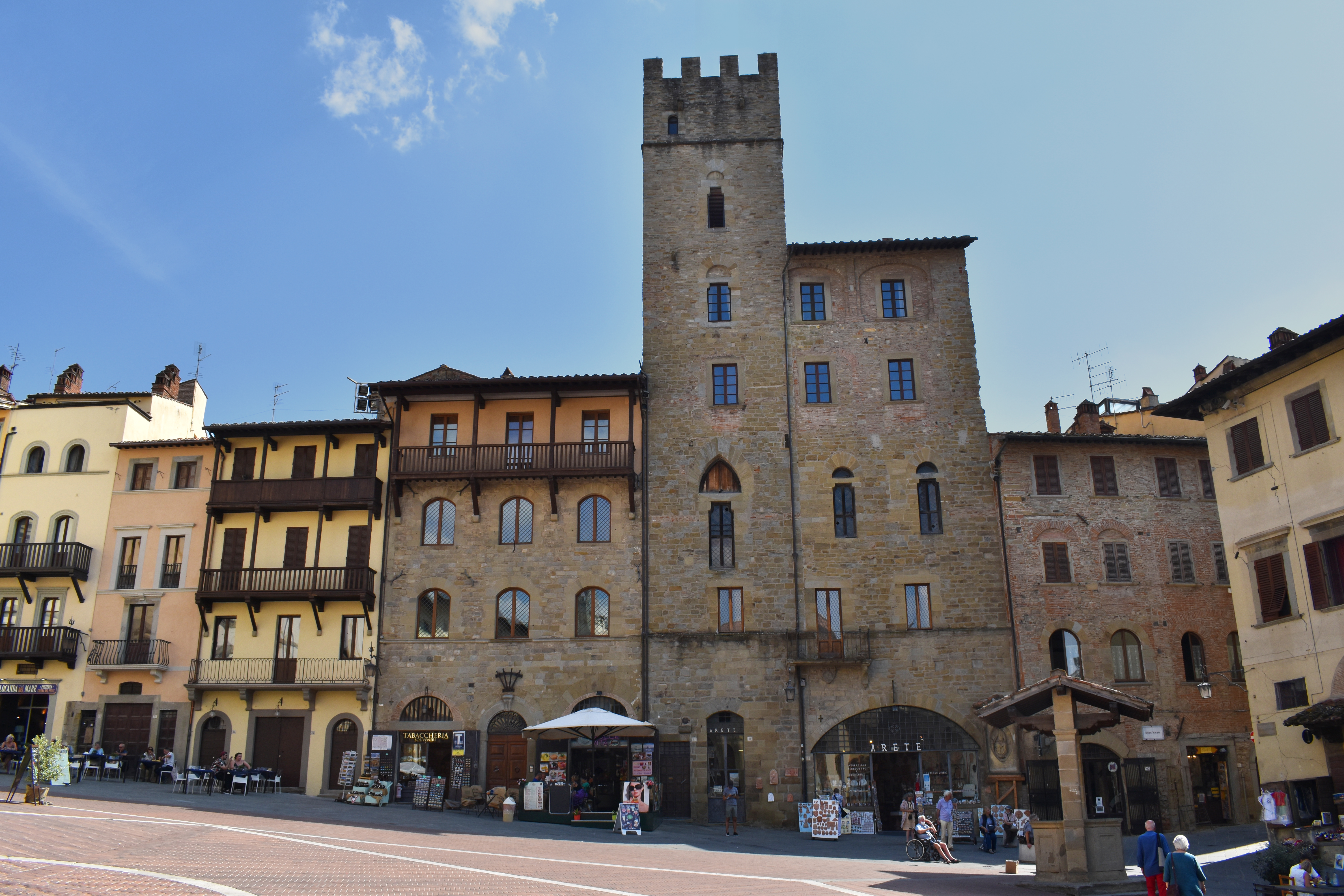 Дом-башня Кофани возвышается на юго-восточной стороне, создавая впечатляющую архитектурную композицию, возникшую в результате слияния башни Фаджолана XIII века с прилегающим зданием XIV века. Хотя башня больше не имеет своей первоначальной высоты, она сохраняет внешний вид огромной мощи. Дворец Кофани–Бриззолари (Palazzo Cofani–Brizzolari) показывает свое средневековое происхождение каменной кладкой в нижней части; верхние этажи являются результатом пристройки пятнадцатого и последующих веков. Согласно преданию, дворец был собственностью известного лидера гибеллинов Угуччоне делла Фаджиола (Uguccione della Faggiola), который являлся Подестой Ареццо в 1295 году. В прошлом веке, в 20-е годы, он был отреставрирован и укреплен в стиле гвельфов.