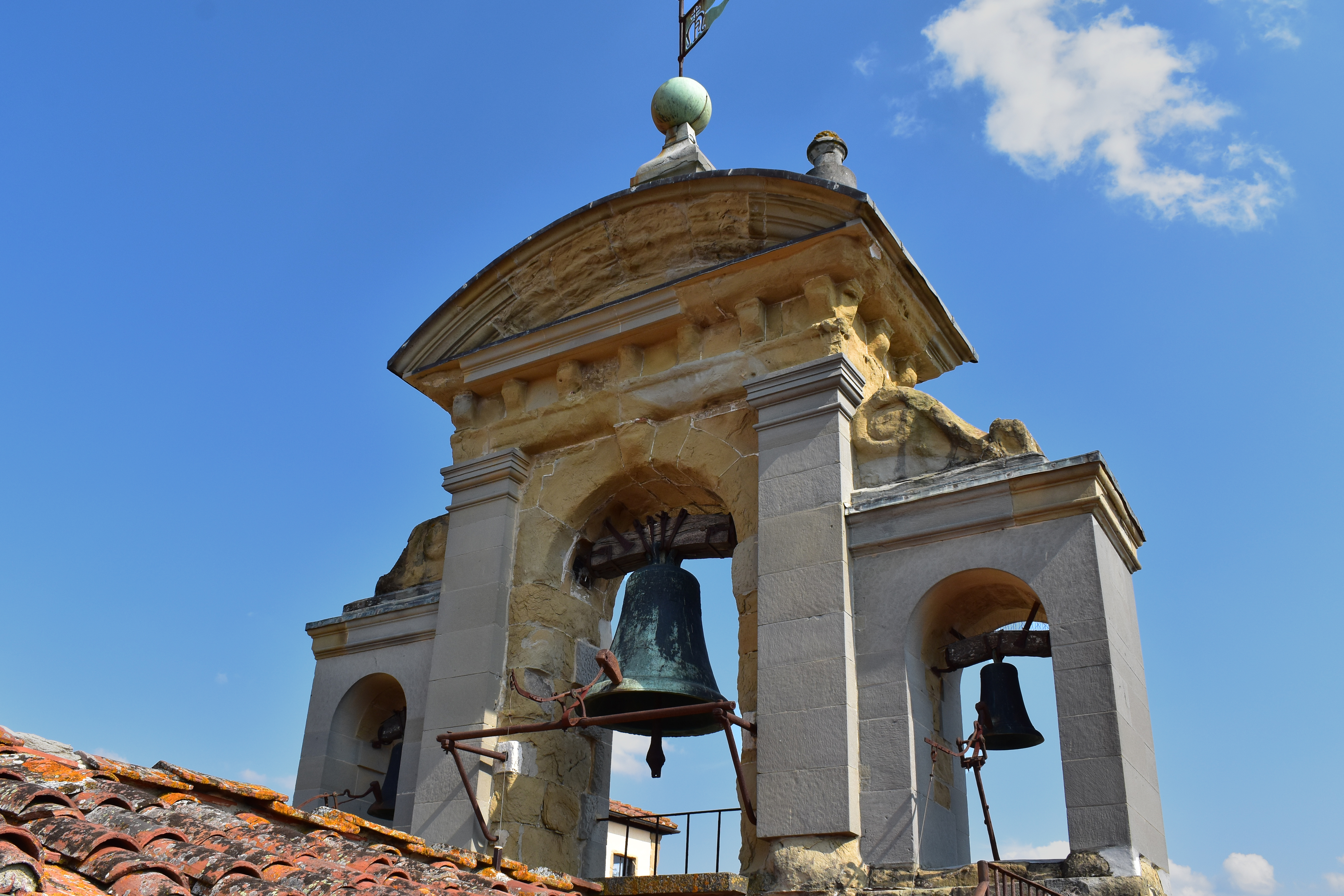 Центральный колокол (с 1578 г.) звонит каждый час и повторяет звук в половине часа: маленький колокол слева (датируемый 1300 г.) звонит один раз в четверть часа, дважды в три четверти часа и четыре ежечасно. Правый колокол (1551 г.) сопровождает первый один раз в час.