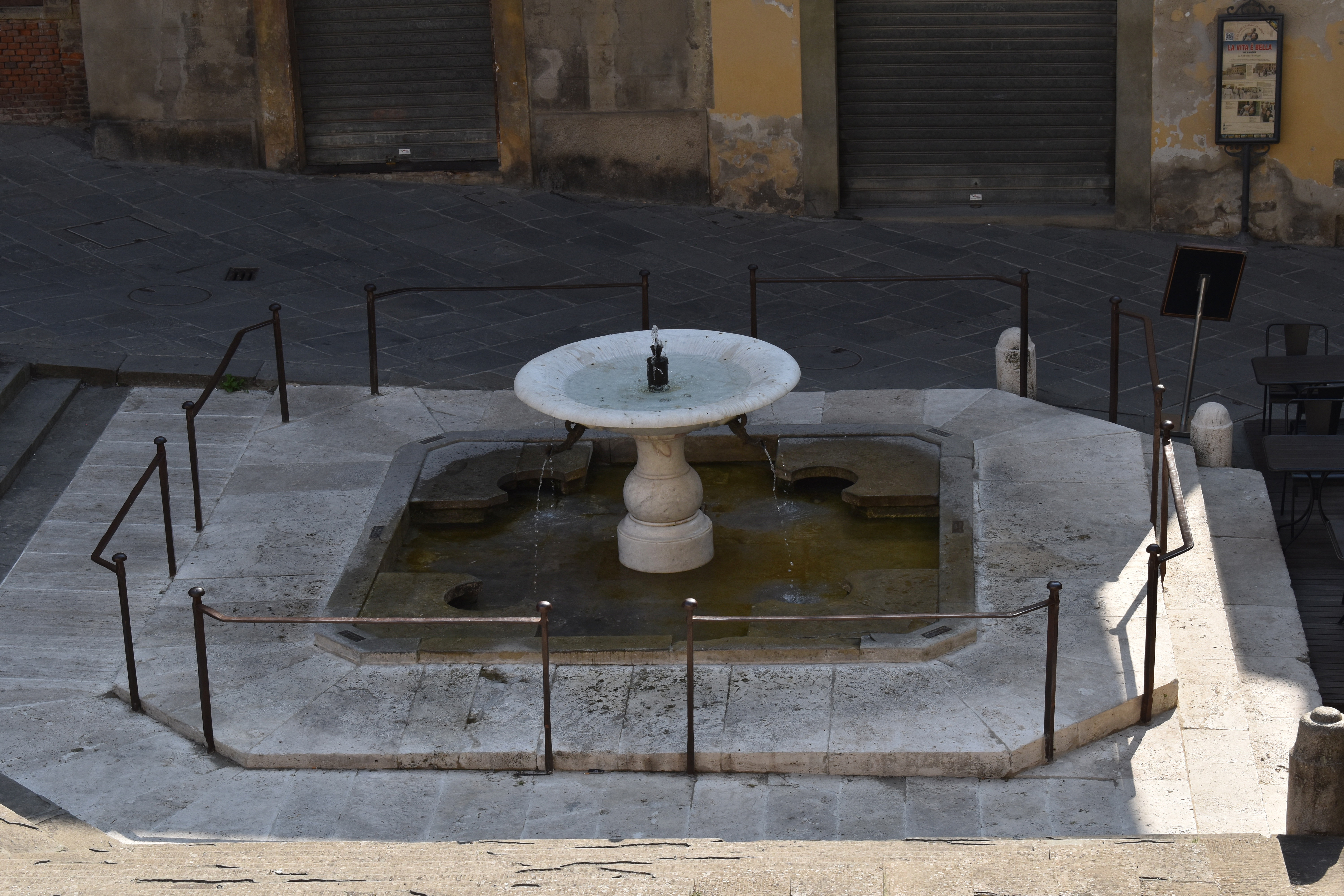 Первоначальная форма фонтана XVII века сохранилась только на картине Кристофоро ди Донато Конти, хранящейся в Музее Братства Мирян (Fraternita dei Laici), поскольку 15 ноября 1794 года фонтан был заменен новой мраморной чашей, созданной Лоренцо Гульянтини.
