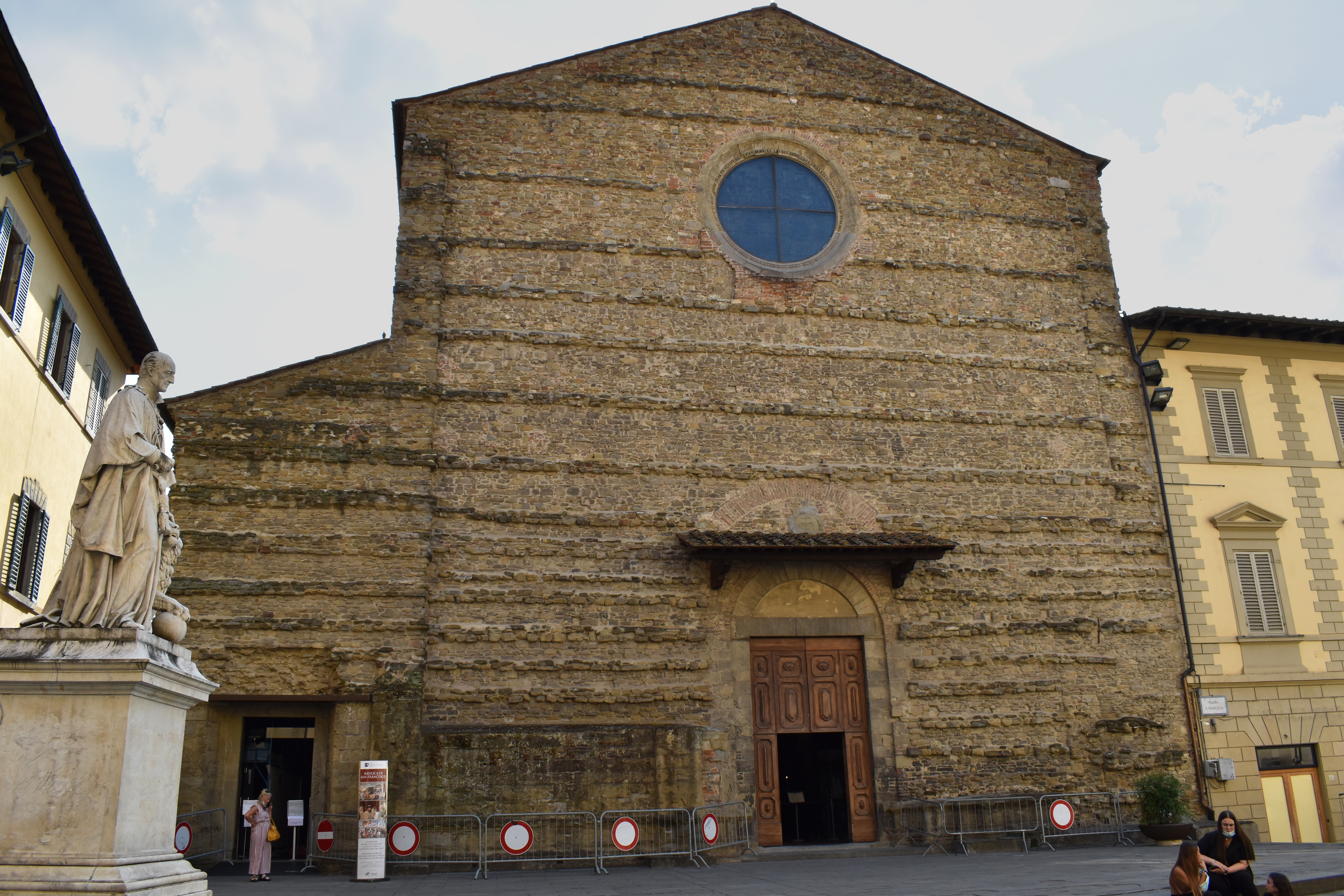 Церковь Святого Франциска, которая выходит на одноименную площадь в нескольких шагах от Корсо Италия, довольно грубая из-за того, что её фасад был выполнен в его нынешнем виде в 1346 году, но тогда остался незавершенным, вероятно, из-за отсутствия средств. Человек, незнакомый с Ареццо, побывавший на площади Святого Франциска в этом тосканском городе искусства, вряд ли бы мог себе представить, что за пределами этого грубого фасада могут быть картины высочайшей художественной ценности. Перед церковью установлен памятник Витторио Фоссомброни (Vittorio Fossombroni), выпускнику юридического факультета, увлеченному гидравликой, который в конце восемнадцатого века спроектировал и реализовал по заказу Великого герцога Тосканы Пьетро Леопольдо ди Лорена сеть каналов для окончательного восстановления тосканской долины Валь-ди-Кьяна. Вход в церковь не через центральную дверь, а слева на фасаде здания.
