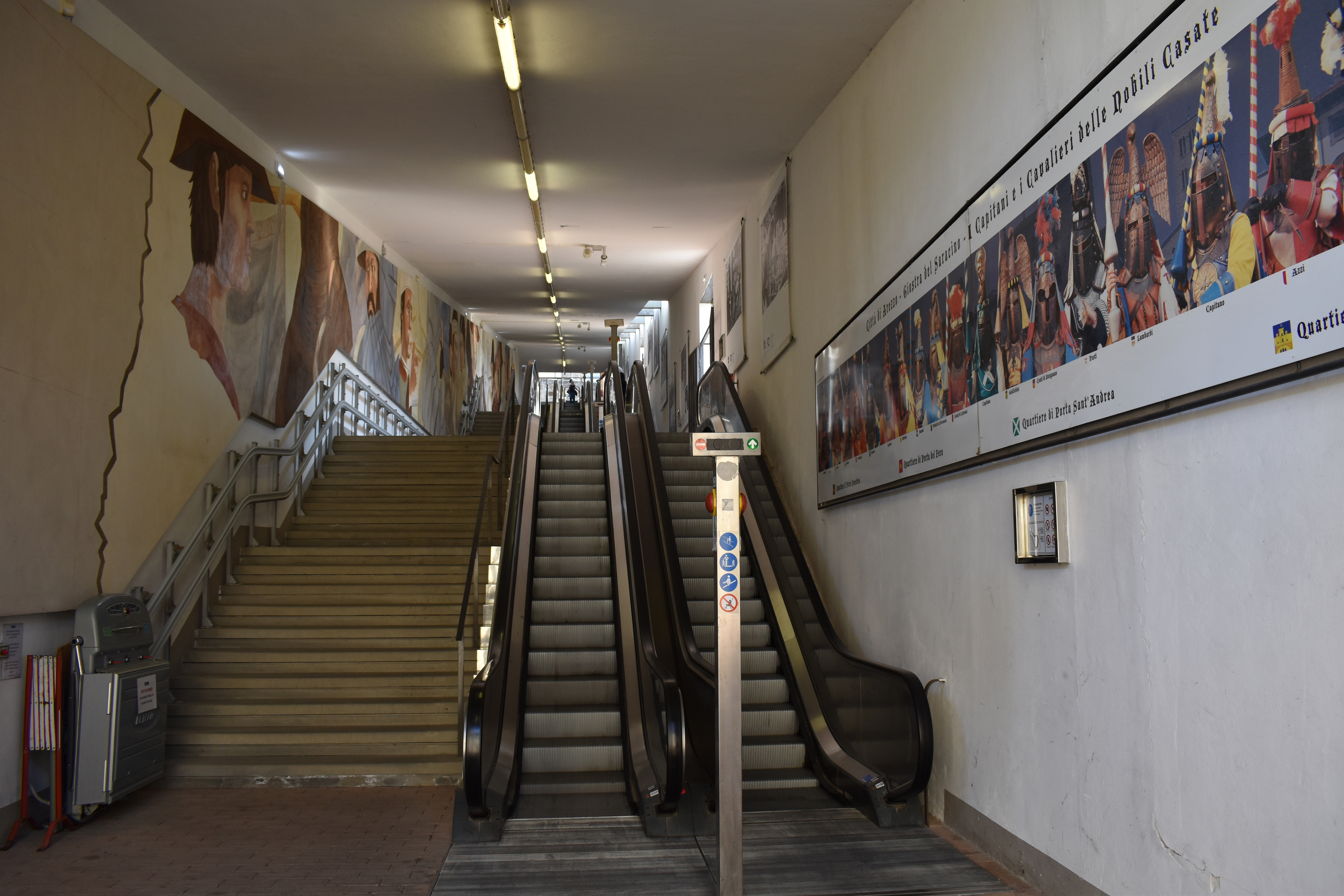 Серия эскалаторов даёт возможность лучшим способом добраться до средневековой части города. Проходя мимо туристического информационного центра, можно вооружиться картами и информацией о происходящих в городе событиях.