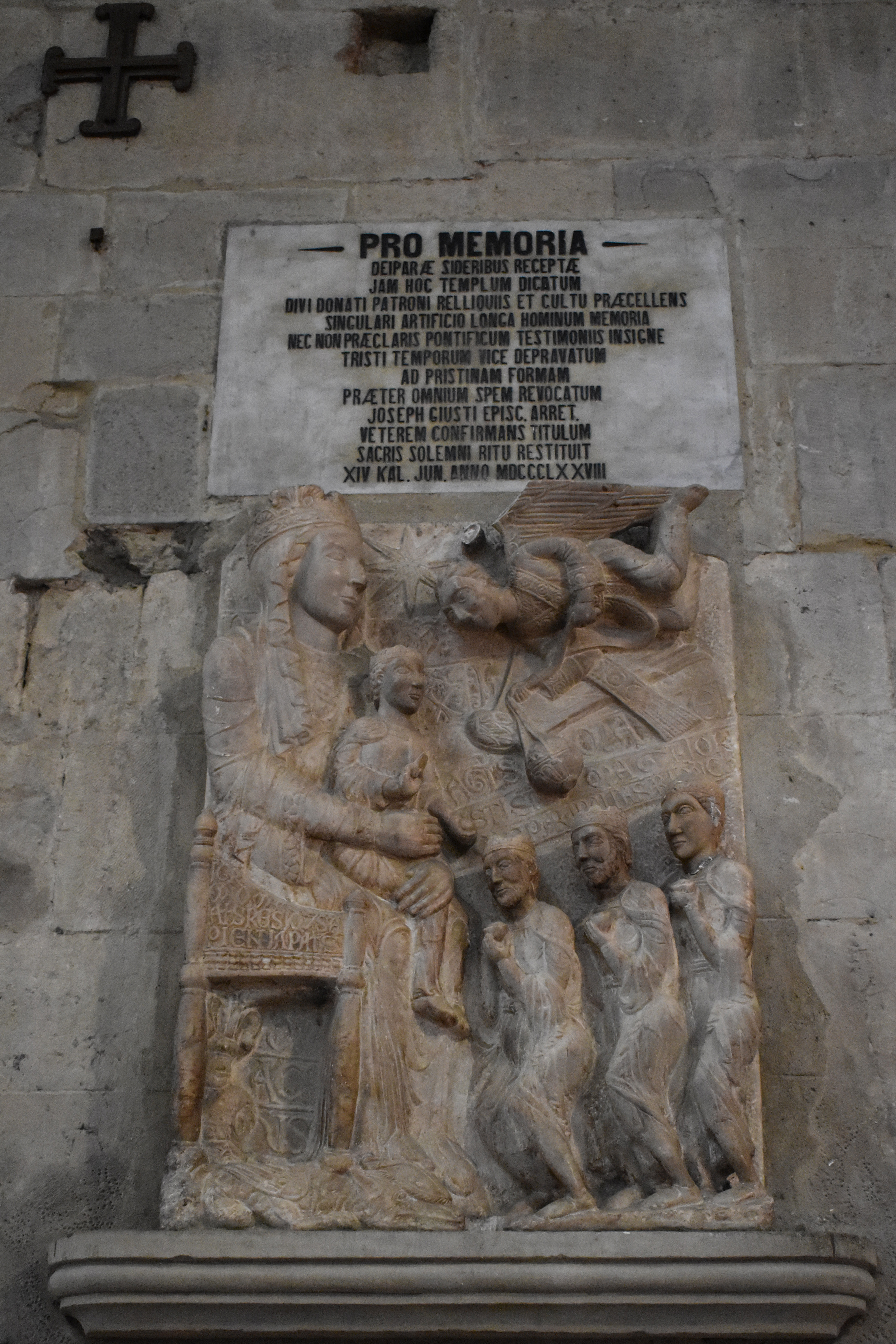 Люнет над дверью интересен терракотовой скульптурой середины XIV века, изображающей Богородицу с Младенцем между Святым Донато и блаженным Грегорио X, соответственно, покровителем и со-покровителем тосканского города.