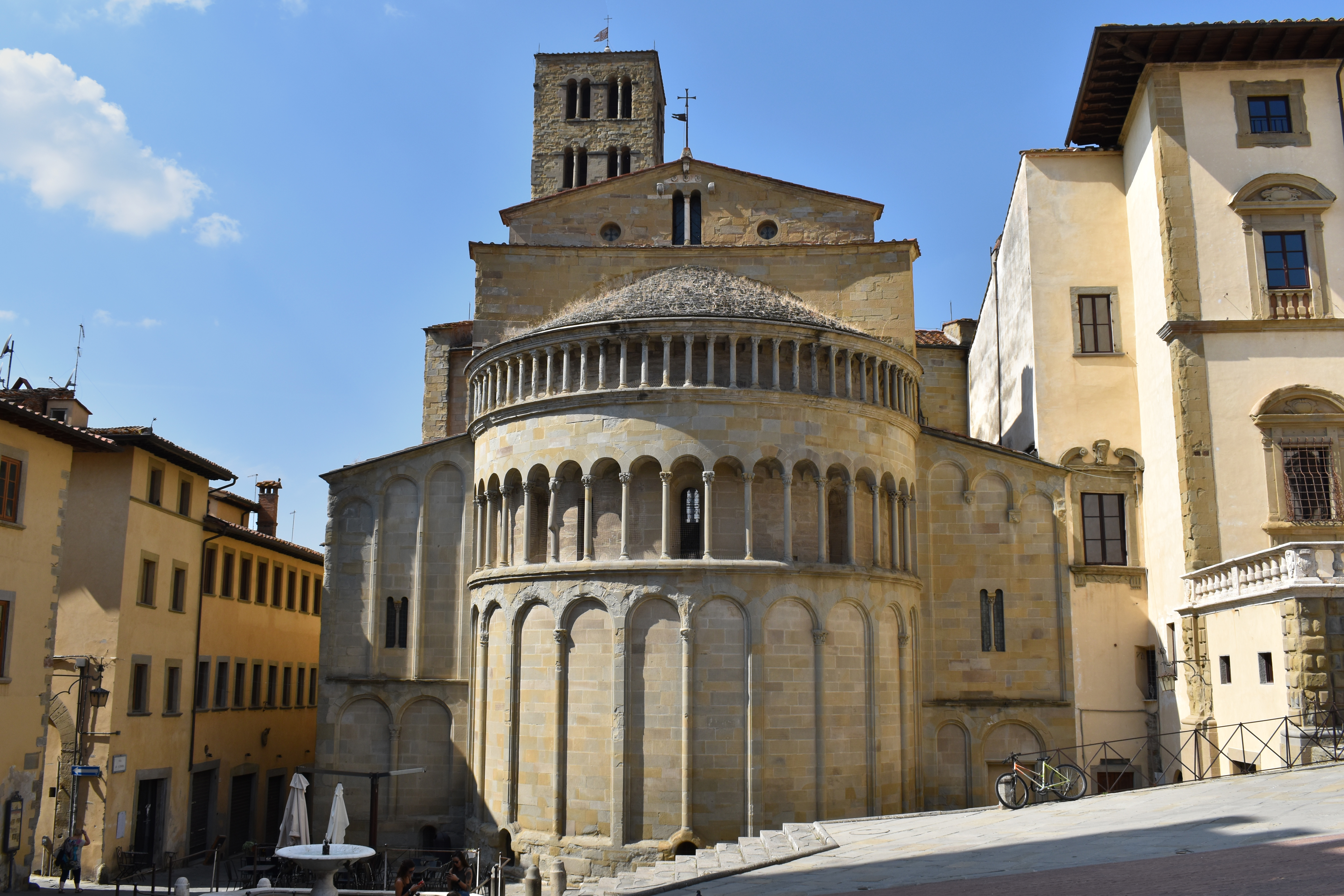 Строительство Пьеве ди Ареццо, как обычно называют эту церковь, началось в середине двенадцатого века и заняло место предшествующей ей раннесредневековой крестильной церкви города. Приходская церковь имела форму и размеры того, что мы видим сегодня, но фасад был простым и линейным. Та, которой можно восхищаться сегодня, относится к романскому стилю, более распространенному на территории Пизы, была построена в XIII веке, также как и высокая колокольня (почти шестьдесят метров), встроенная в передний правый угол церкви, которая была закончен в 1330 году.