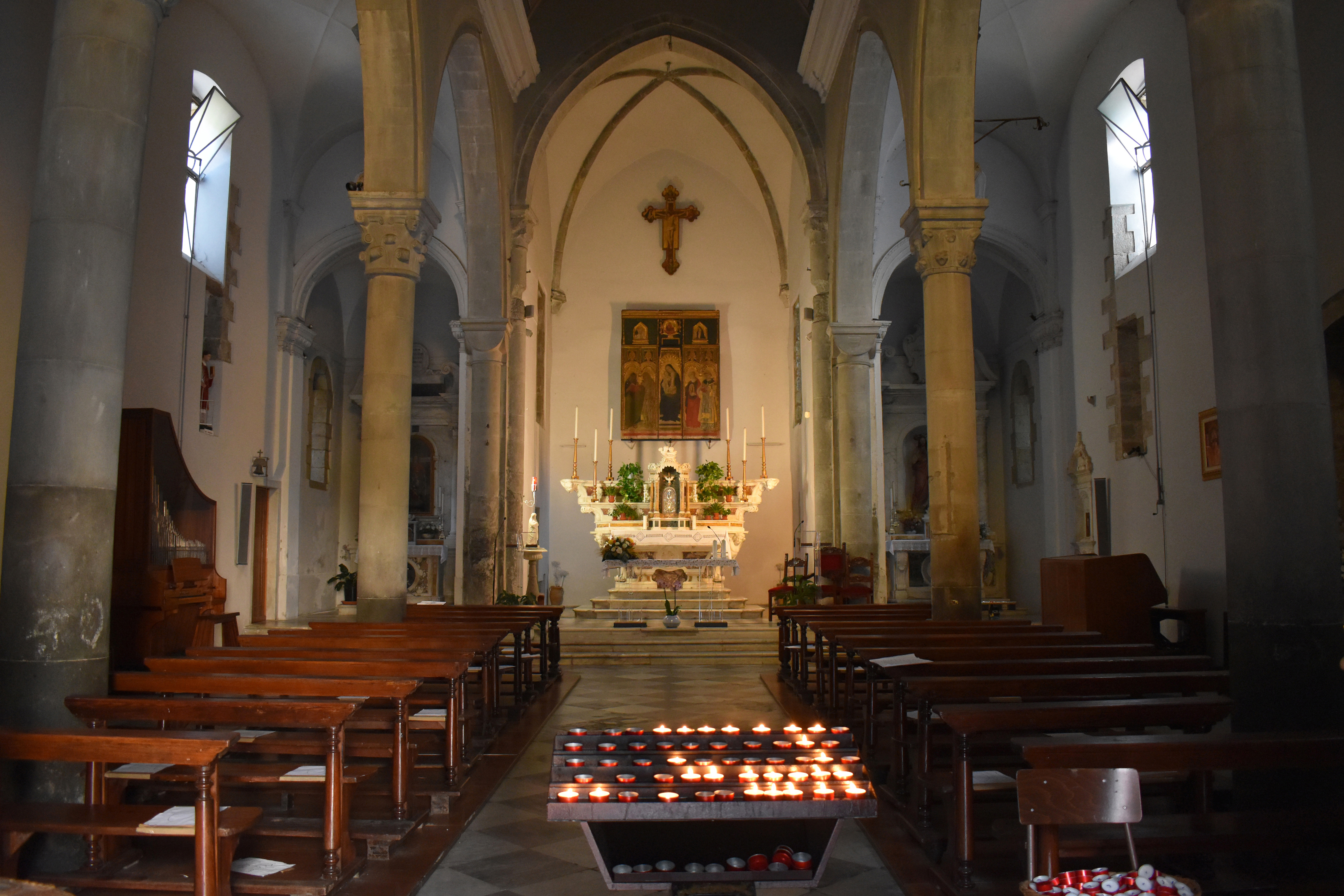 В интерьере хранится деревянная статуя Мадонны Цепей, в память о жителях, которые на протяжении веков страдали от набегов и похищений сарацин, и древний триптих из темперы, изображающий Мадонну с Младенцем и святыми Иоанном Крестителем и Домиником Гусманским.![]()